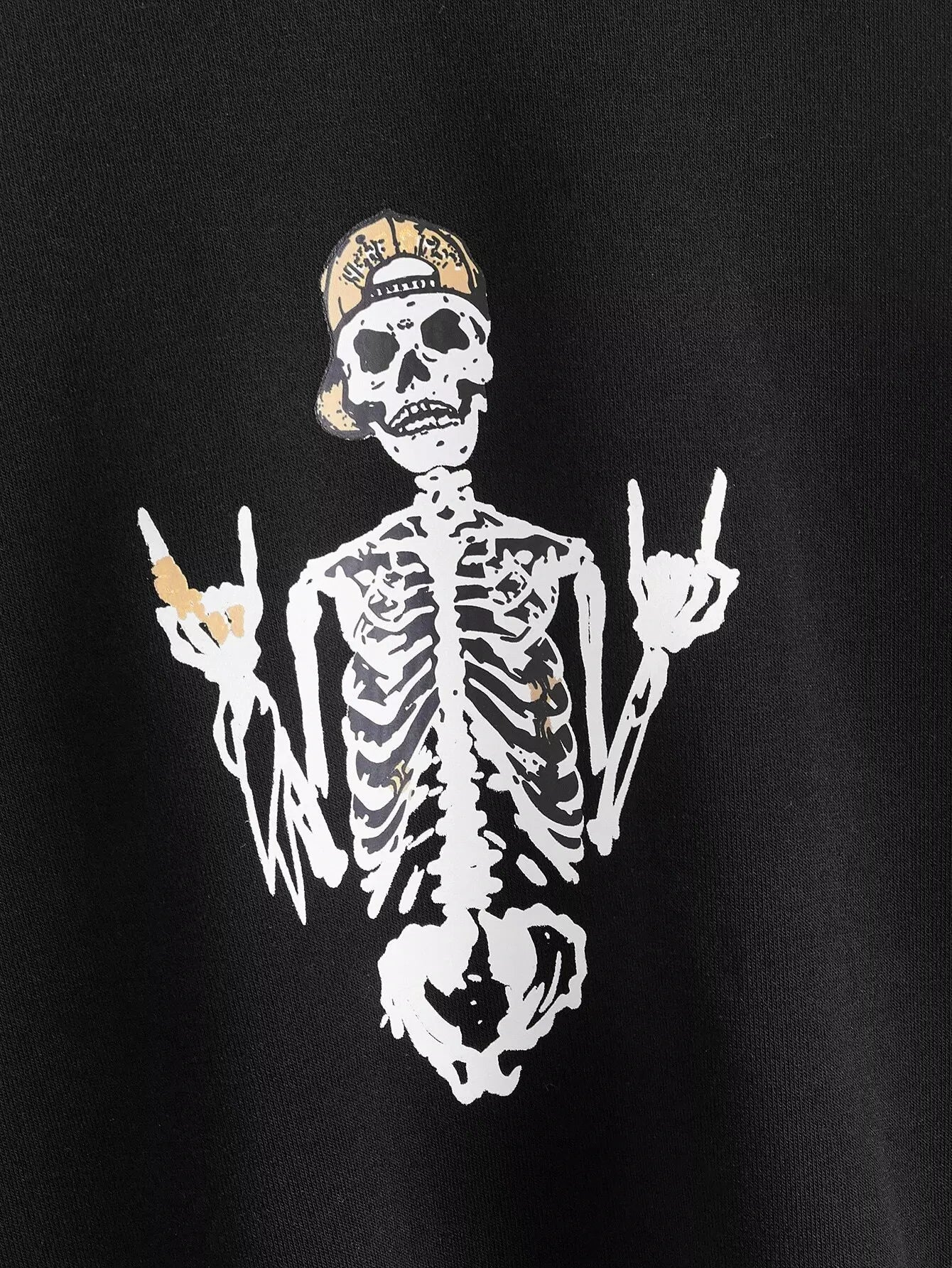 سويت شيرت منسدل الكتف مطبوع عليه هيكل عظمي