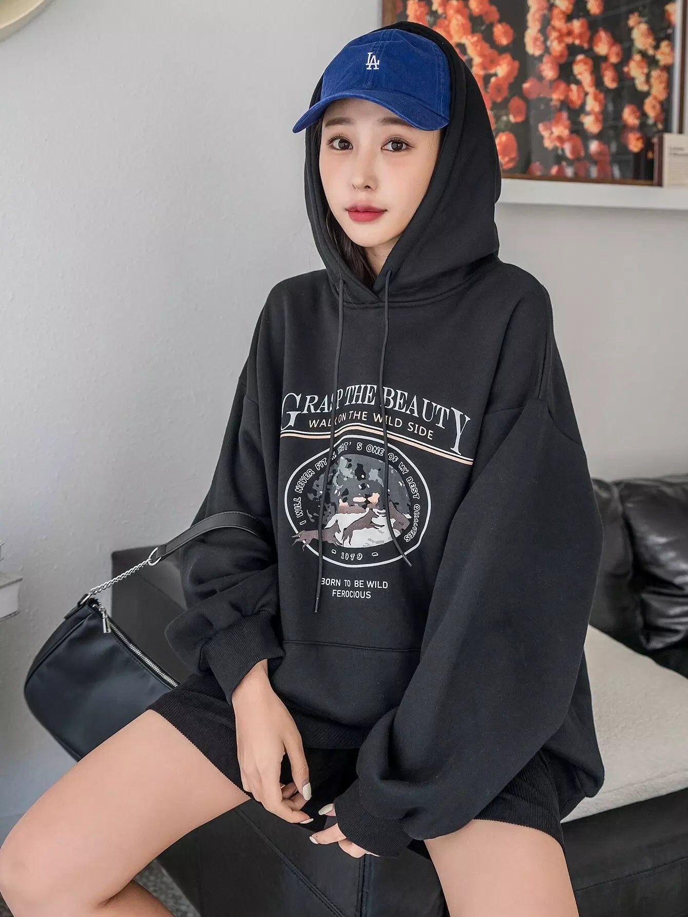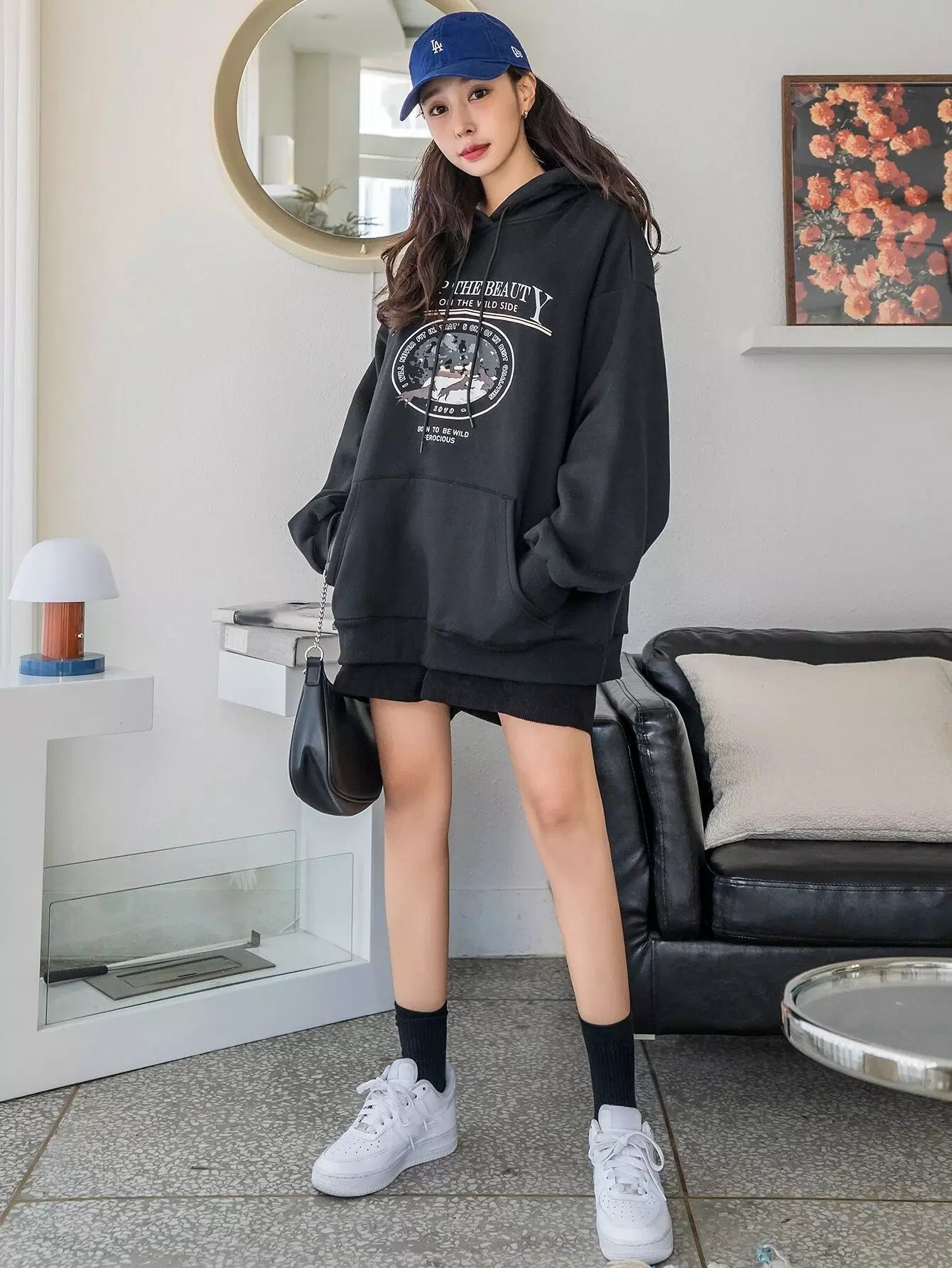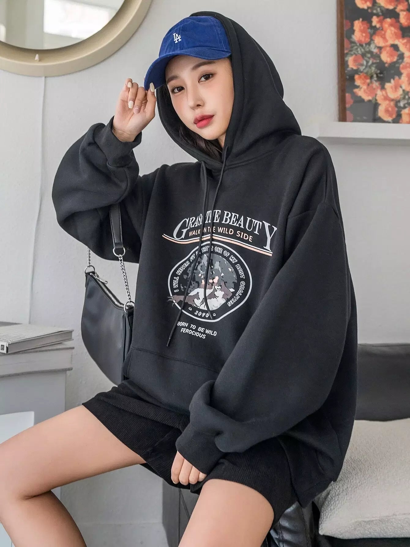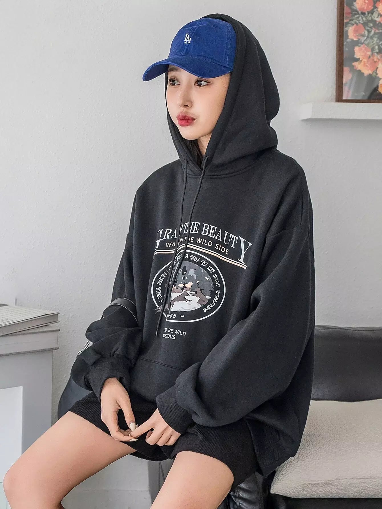 شعار وطبعة حيوانات مطبوع عليها شعار الكنغر بجيب منسدل على الكتف برباط رباط هودي