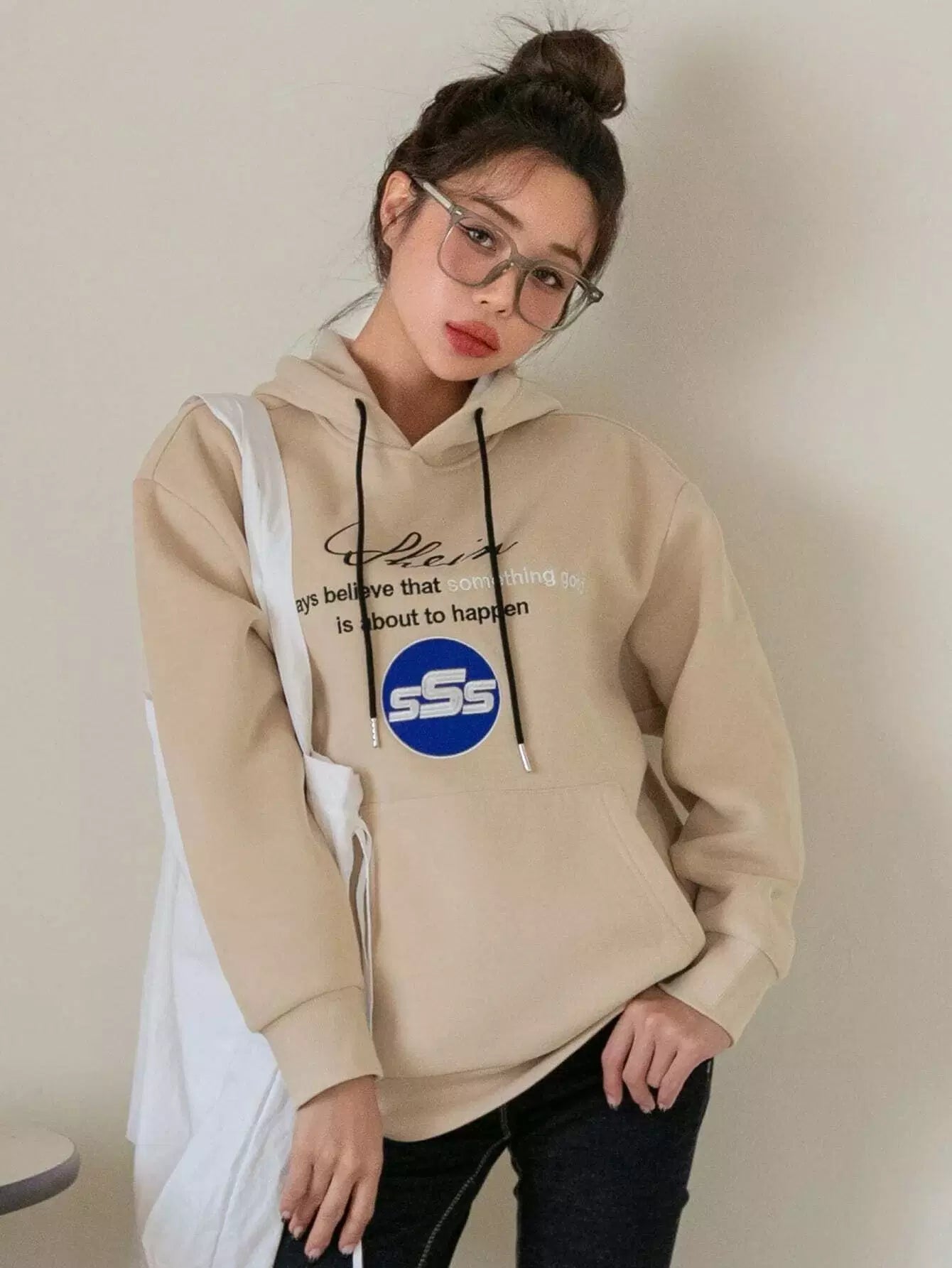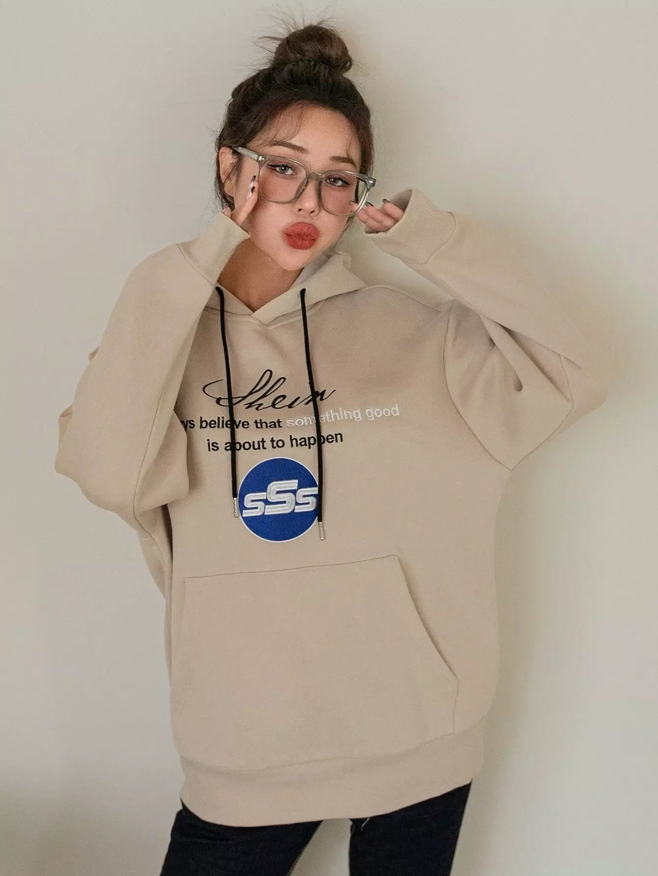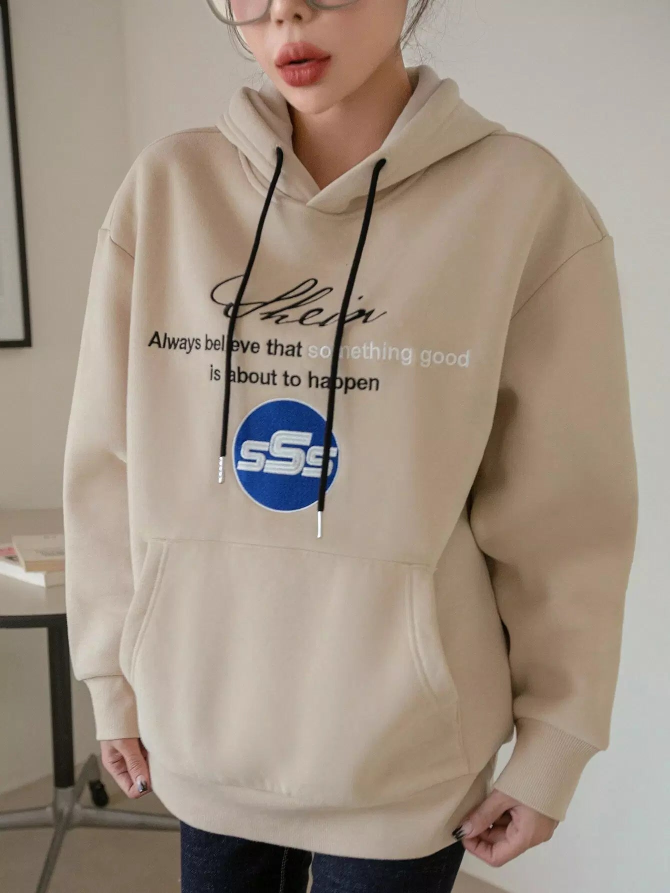 هودي مطرز بتطريز شعار منسدل على الكتف برباط رباط