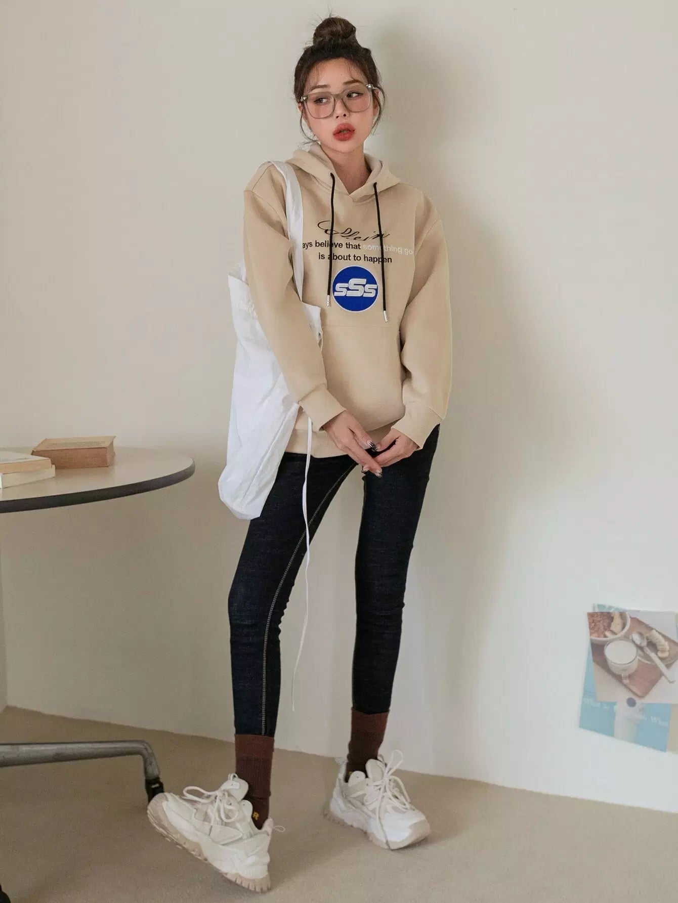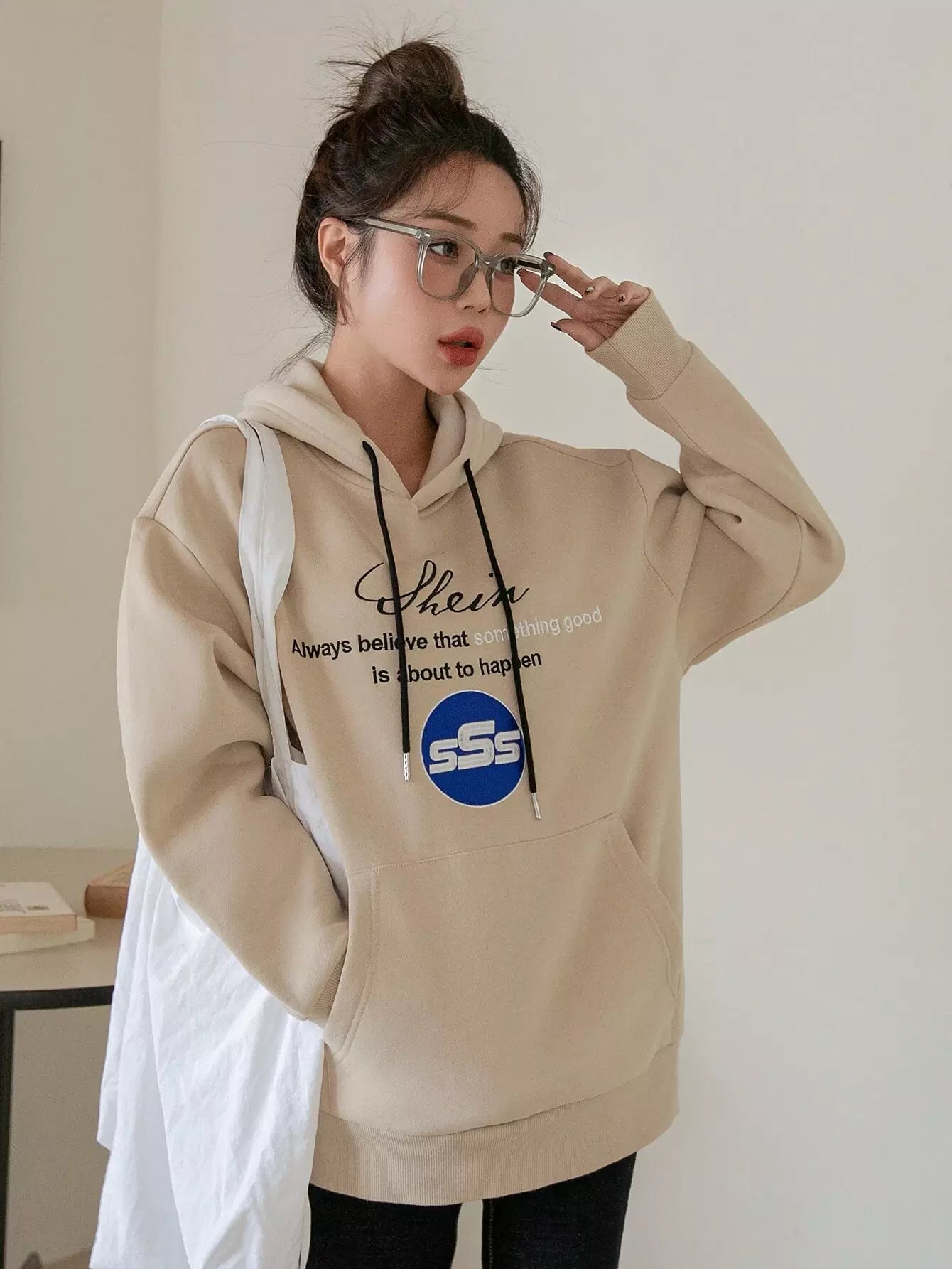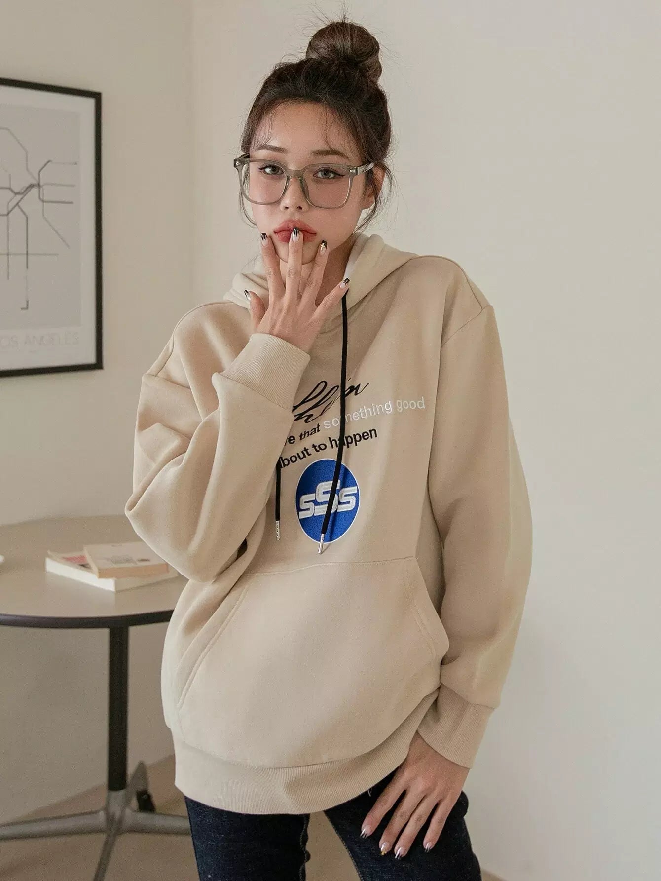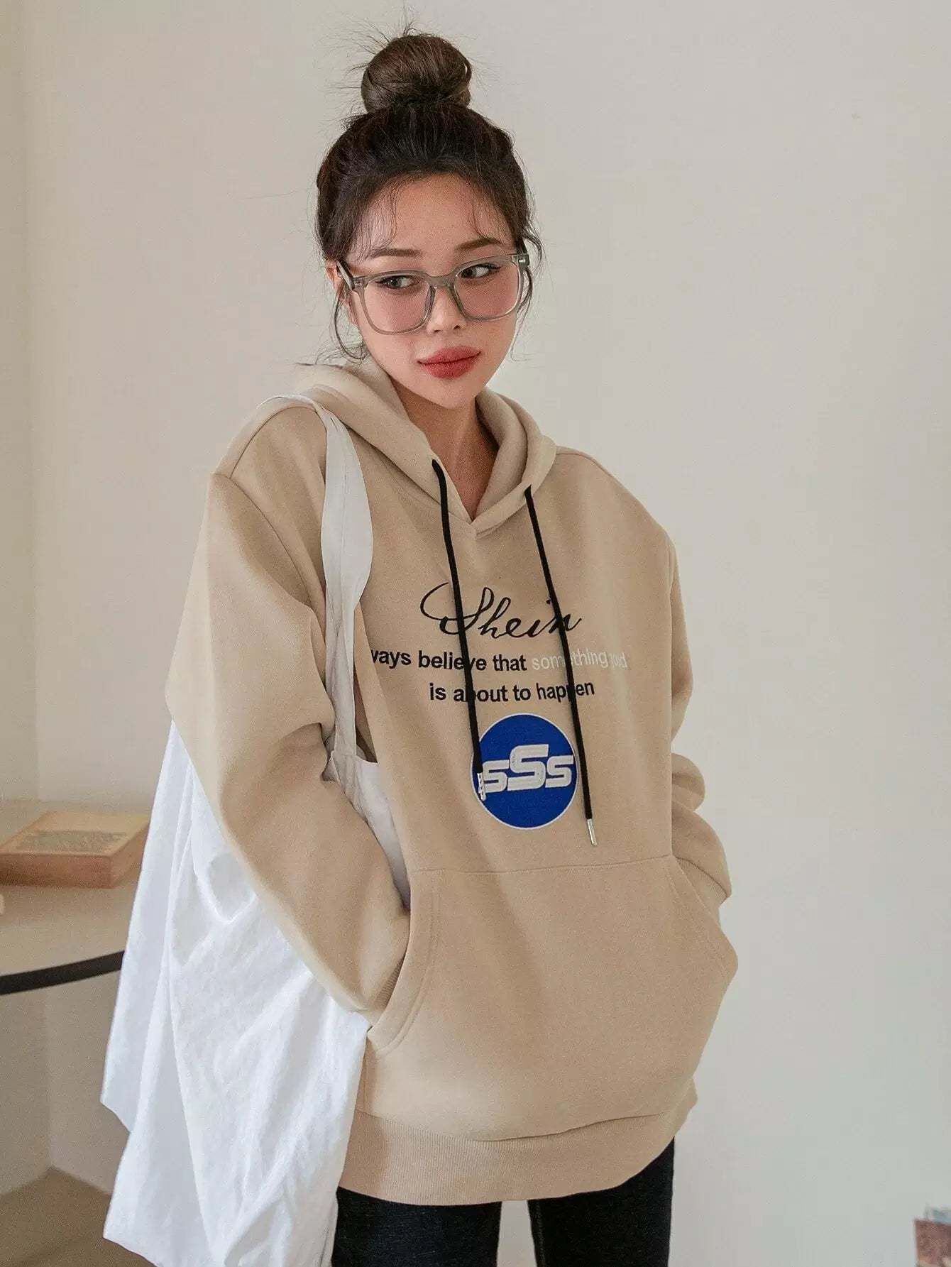 هودي مطرز بتطريز شعار منسدل على الكتف برباط رباط