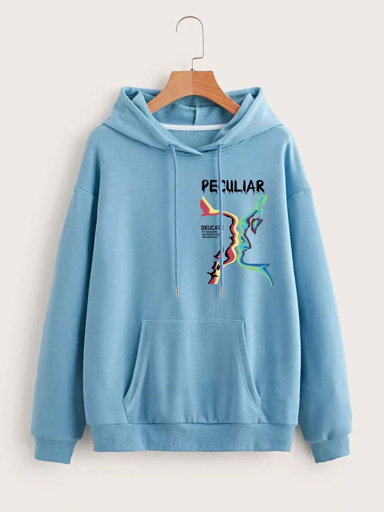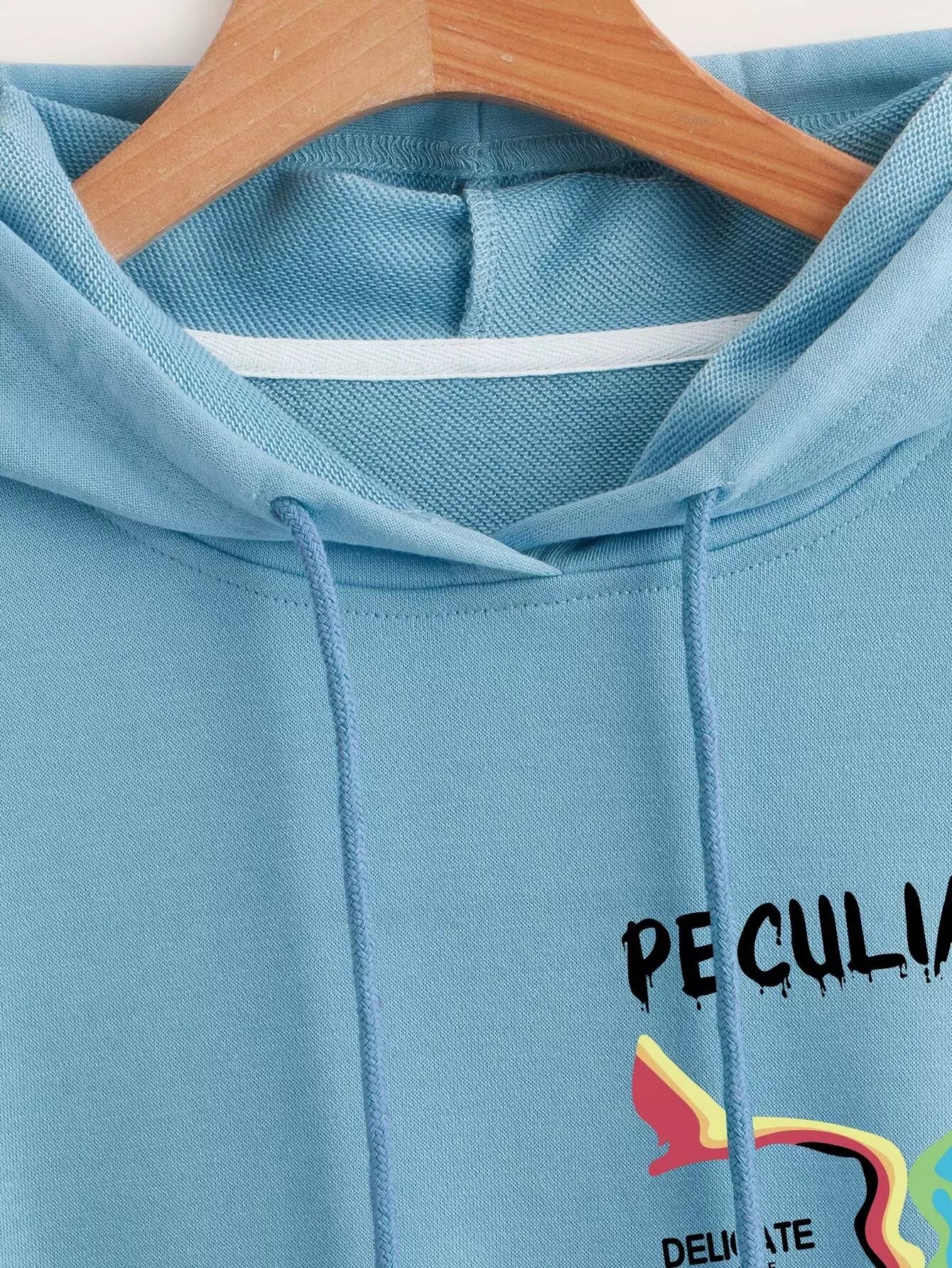 شعار وشكل جرافيك شعار الكنغر بجيب منسدل على الكتف هودي برباط على شكل كنغر