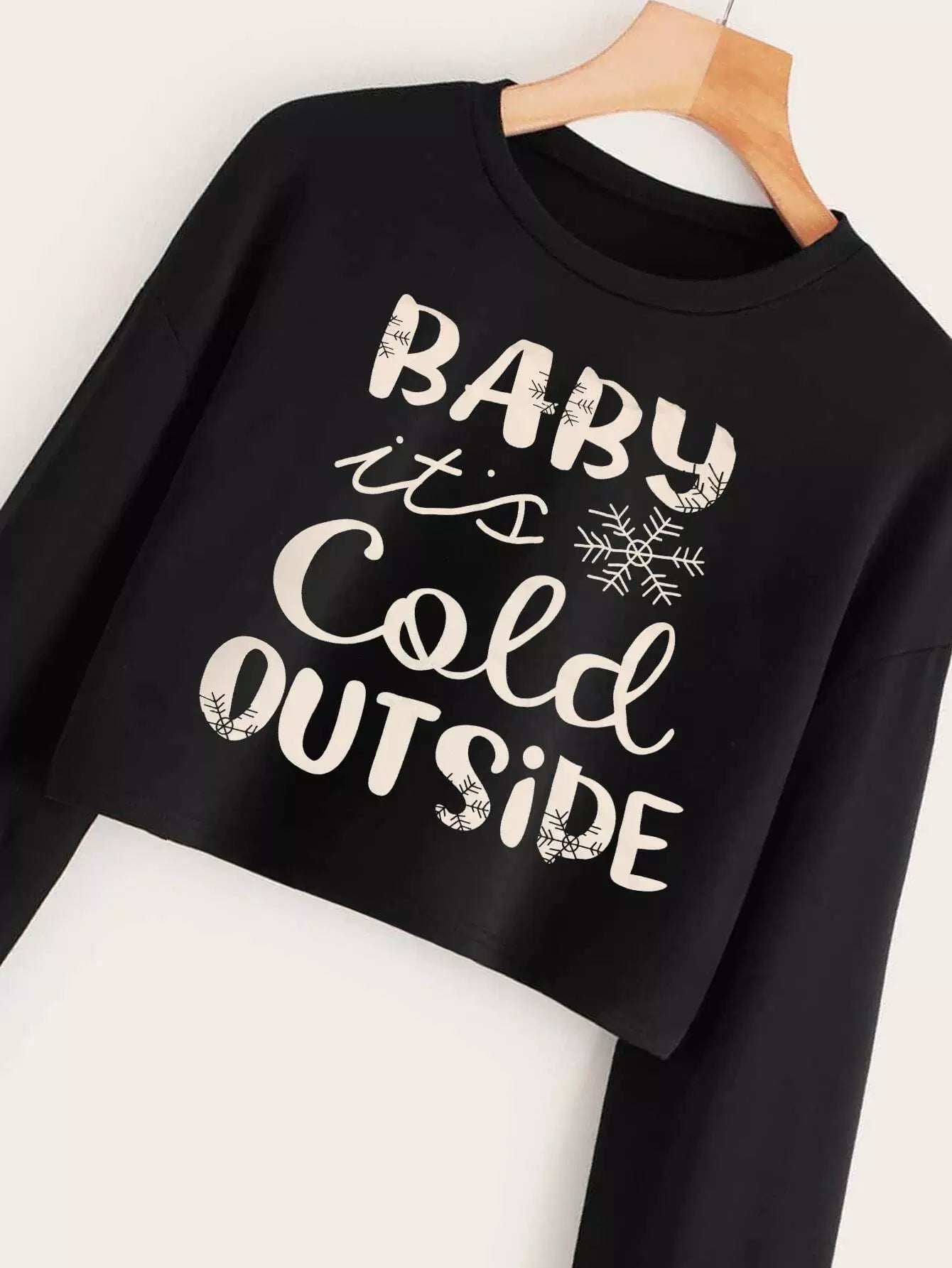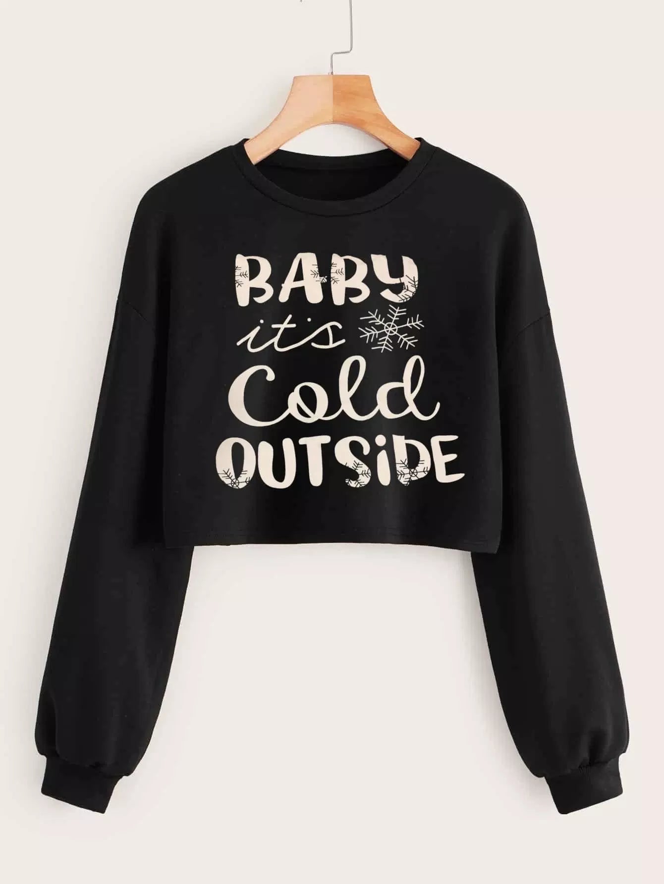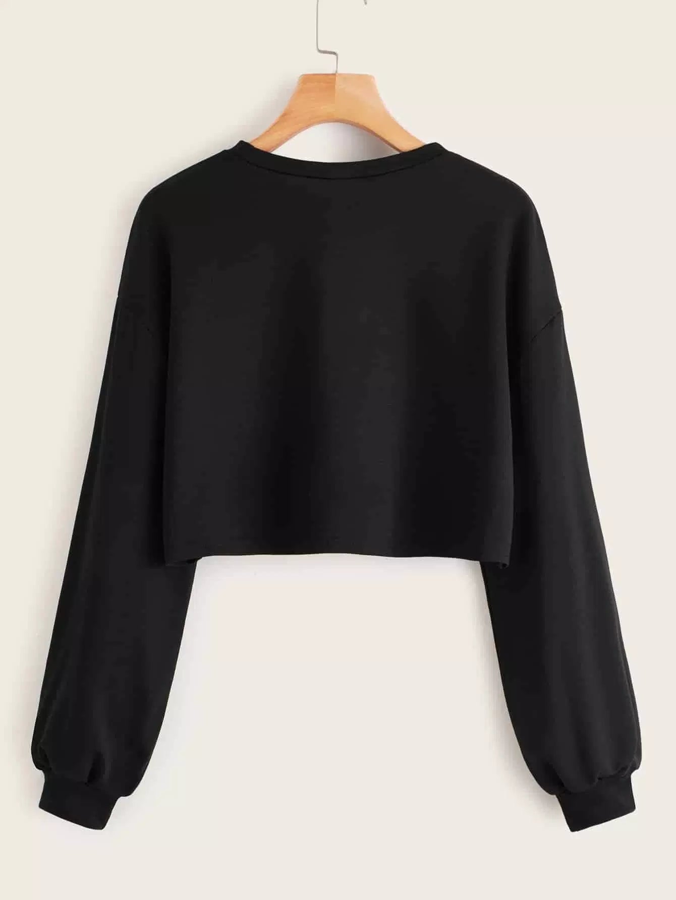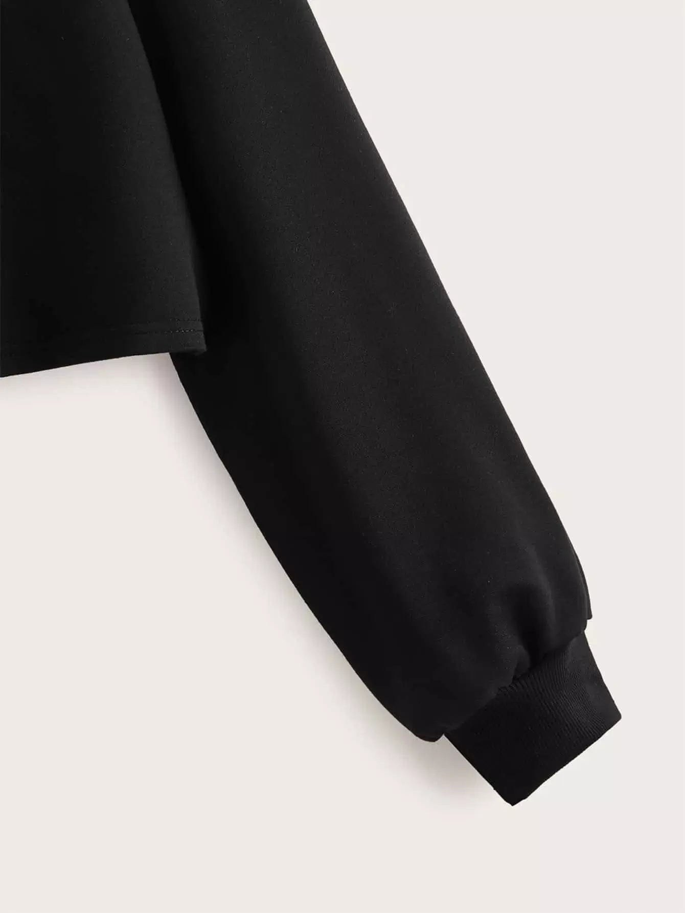 سويت شيرت قصير منسدل الكتف مزين بشعار شعار