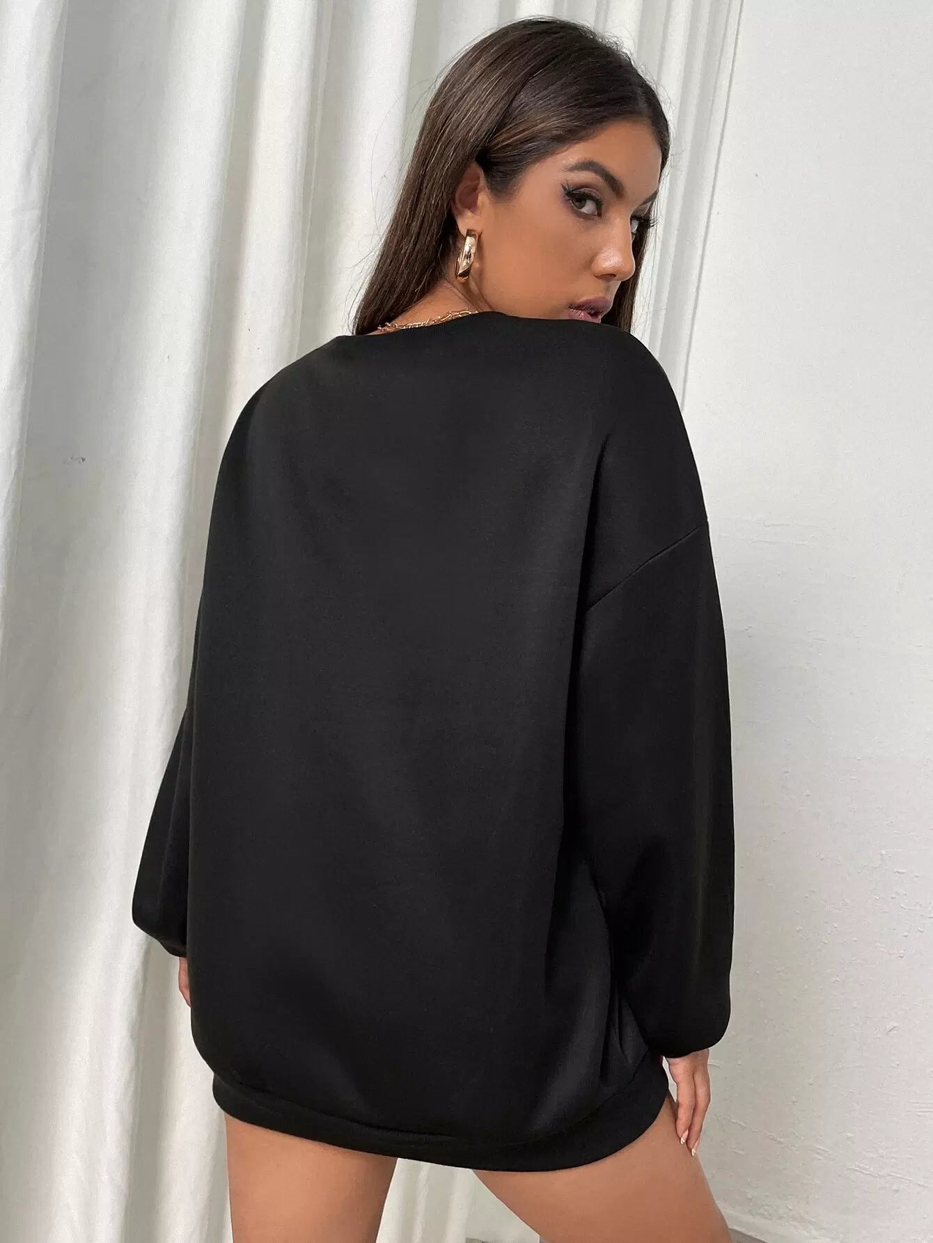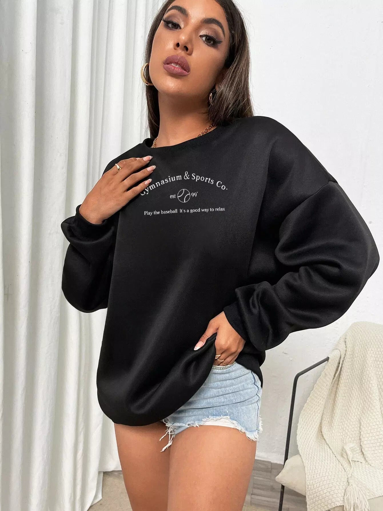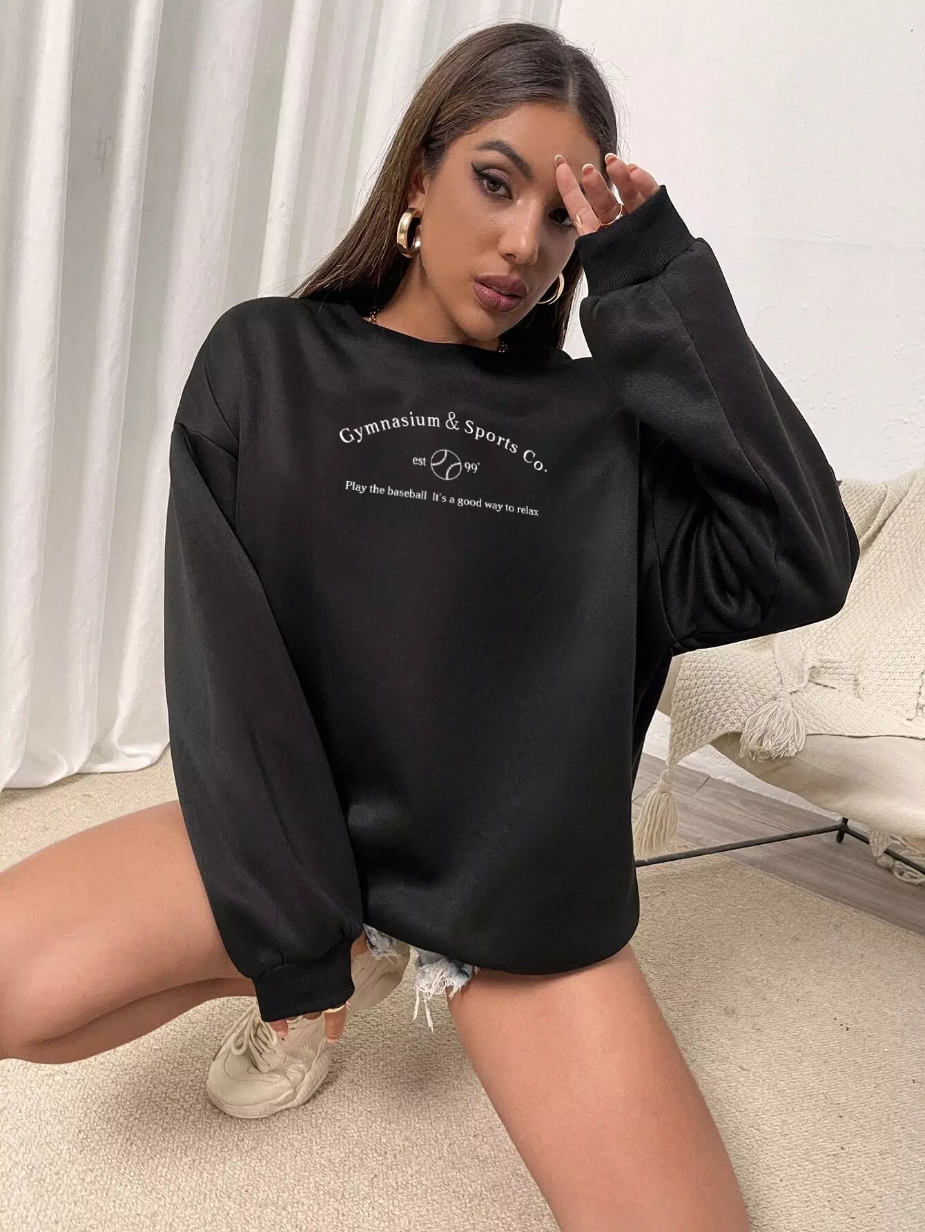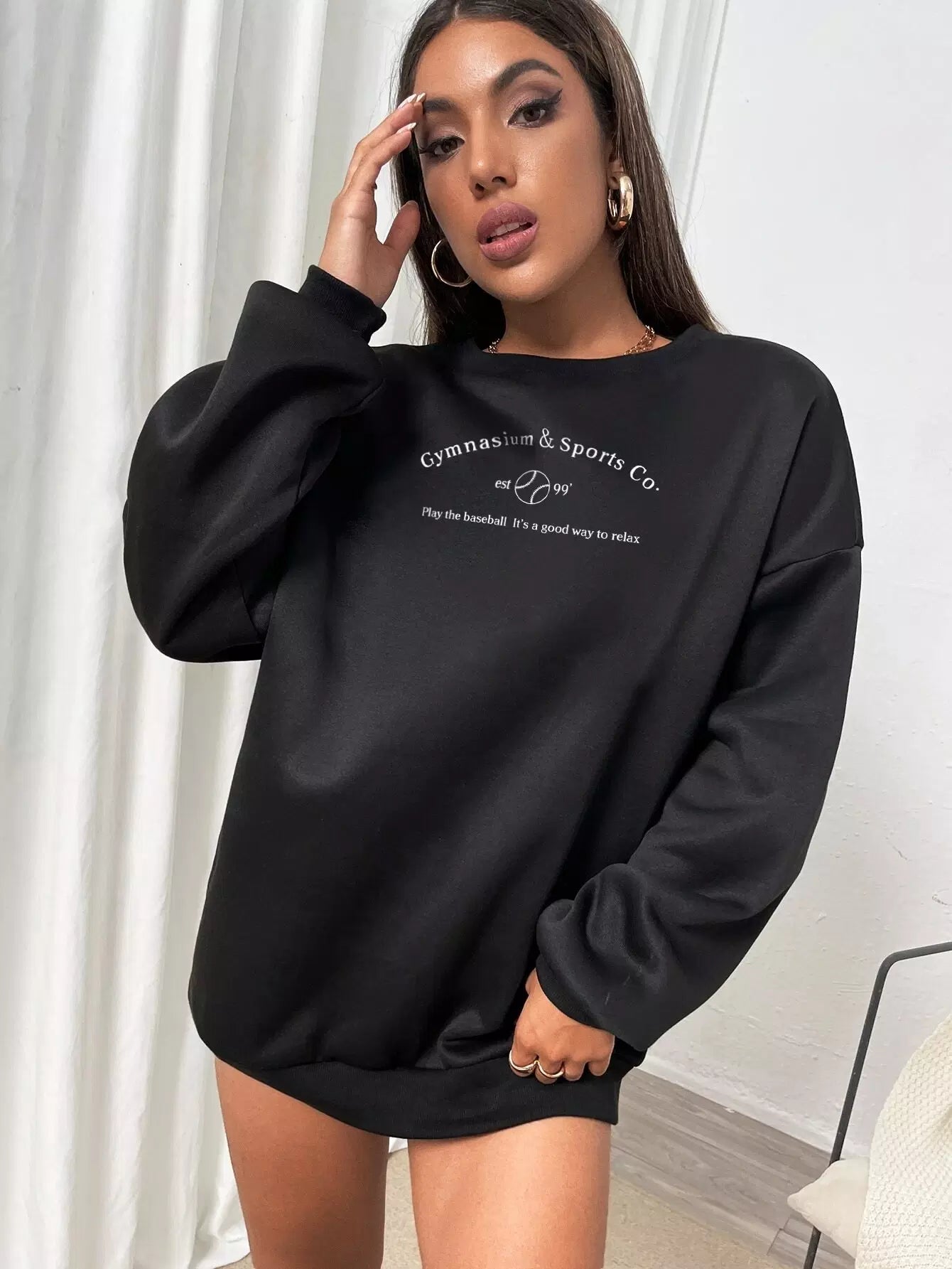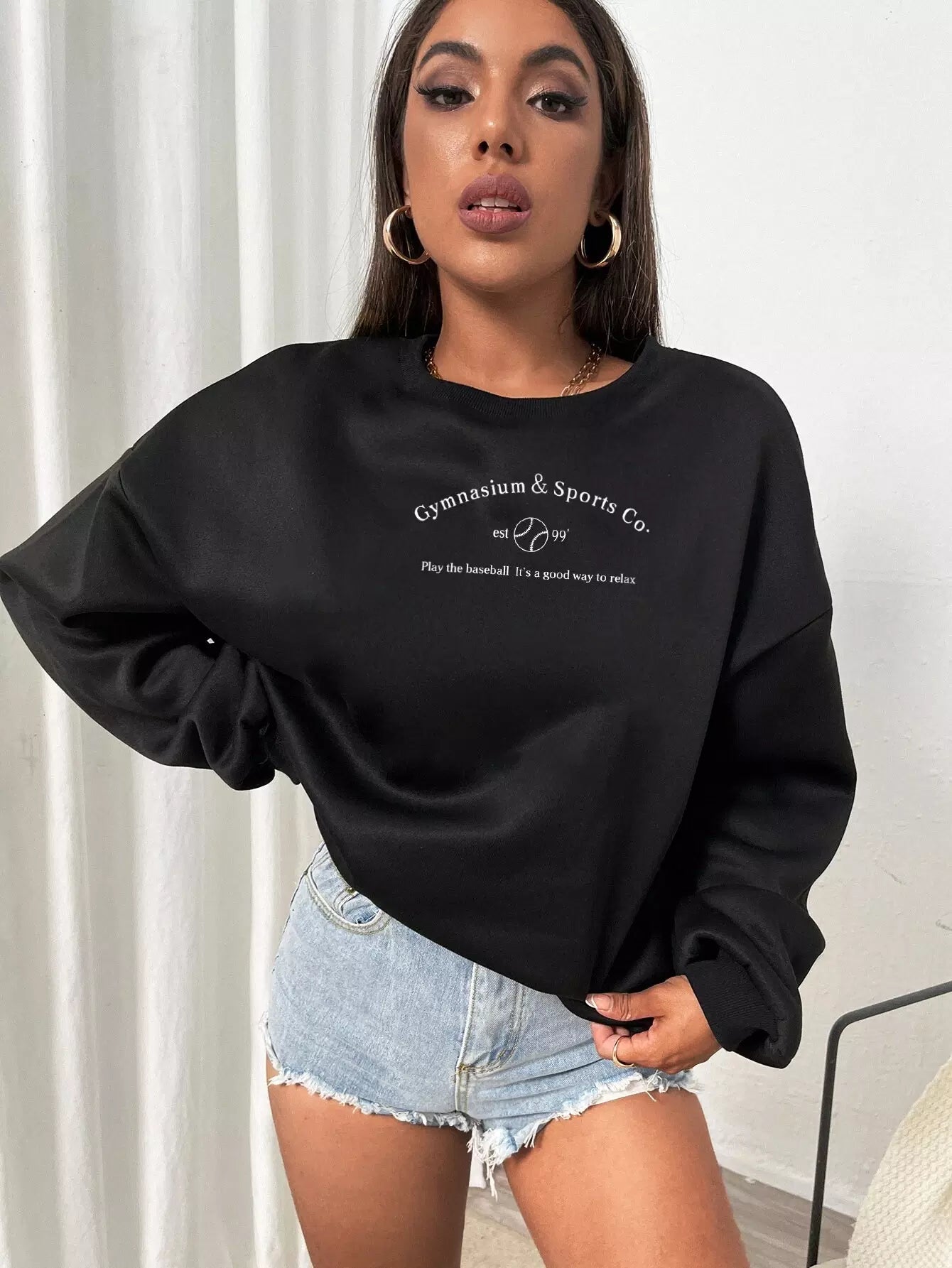 قميص سويت شيرت منسدل الكتف بتصميم شعار جرافيك منسدل الكتف كبير الحجم