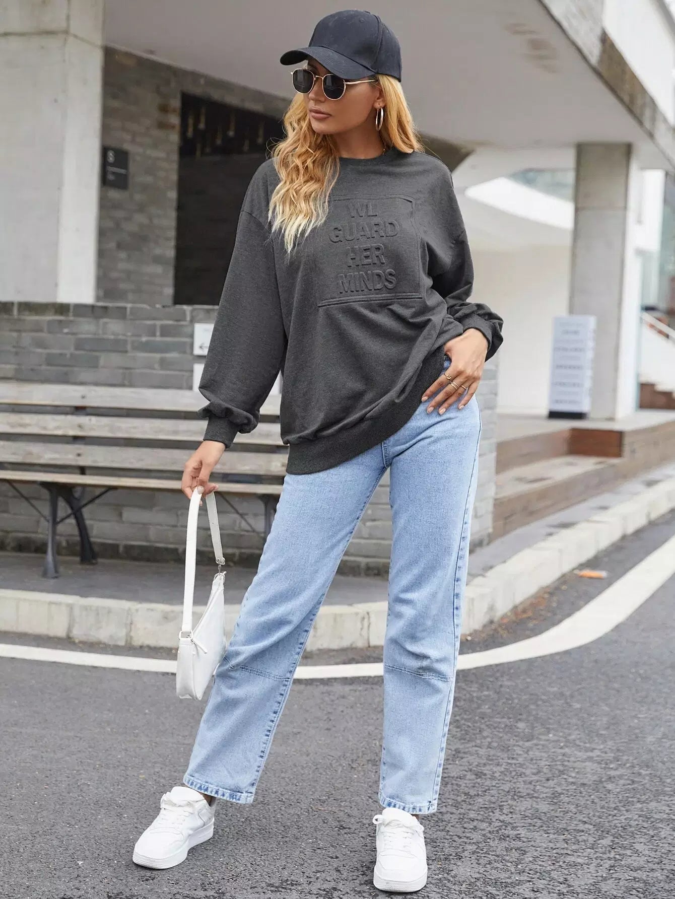 سويت شيرت ذو أكتاف منسدلة جرافيك شعار