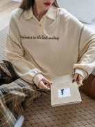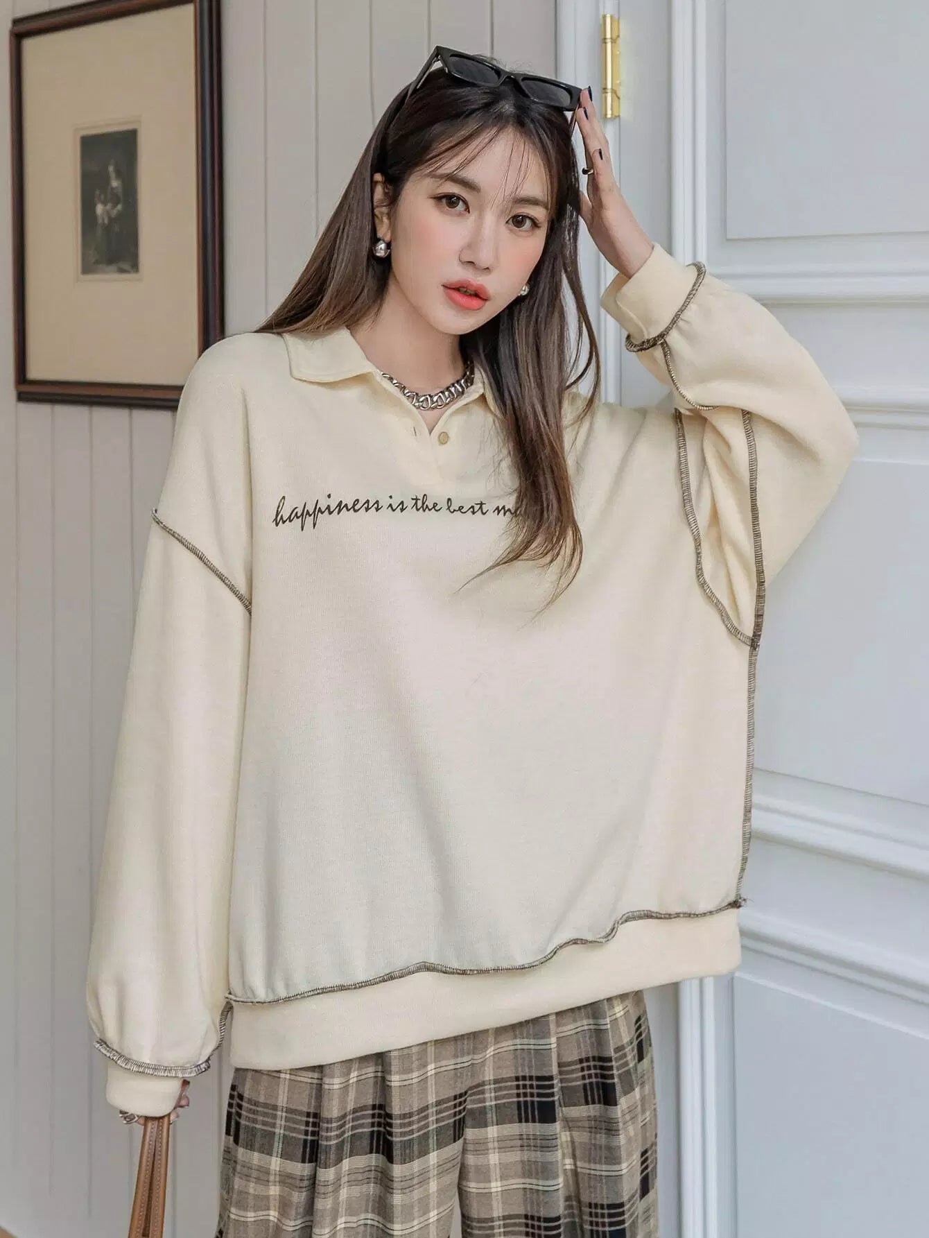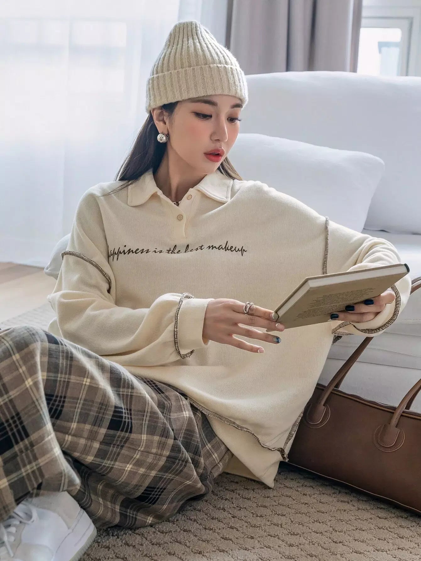 كنزة صوفية بياقة بولو برقبة منسدلة الكتف ذات شعار جرافيك منسدل