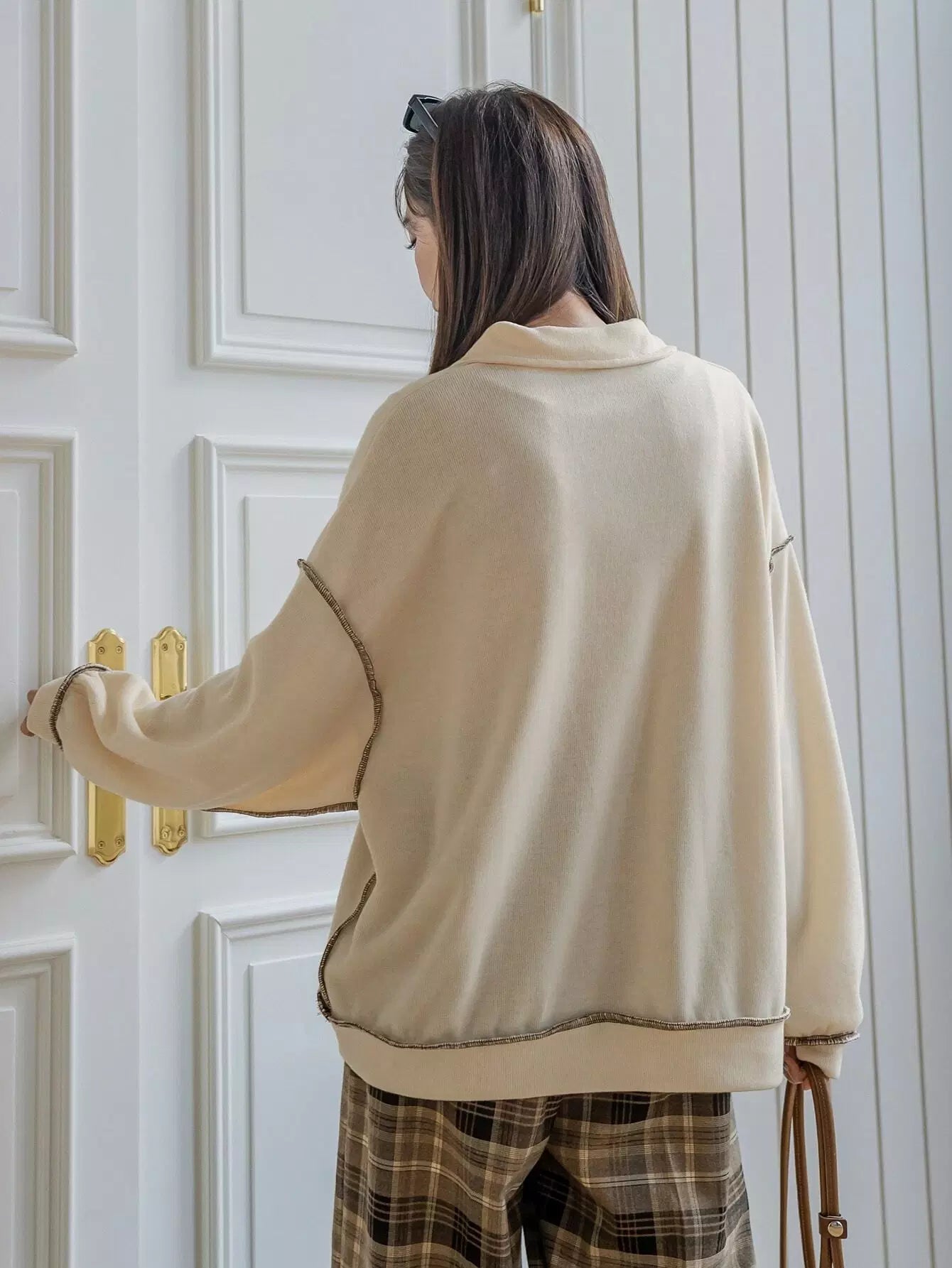 للنساء - بلوفر بياقة بولو وكتف منسدل وخياطة علوية