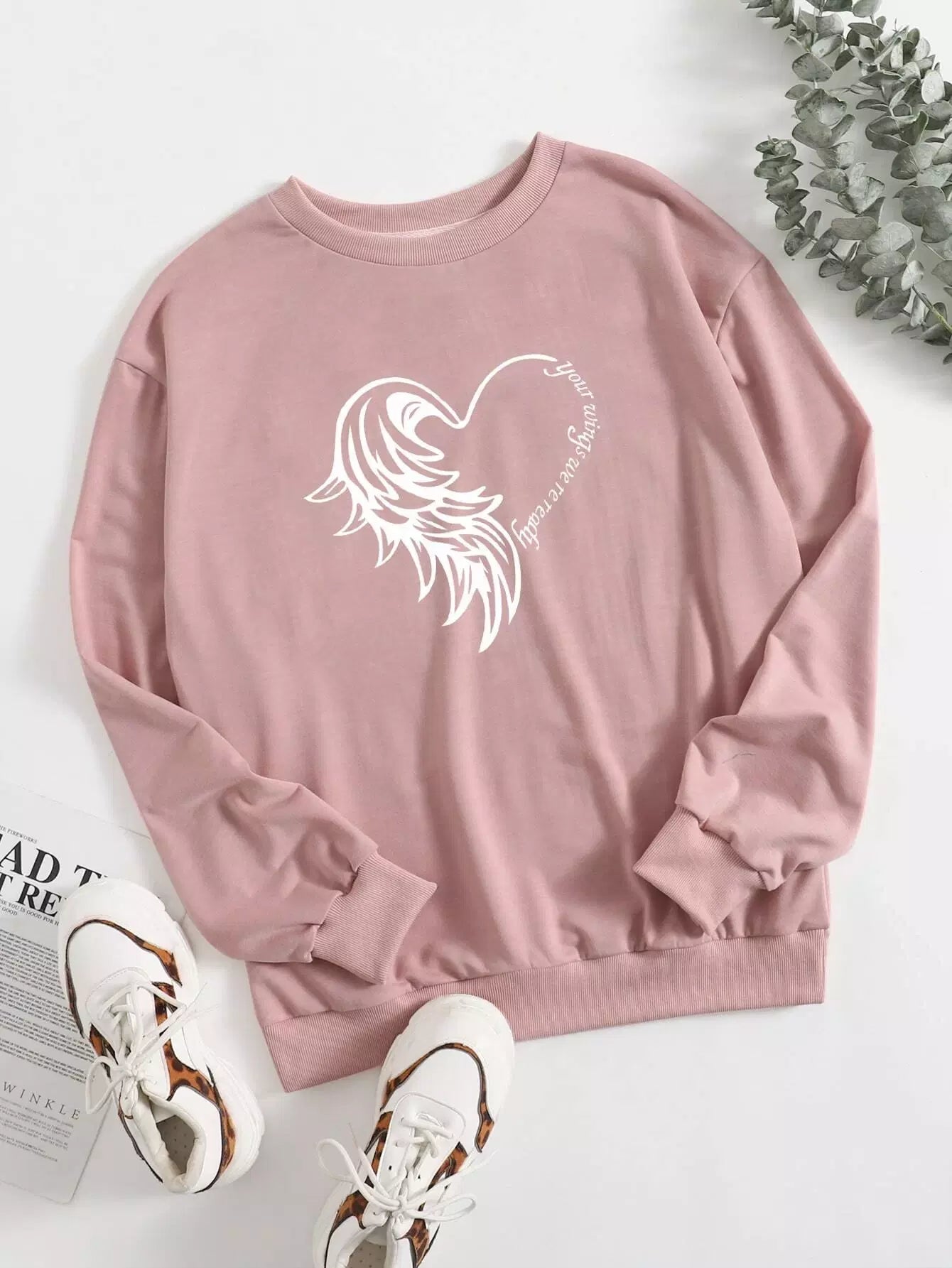 كنزة صوفية مطبوع عليها شعار وأجنحة