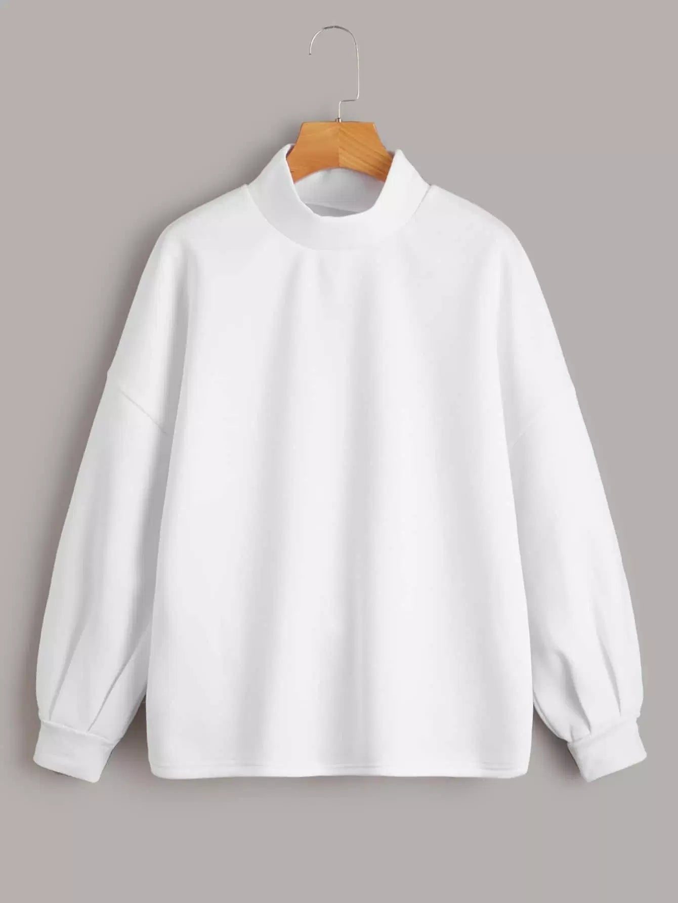 سويت شيرت سادة منسدل الكتفين برقبة مستقيمة