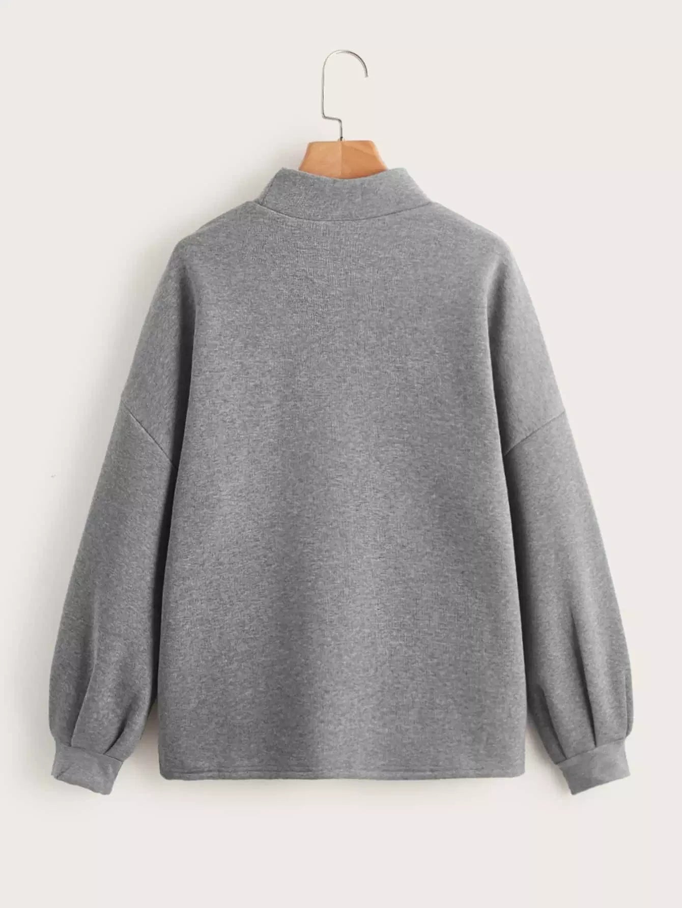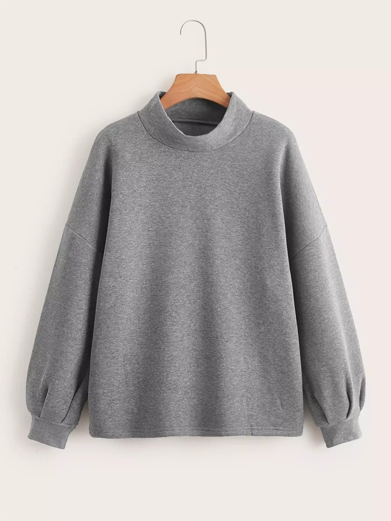 سويت شيرت سادة منسدل الكتفين برقبة مستقيمة