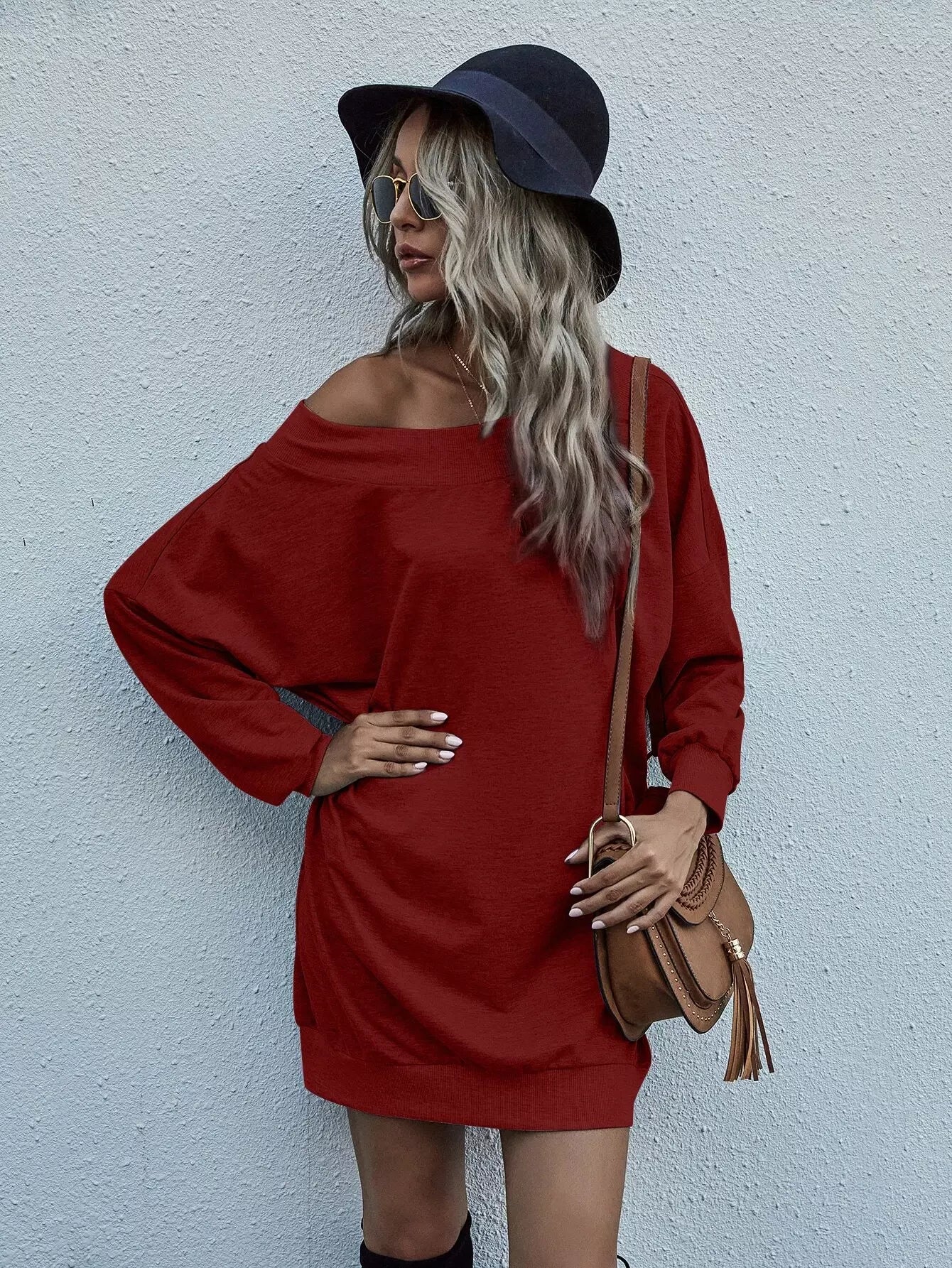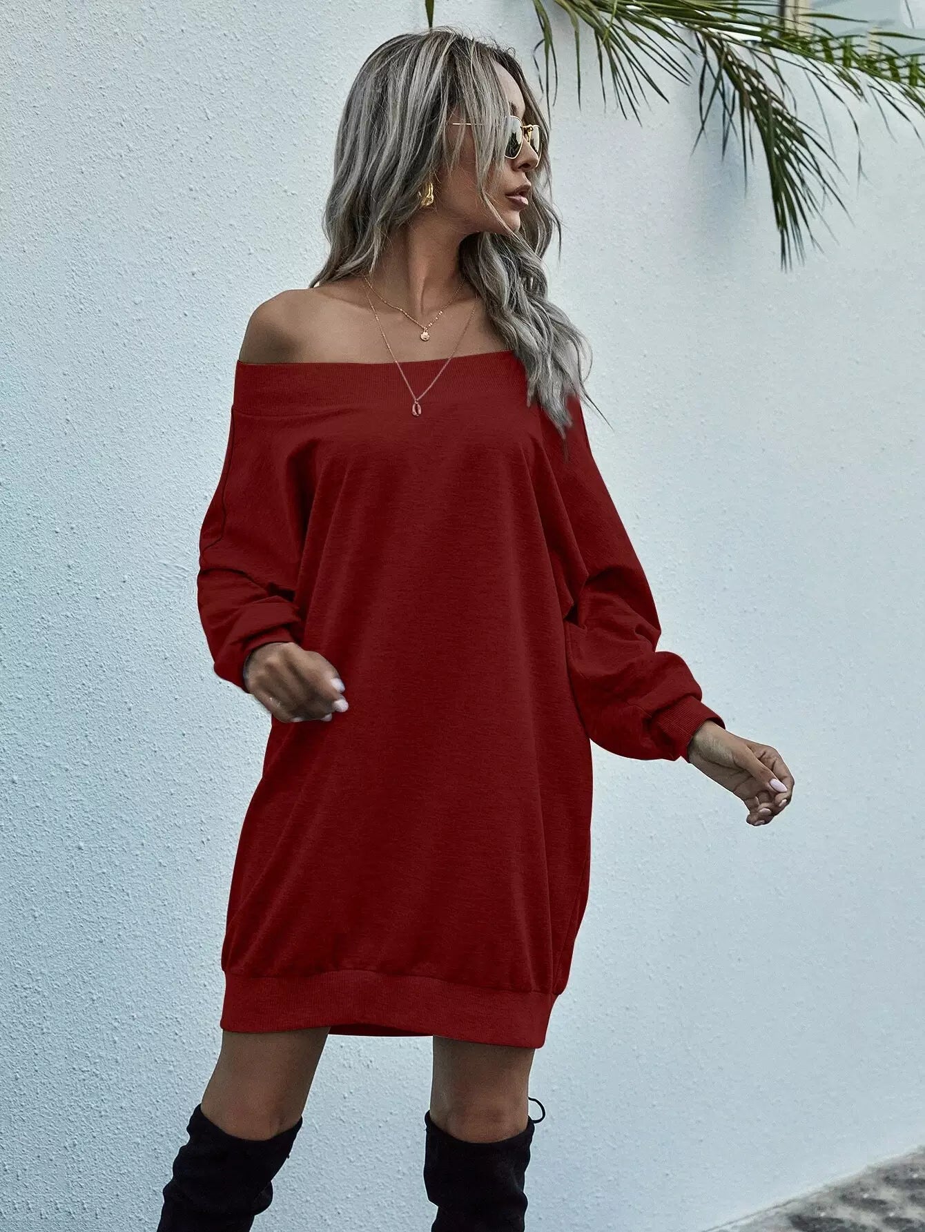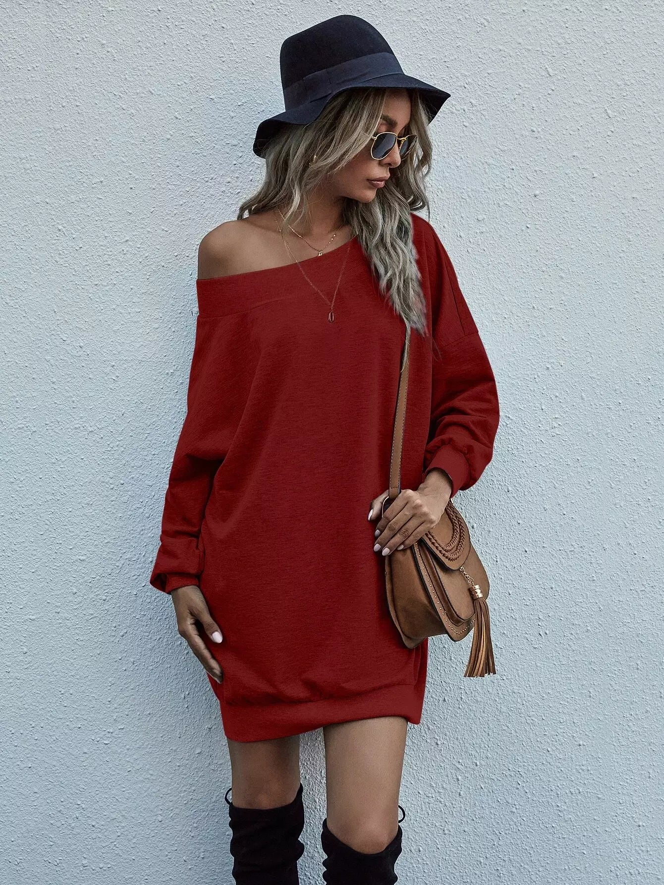 فستان سادة منسدل الكتفين سادة منسدل الكتفين