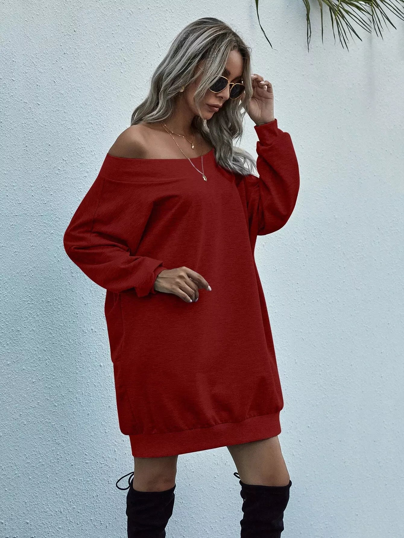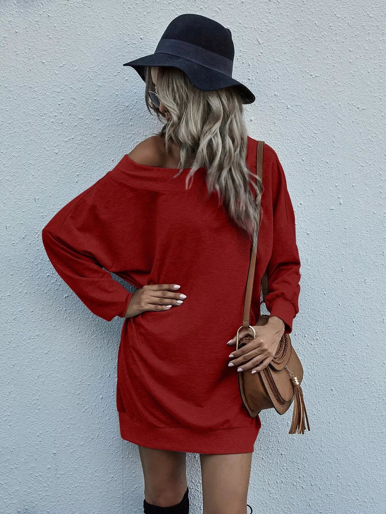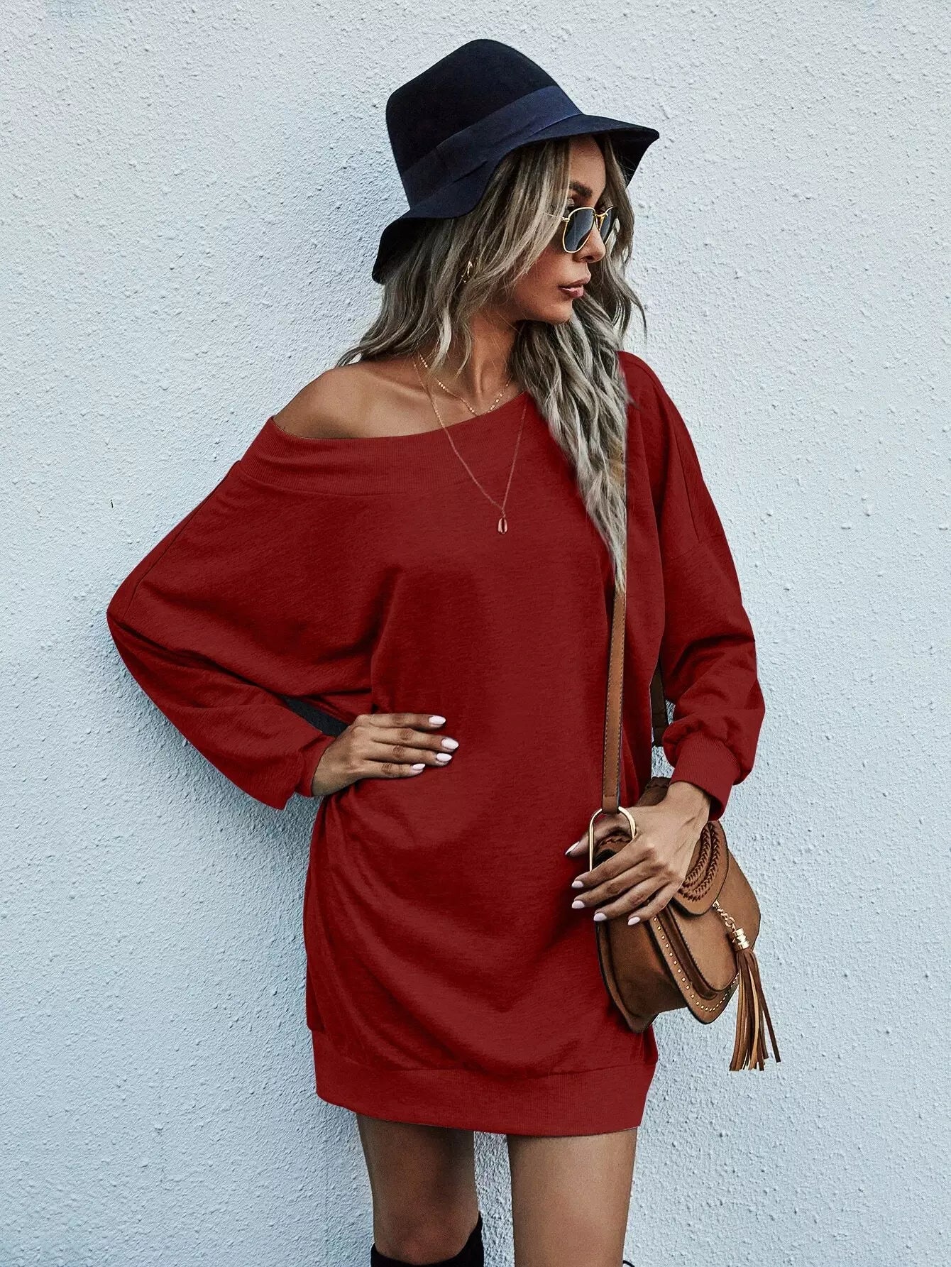 فستان سادة منسدل الكتفين سادة منسدل الكتفين