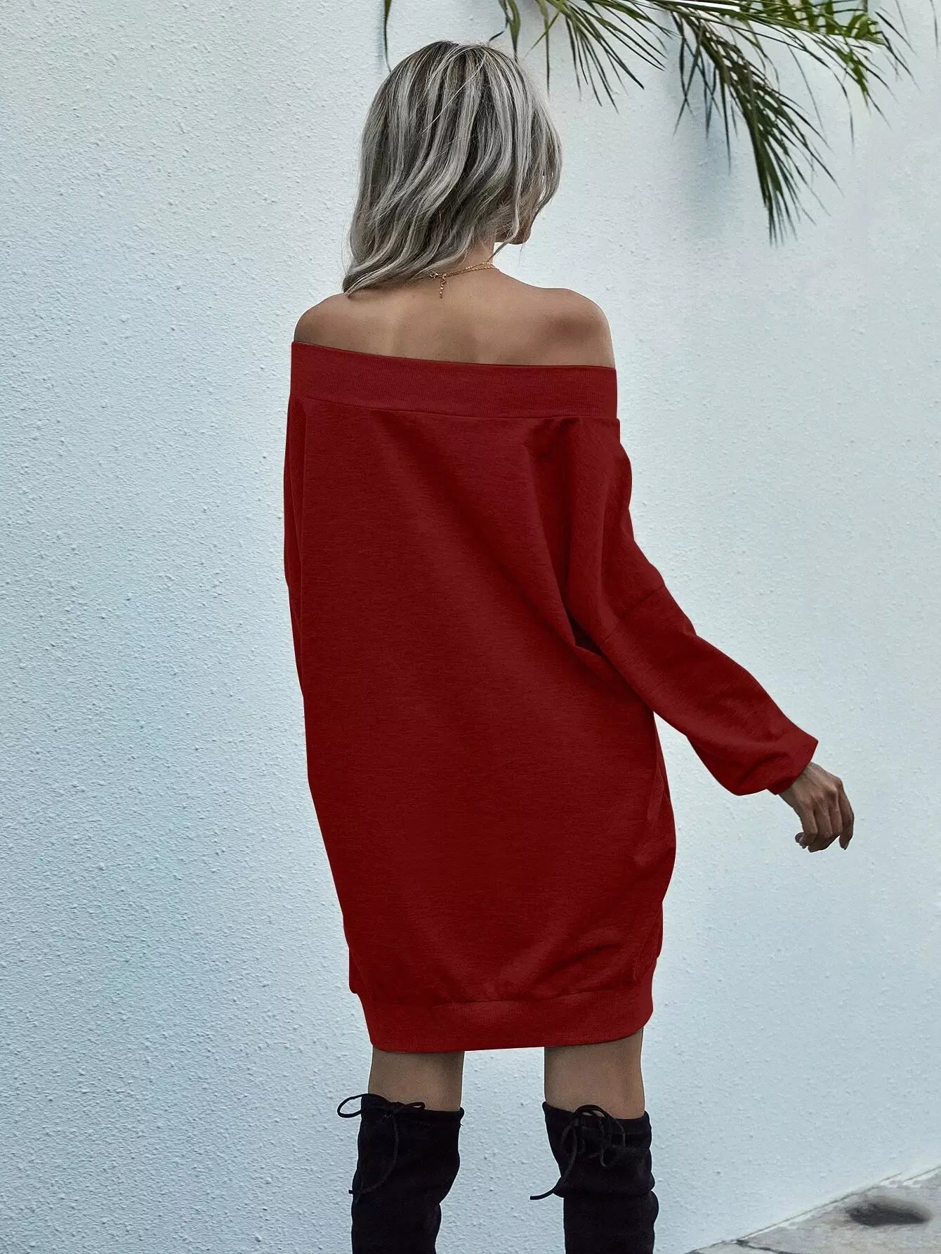للنساء - فستان من النوع الثقيل ذو كتف منسدل
