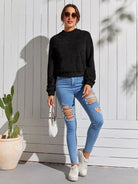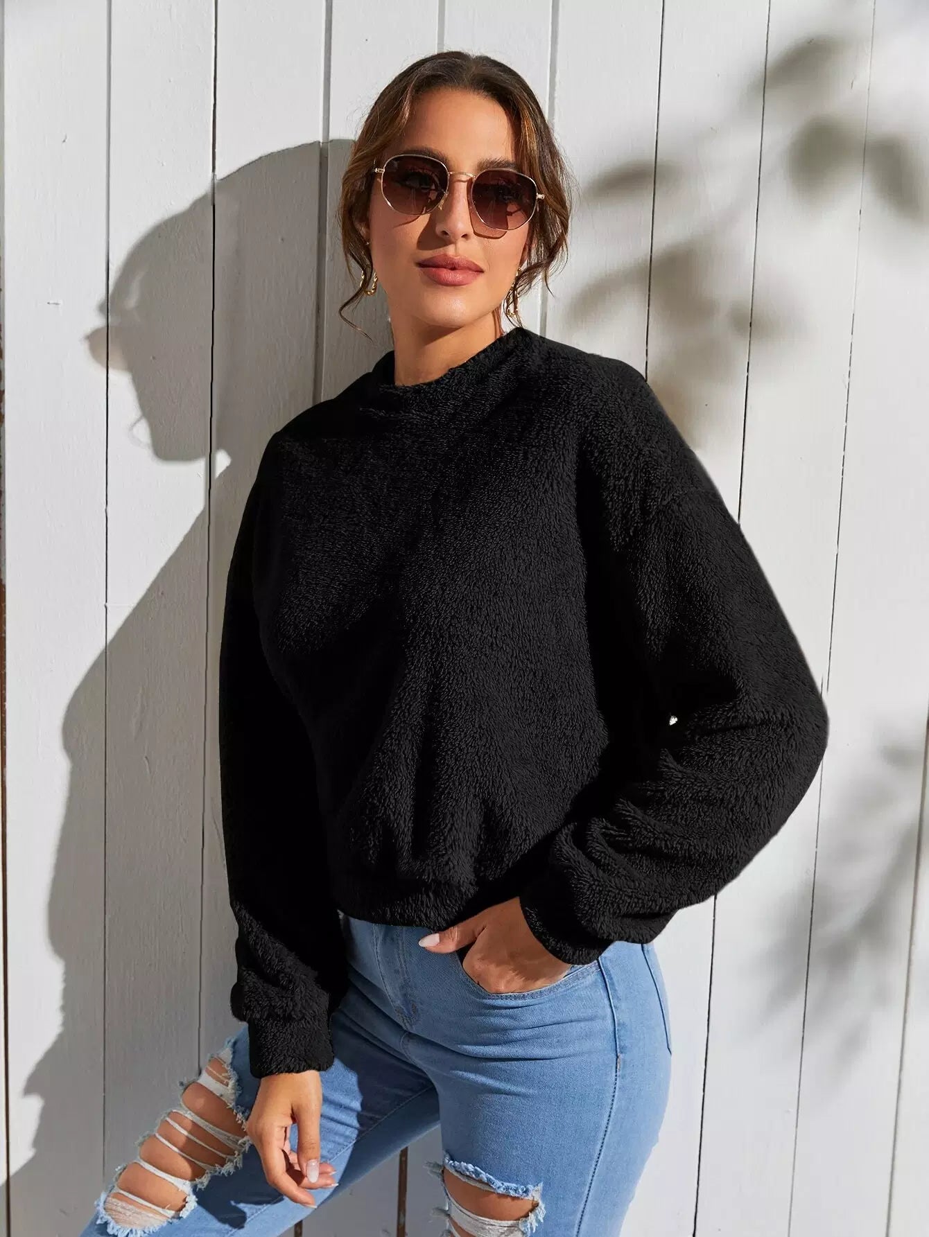 كنزة صوفية سادة منسدلة الكتفين منسدلة الكتفين