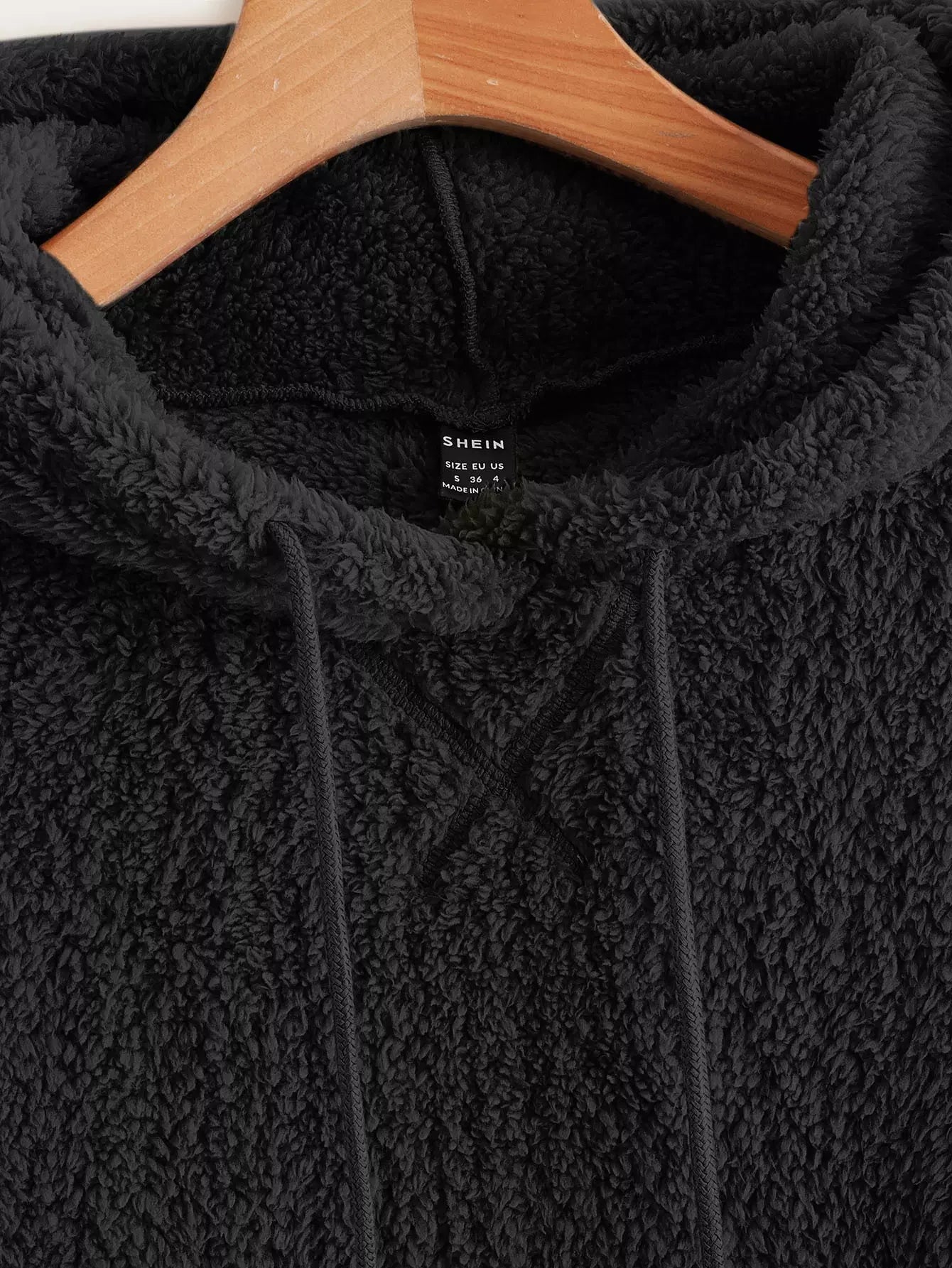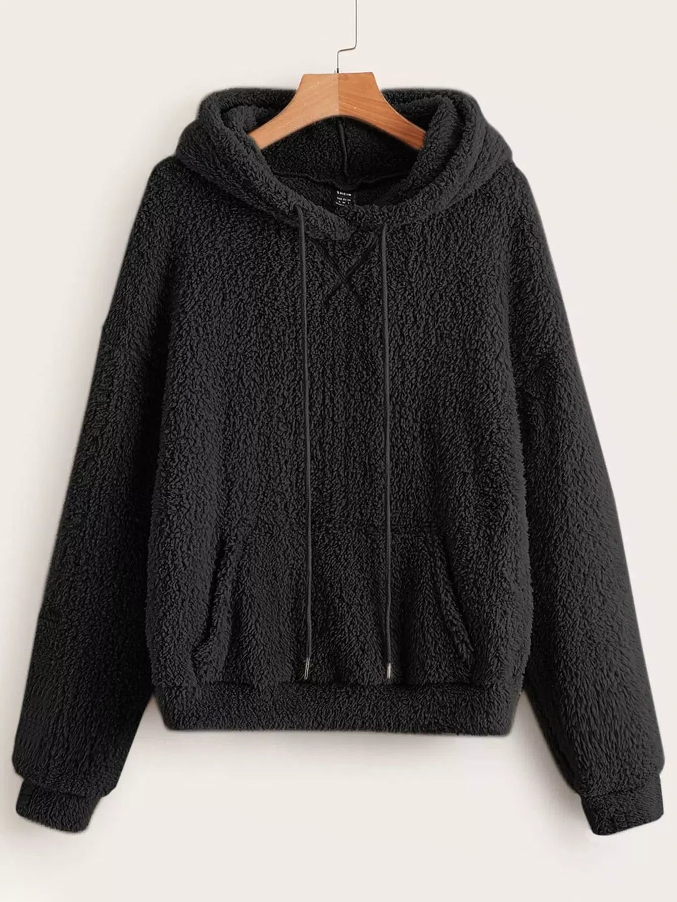 هودي كنغر سادة بجيب منسدل على الكتف برباط منسدل على شكل دببة