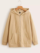 هودي سادة بجيب أمامي سادة بسحاب أمامي كبير الحجم