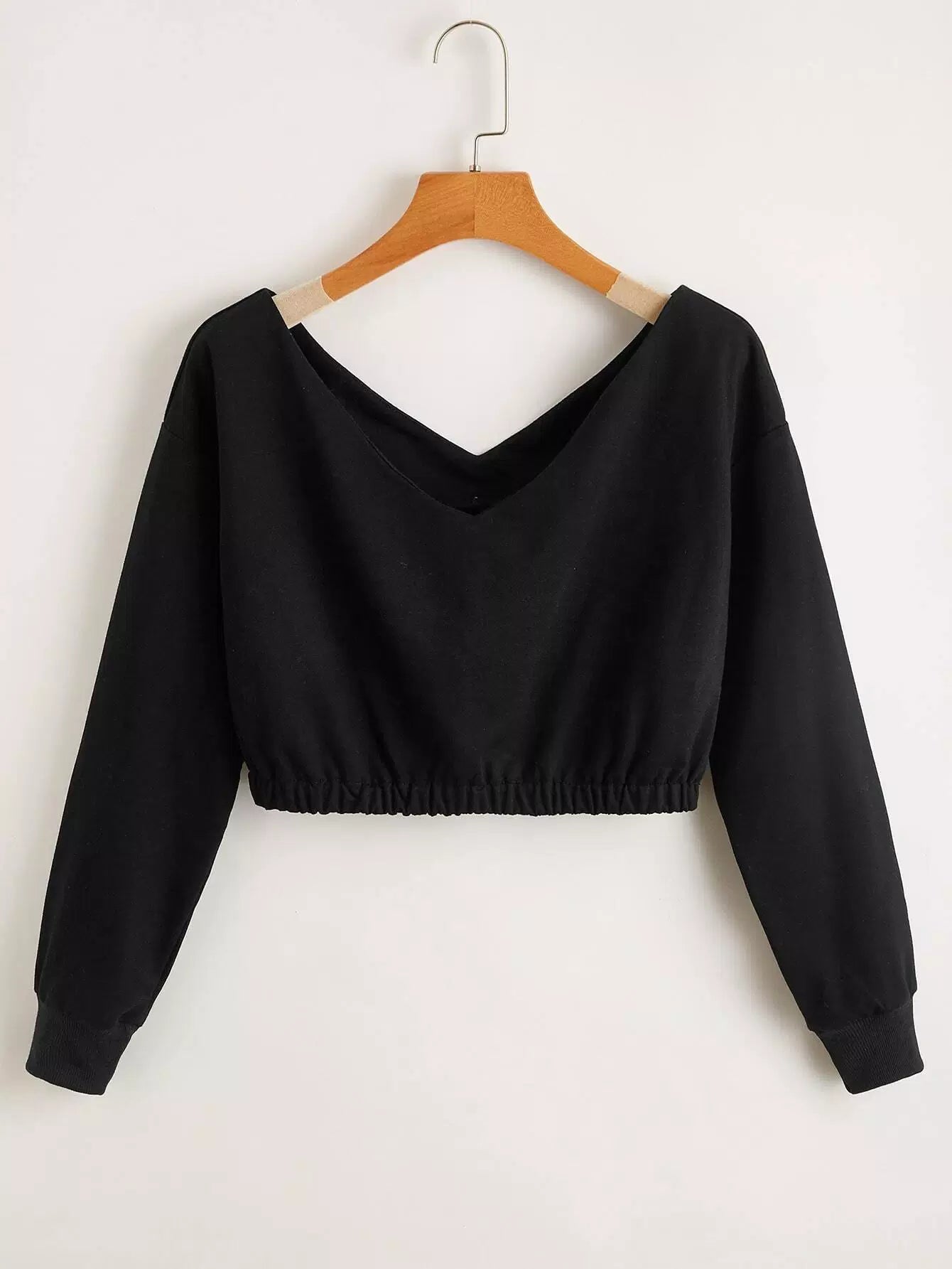 سويت شيرت سادة برقبة على شكل حرف V بياقة قصيرة