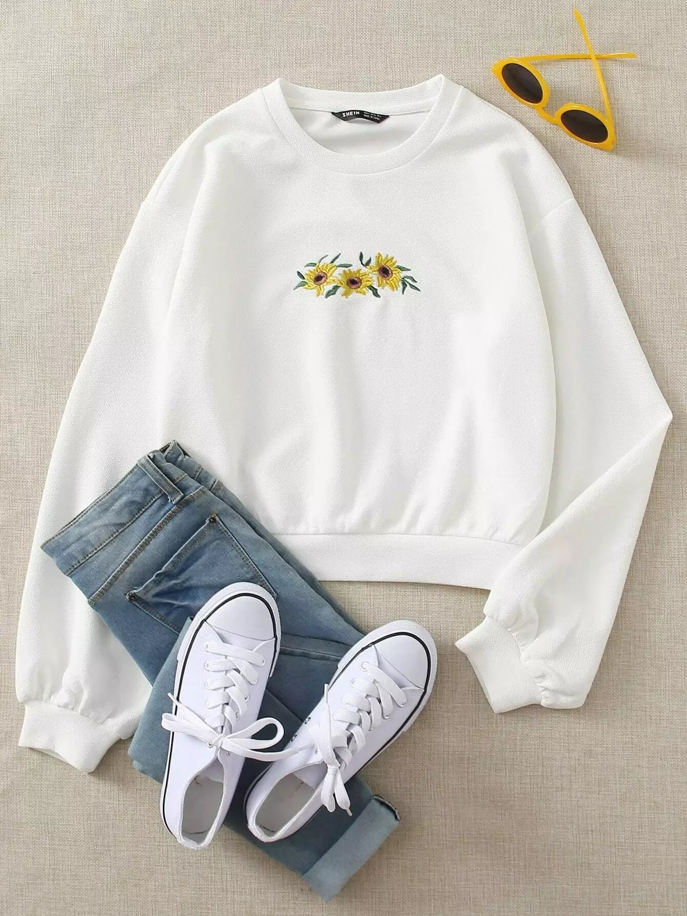 كنزة صوفية مطرزة بتطريز دوار الشمس