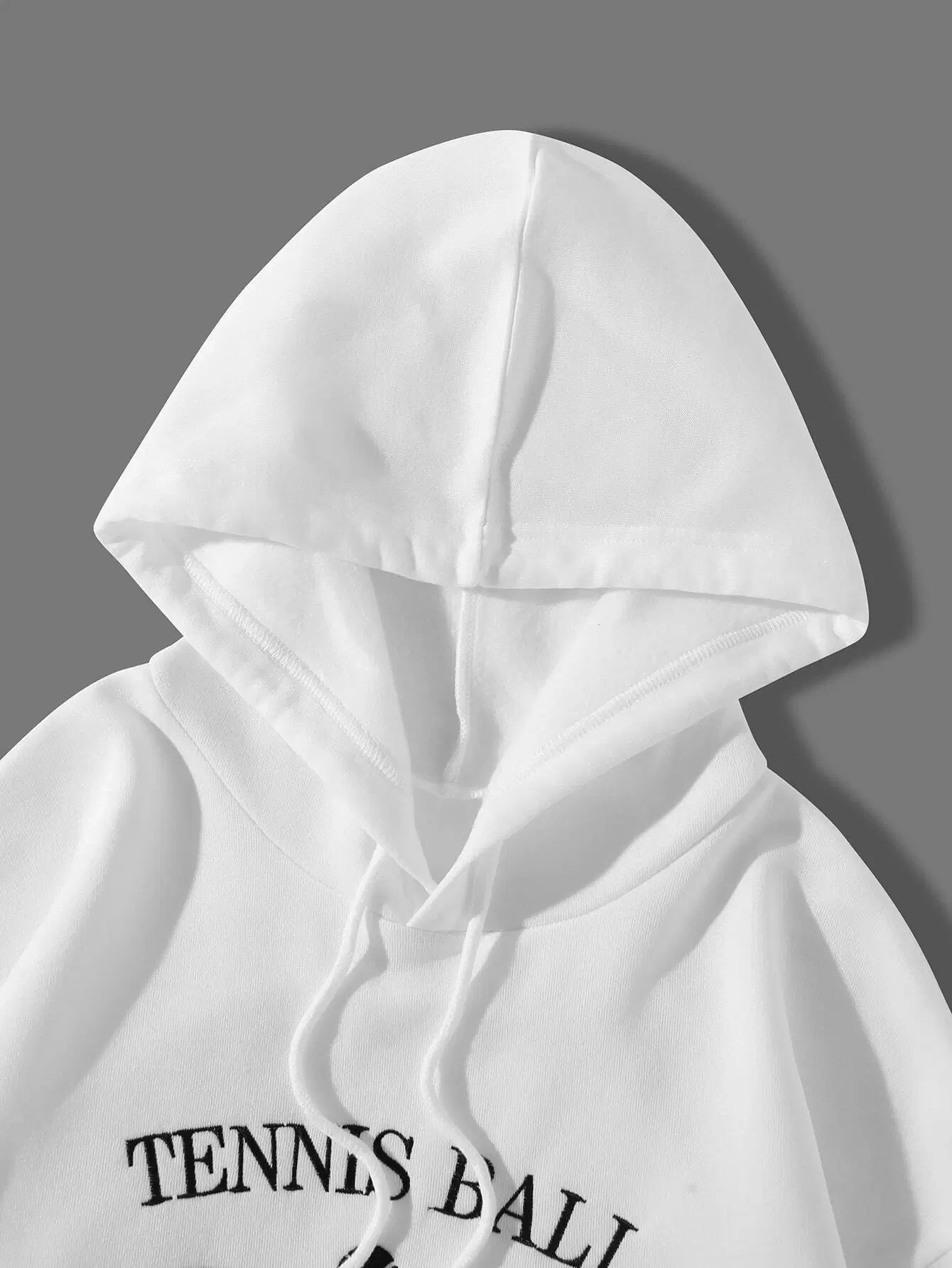 مضرب تنس وتطريز حروف على الكتف المنسدل هودي منسدل على شكل مضرب تنس