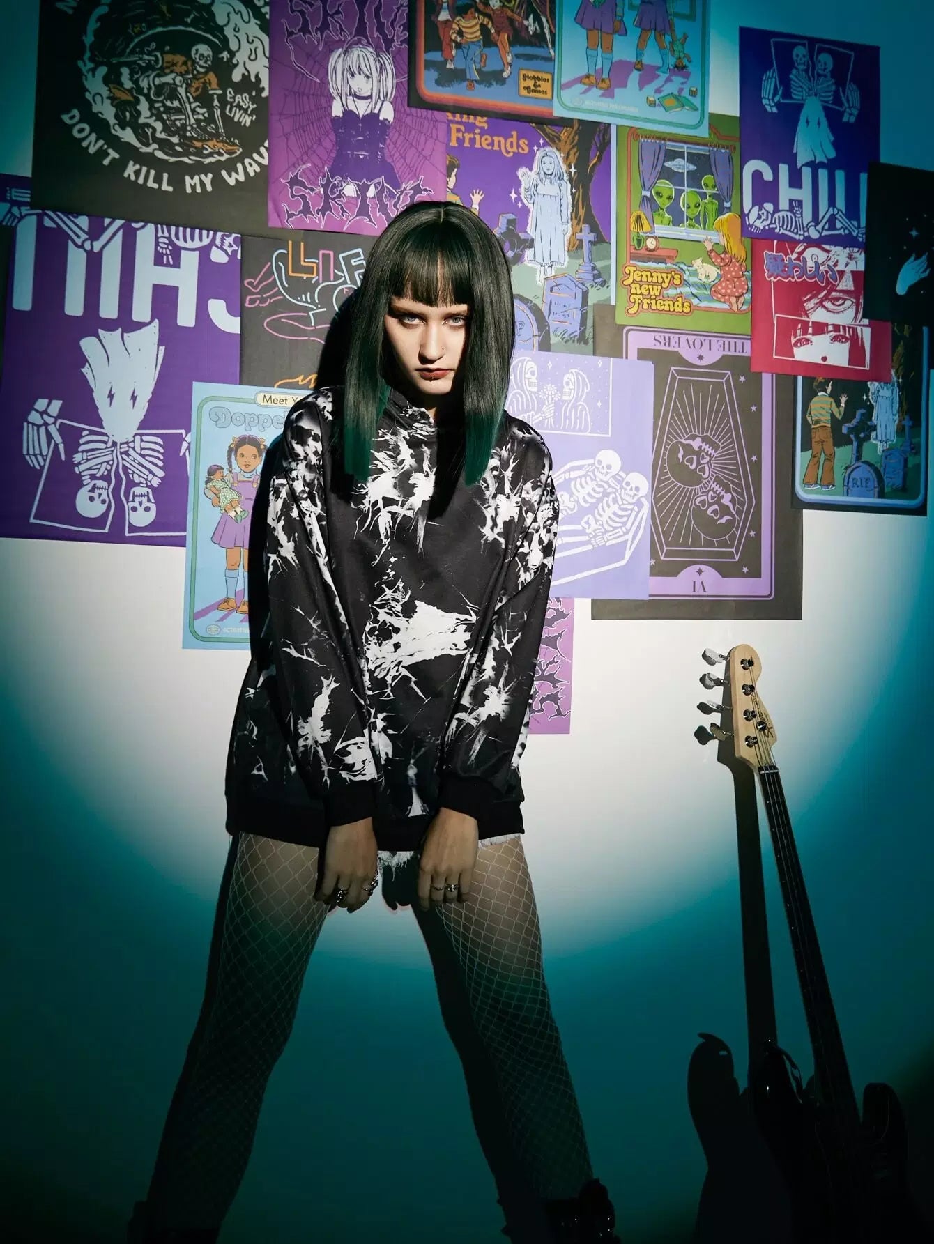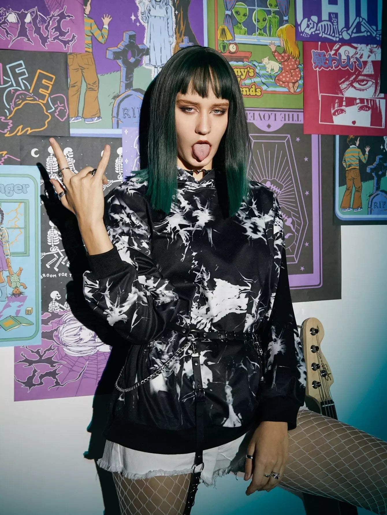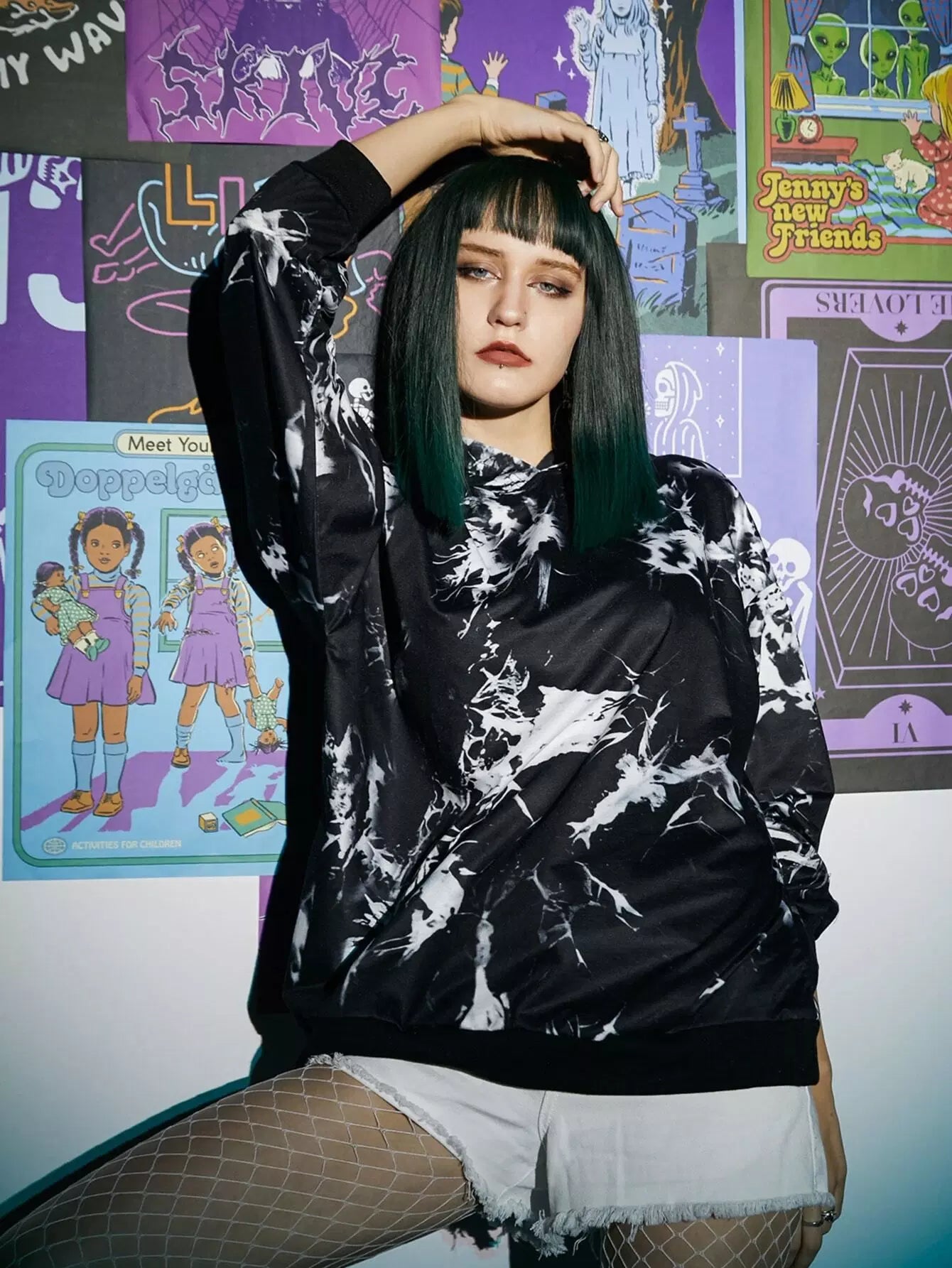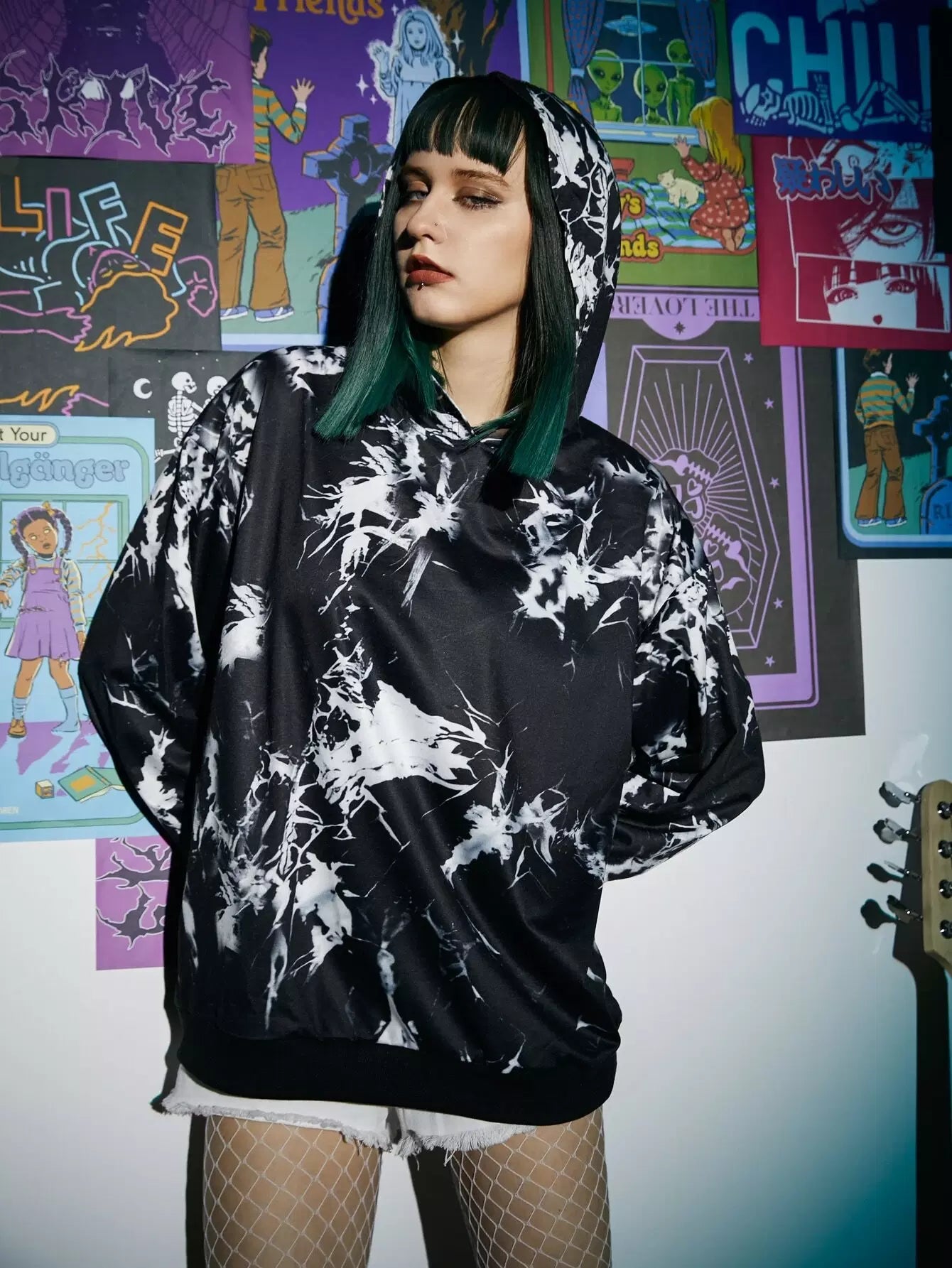 هودي منسدل الكتف مصبوغ بربطة عنق مصبوغة