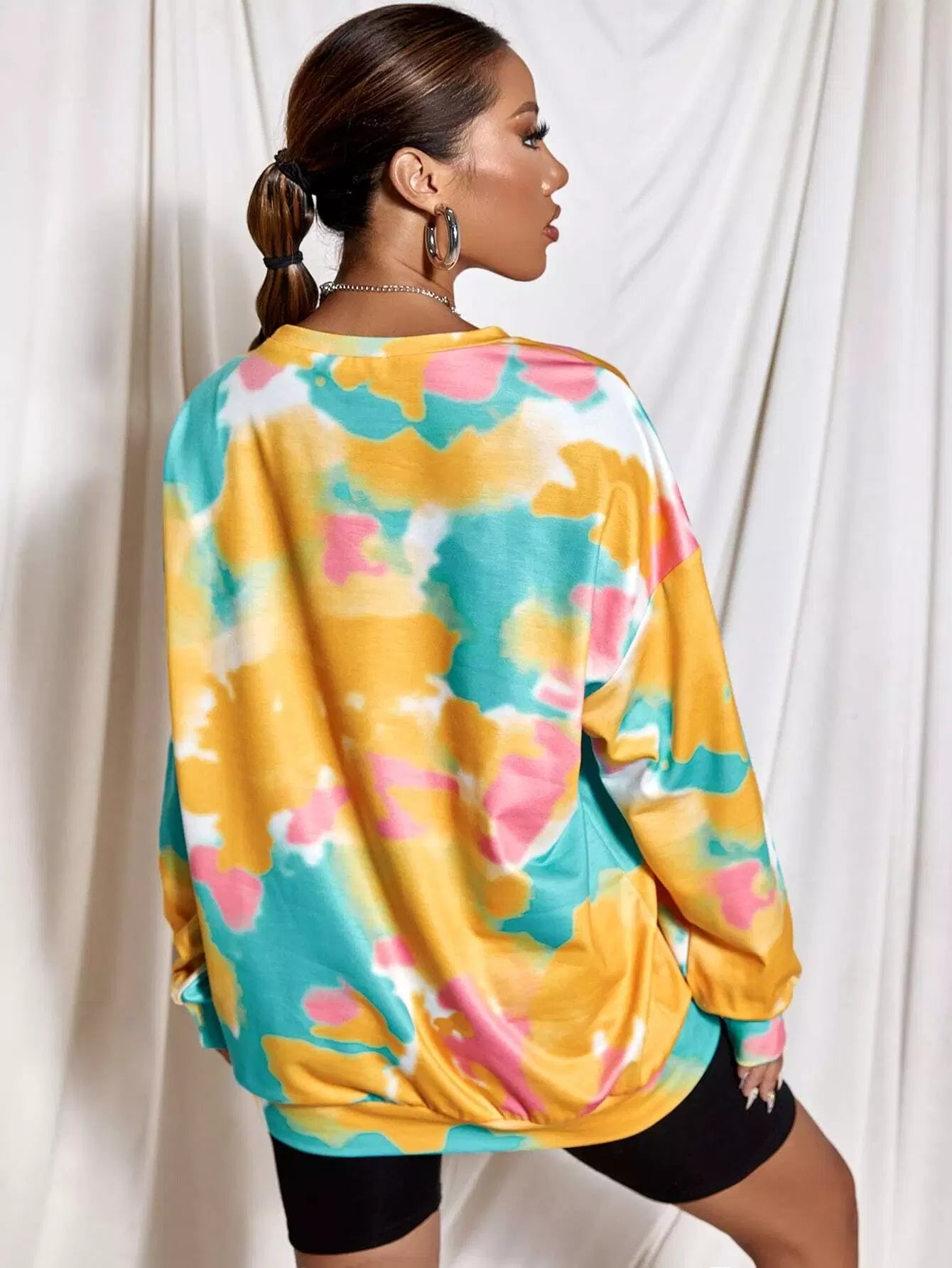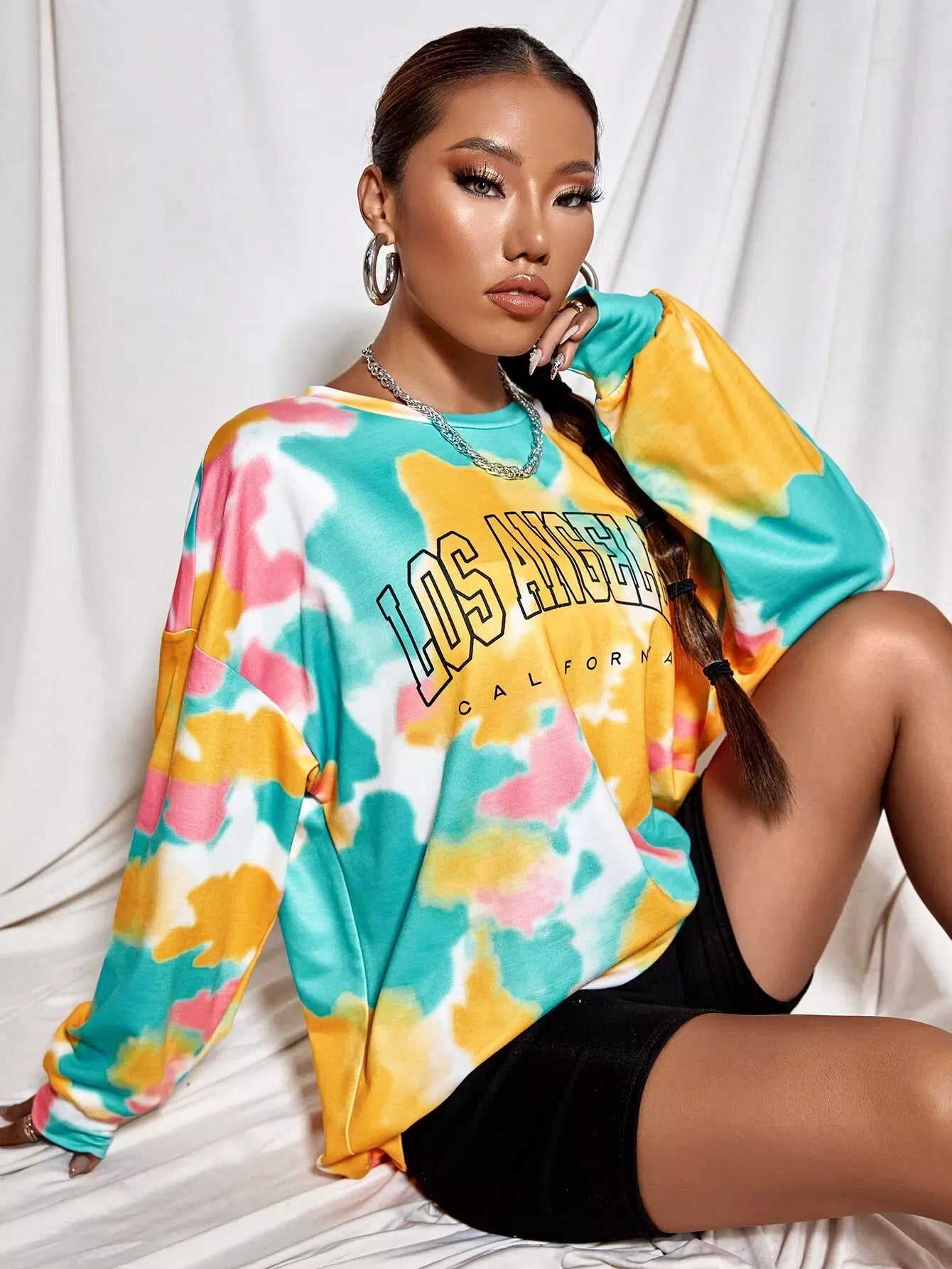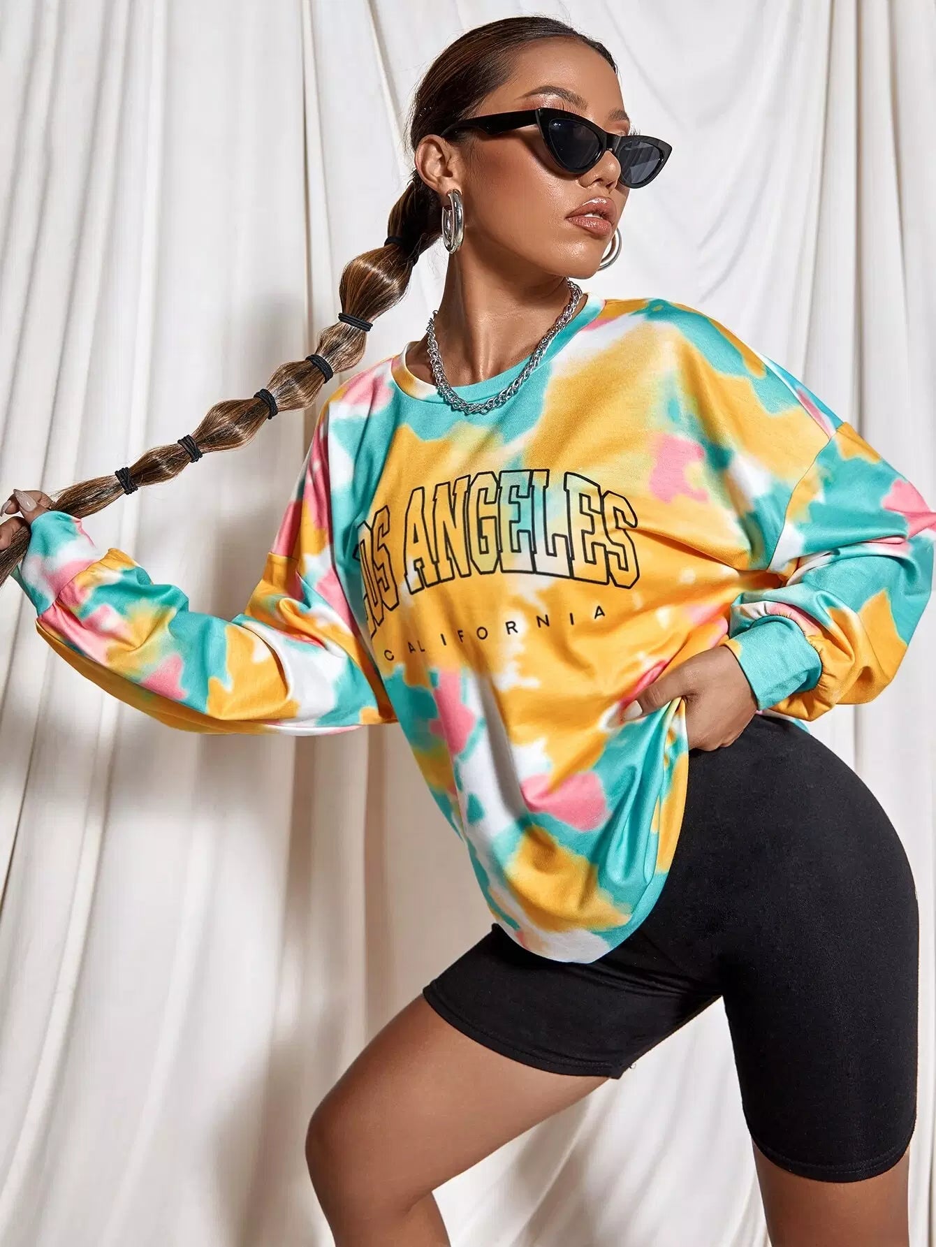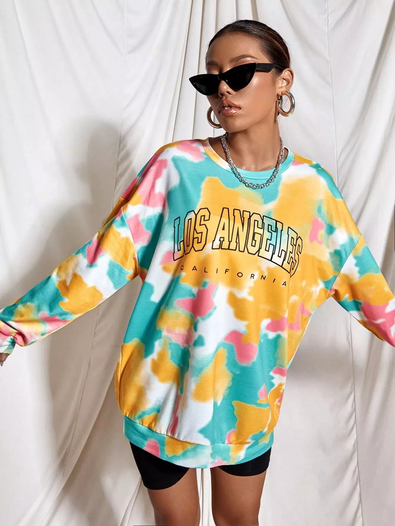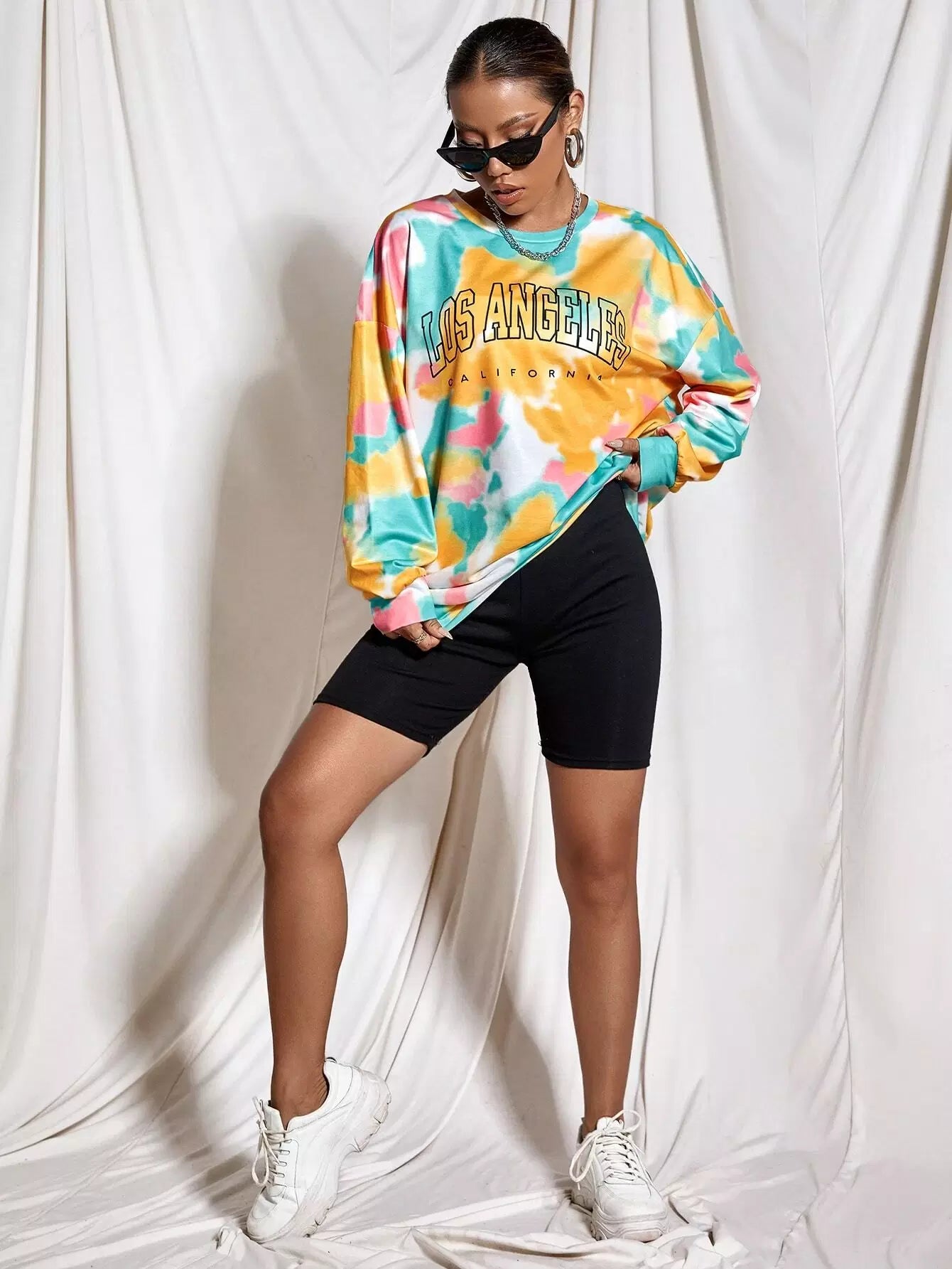 سويت شيرت مزين برسومات على شكل حرف ربطة عنق مصبوغ بربطة عنق