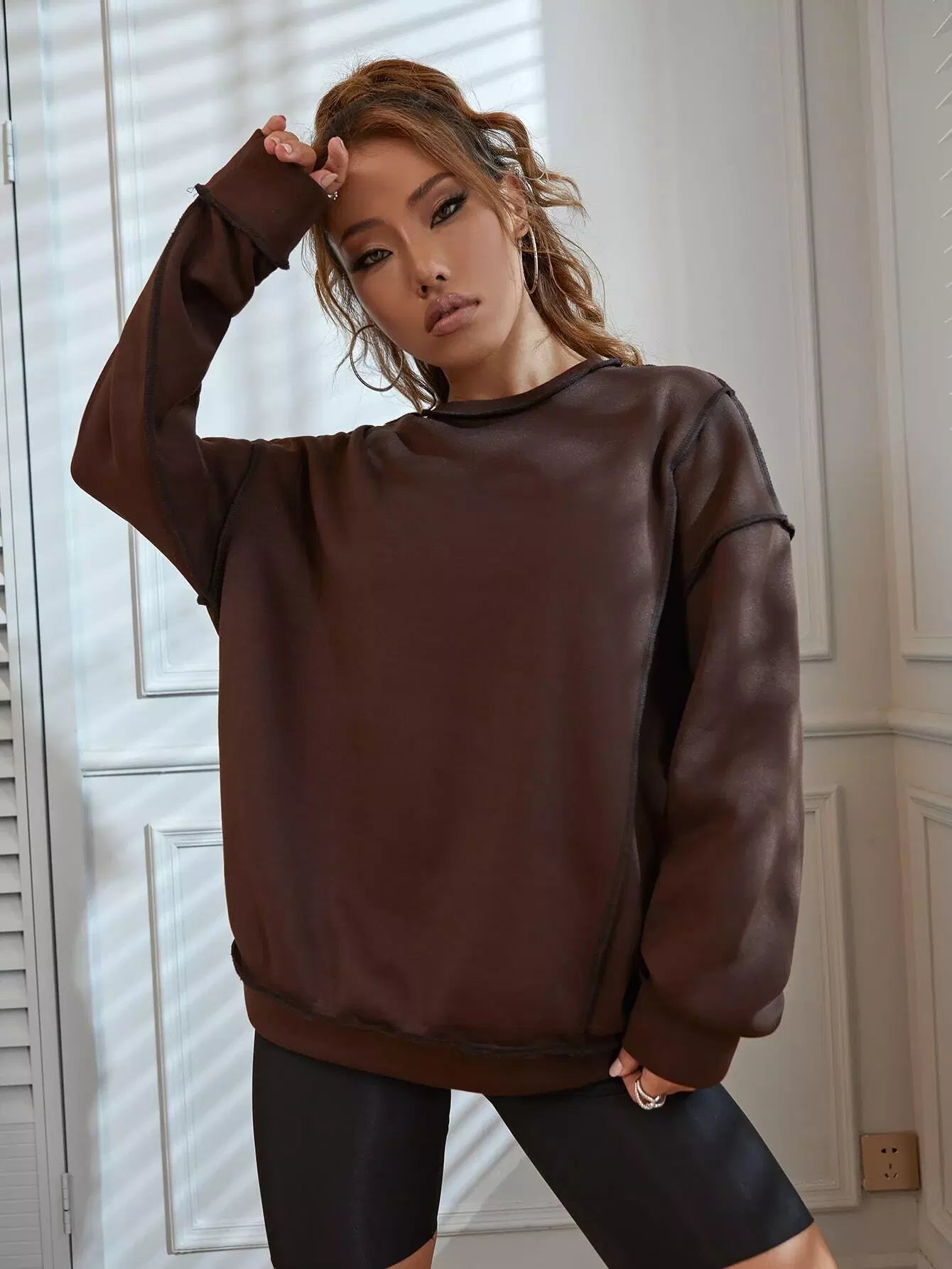 سويت شيرت ذو أكتاف منسدلة بخياطة علوية