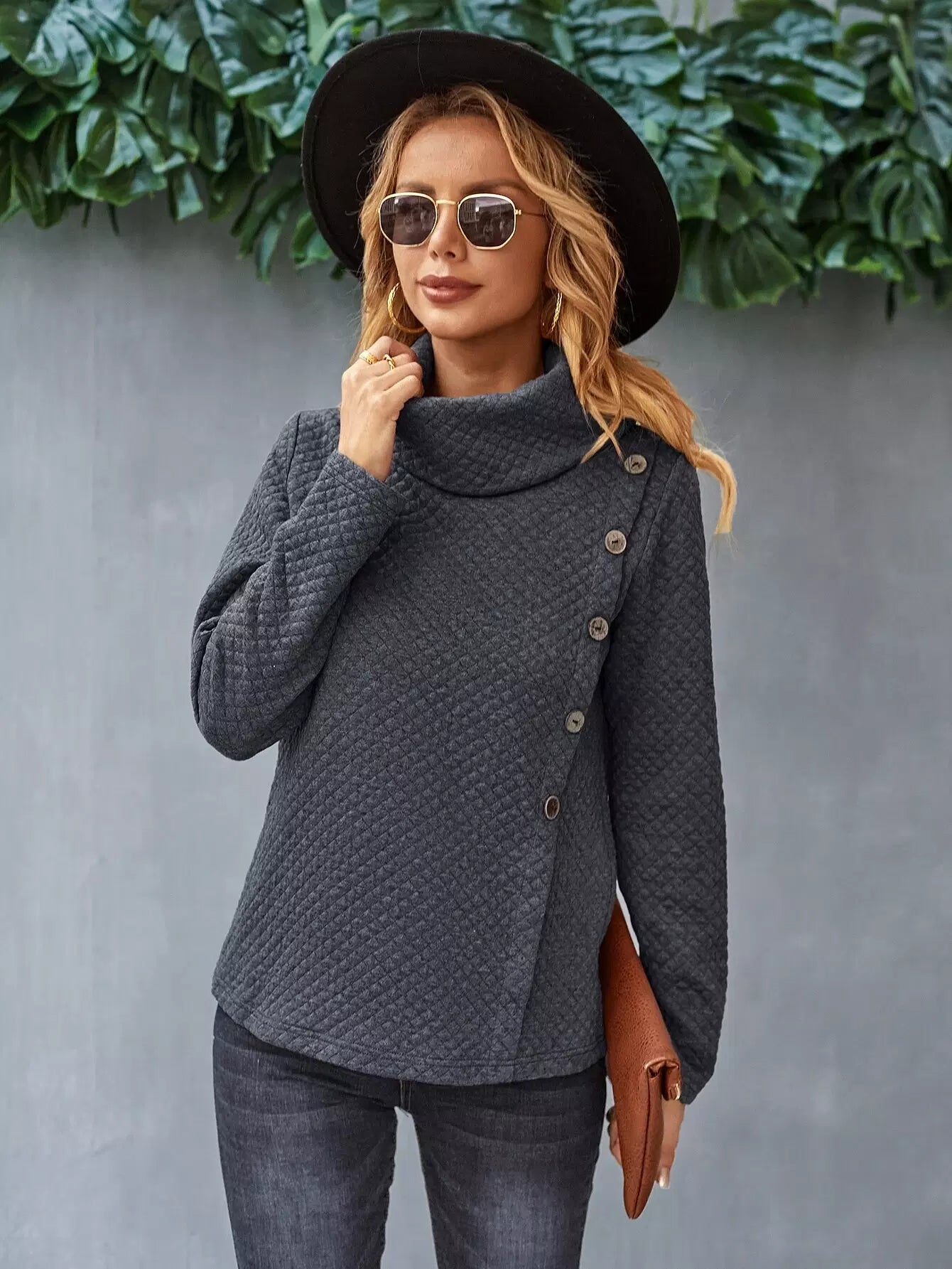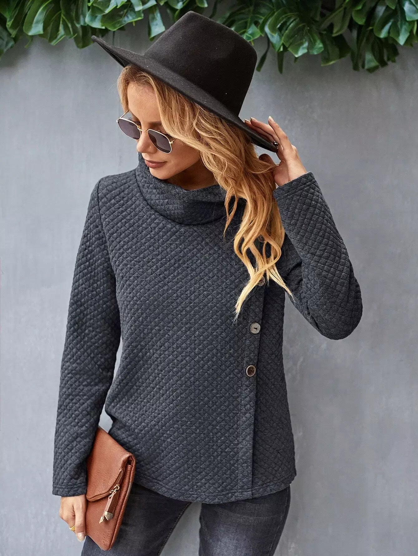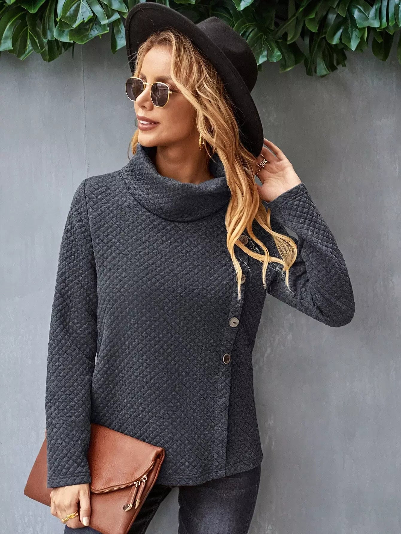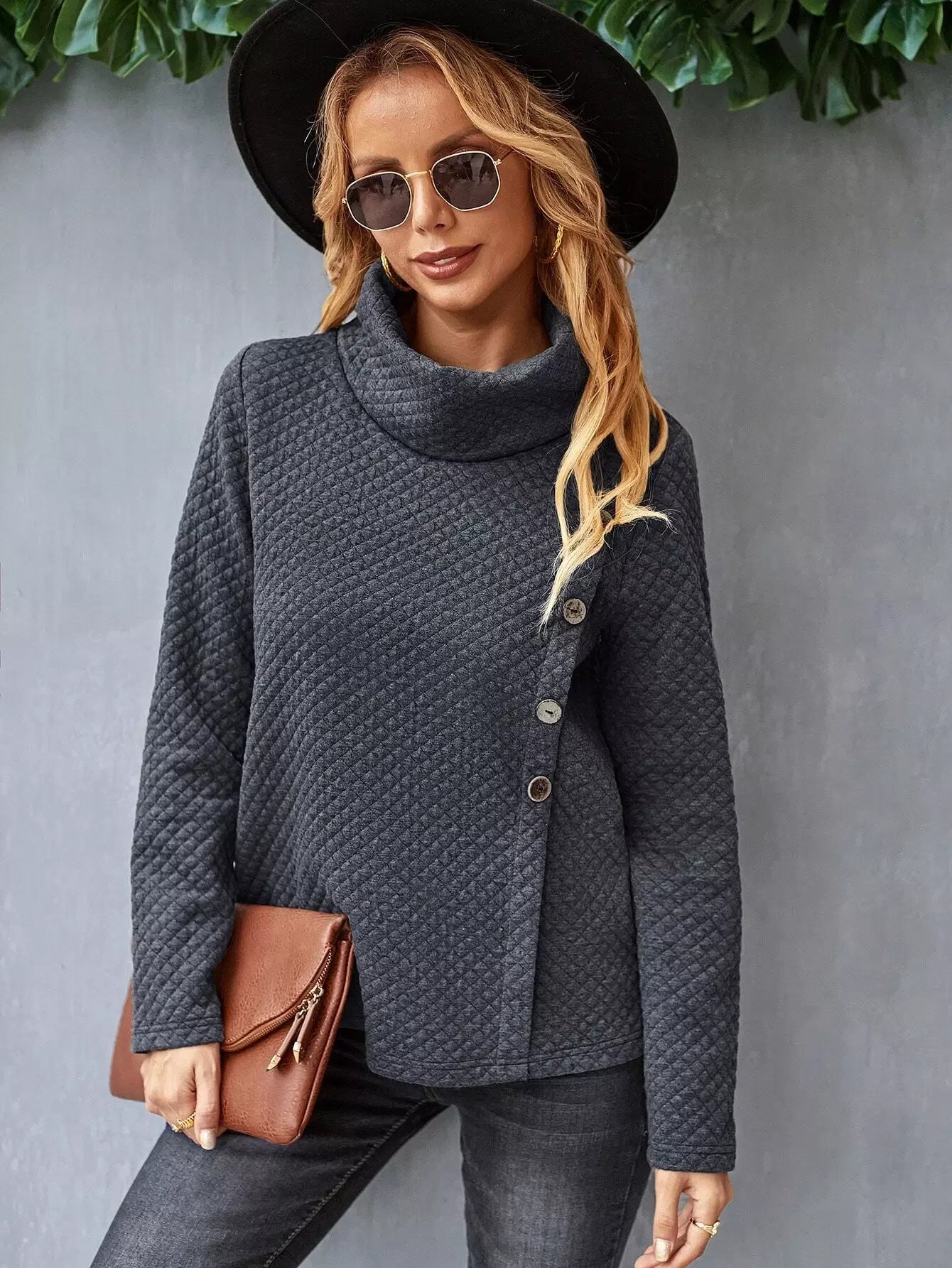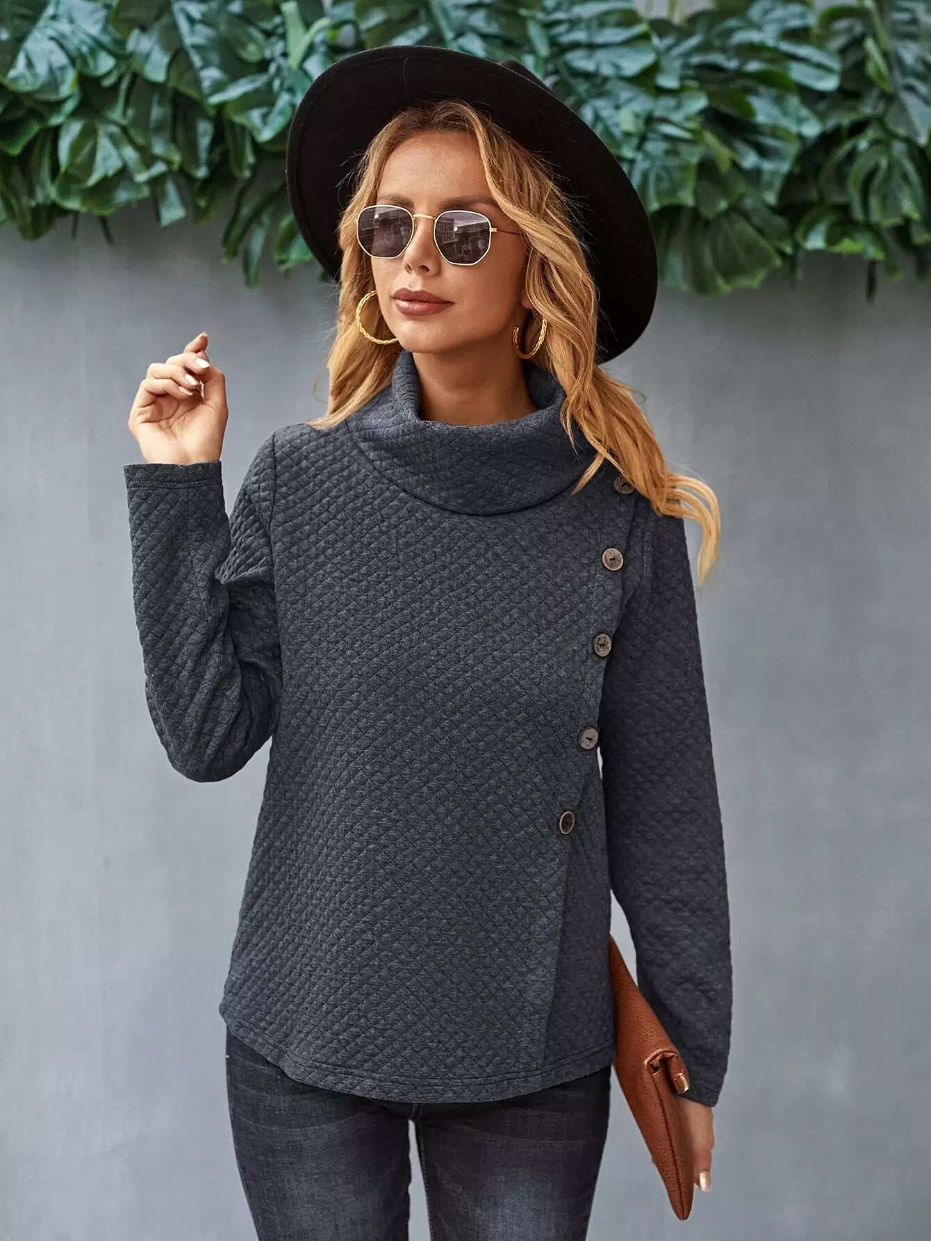 سويت شيرت بياقة مدورة بياقة مدورة بأزرار جانبية