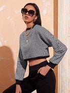 سويت شيرت قصير منسدل الكتفين بسحاب منسدل من الخلف بسحاب