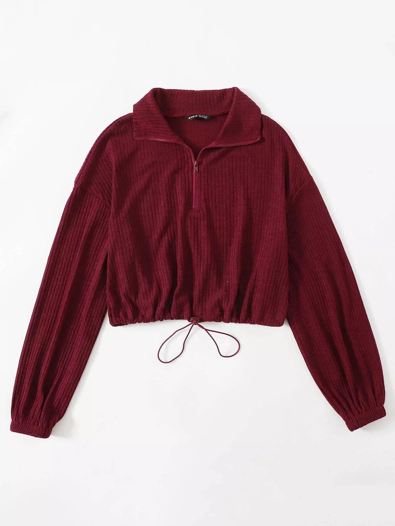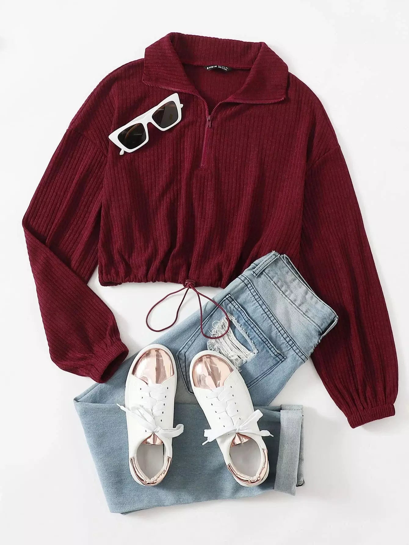 كنزة صوفية بسحاب بنصف فتحة بنصف فتحة ورباط بحاشية رباط