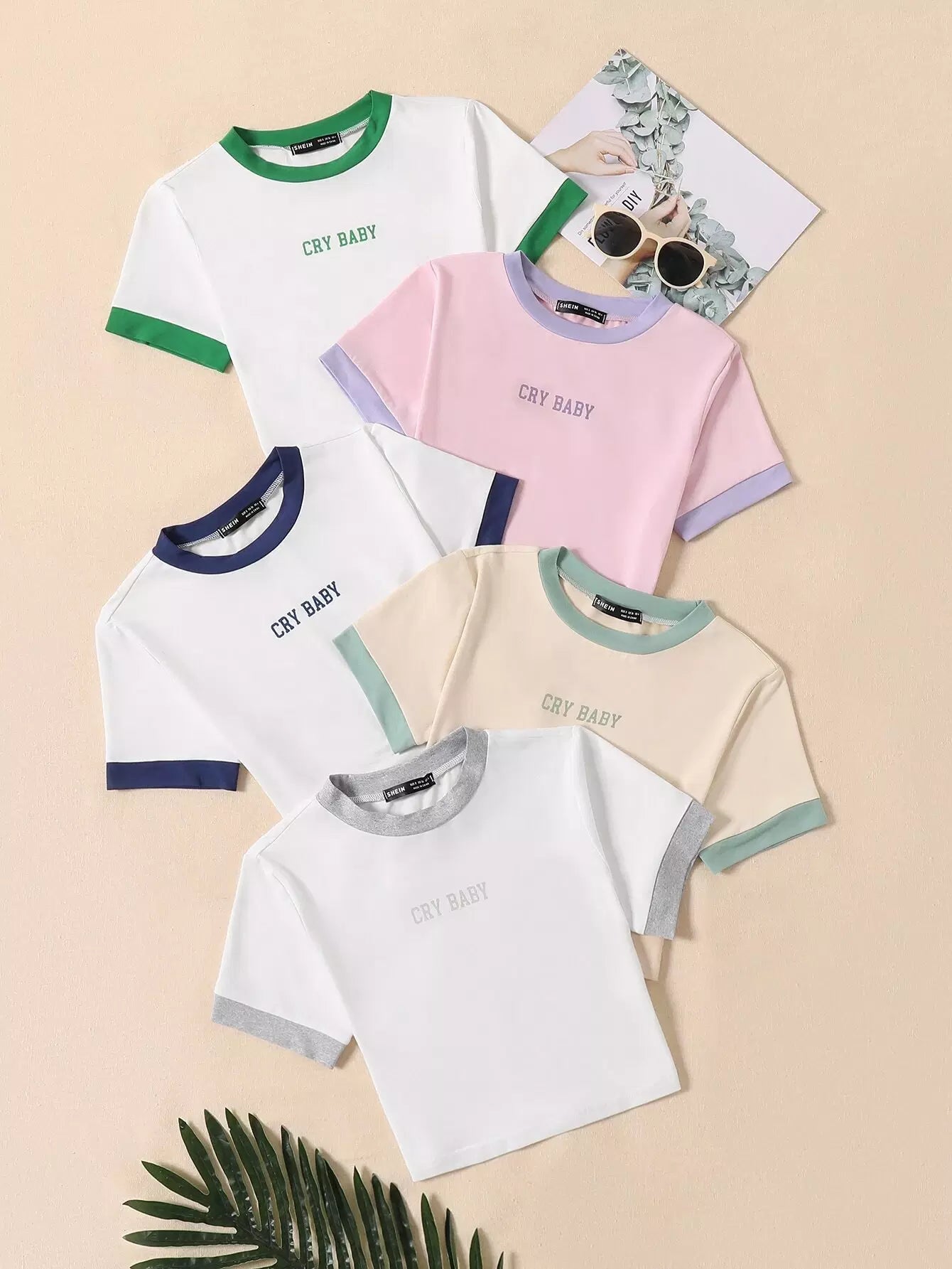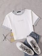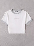قطعة واحدة من تي شيرت قصير بأكمام قصيرة ورسومات بأحرف متباينة