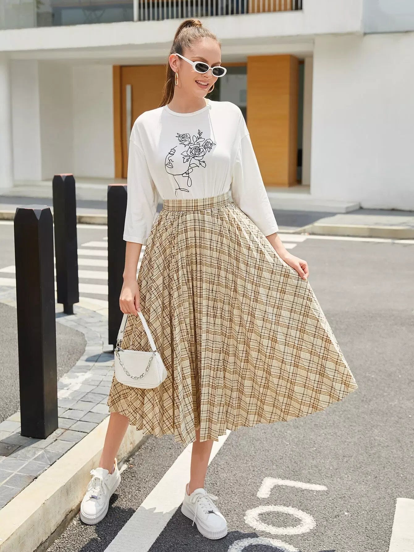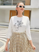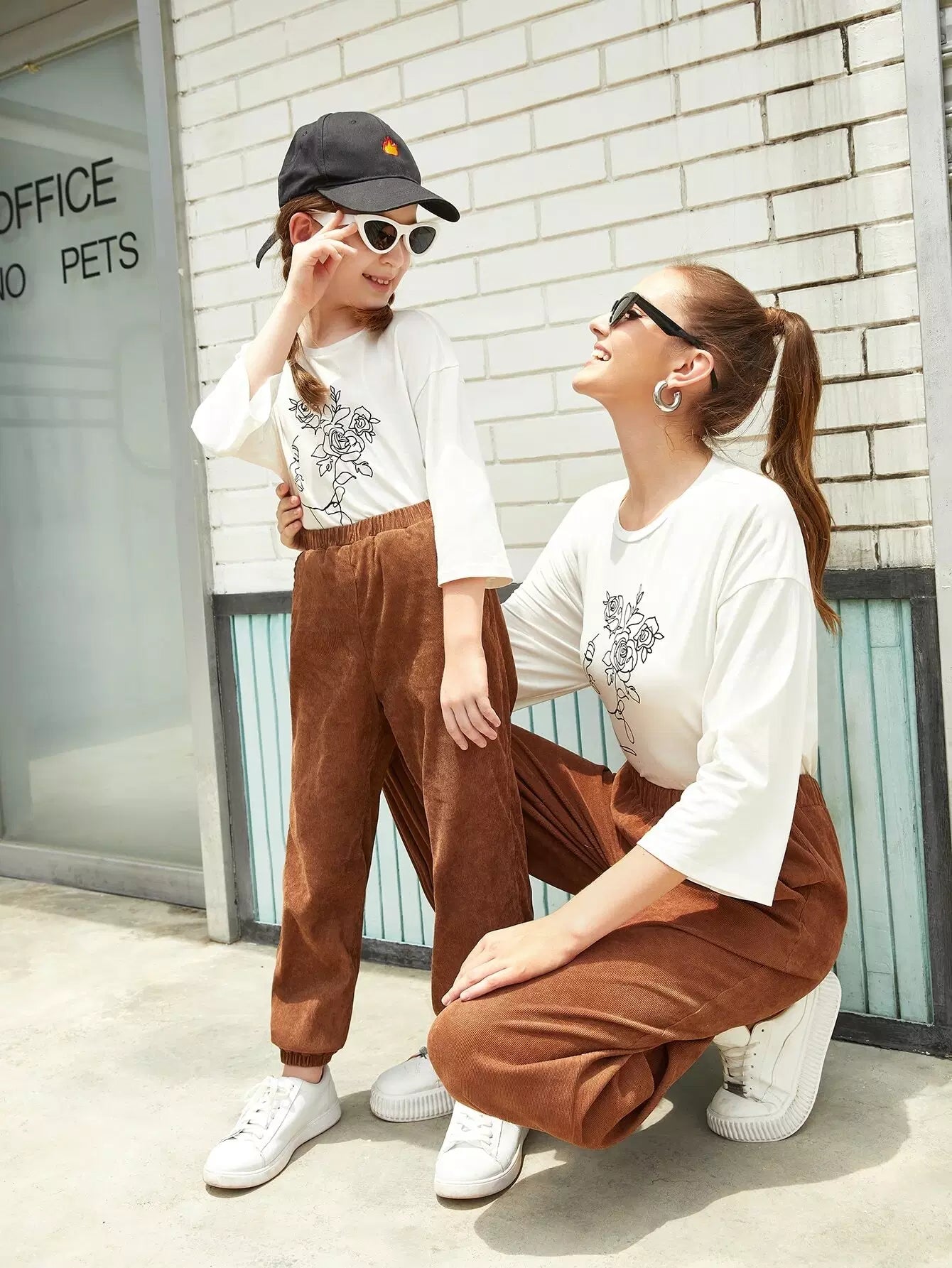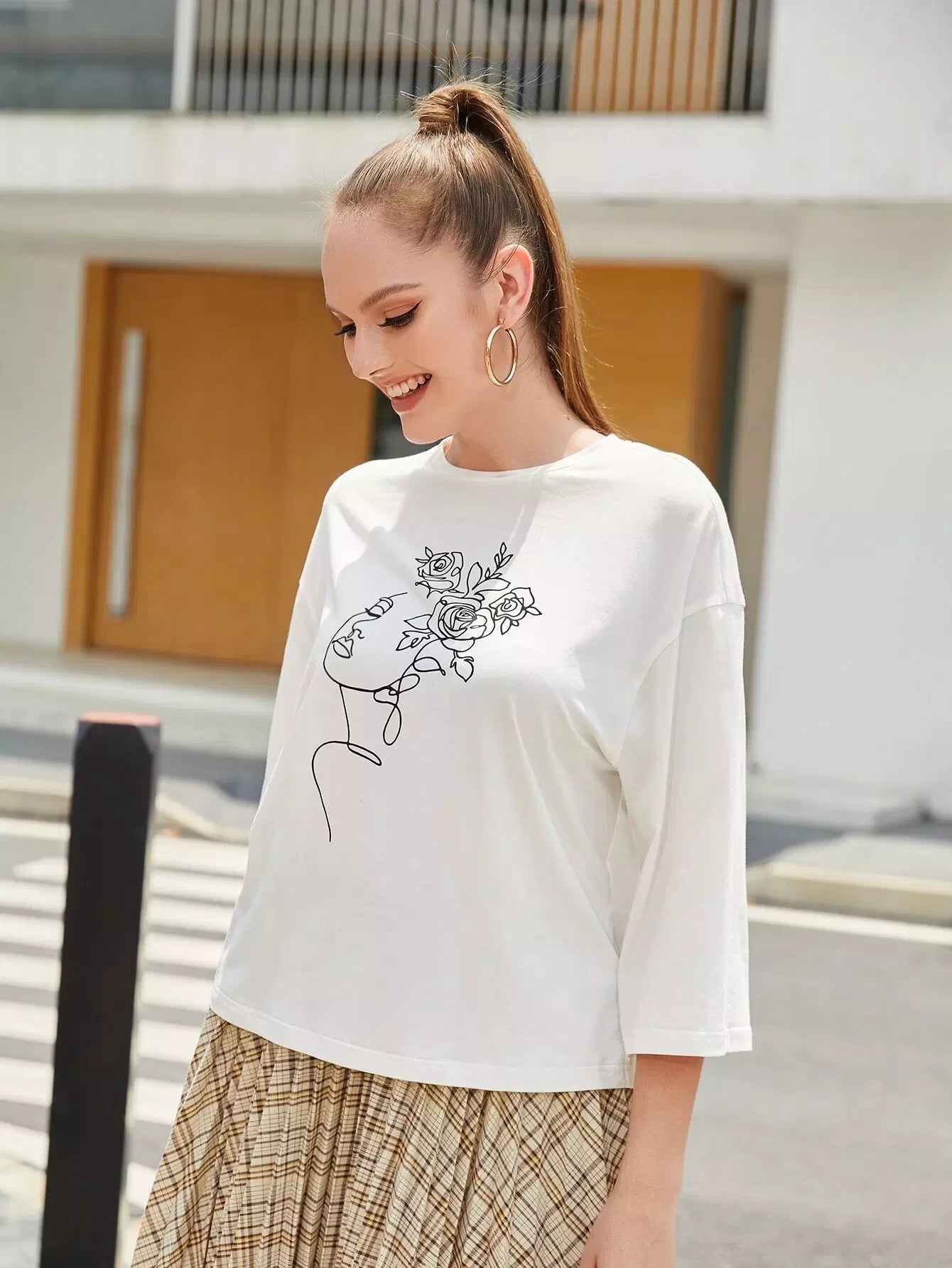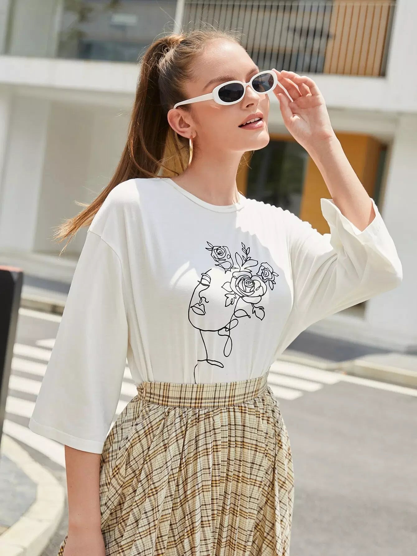 1 قطعة تي شيرت مطبوع عليه شكل وزهور