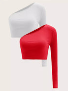 تي شيرت قصير بكتف واحد بقطعة واحدة 2 قطعة
