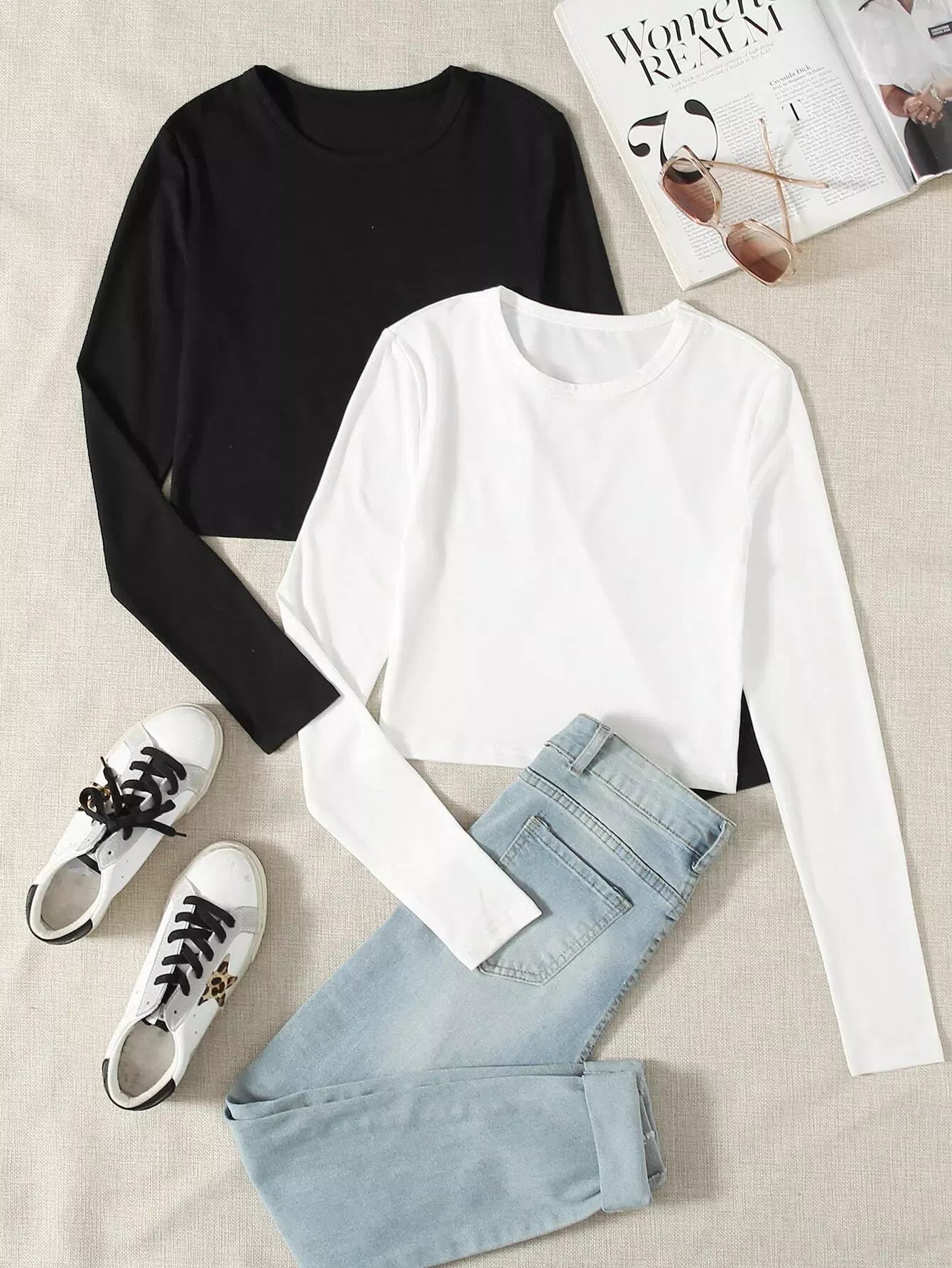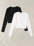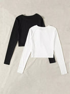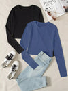 تي شيرت بأكمام طويلة سادة 2 قطعة