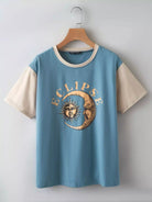 تي شيرت بأكمام بطبعة تجريدية متباينة