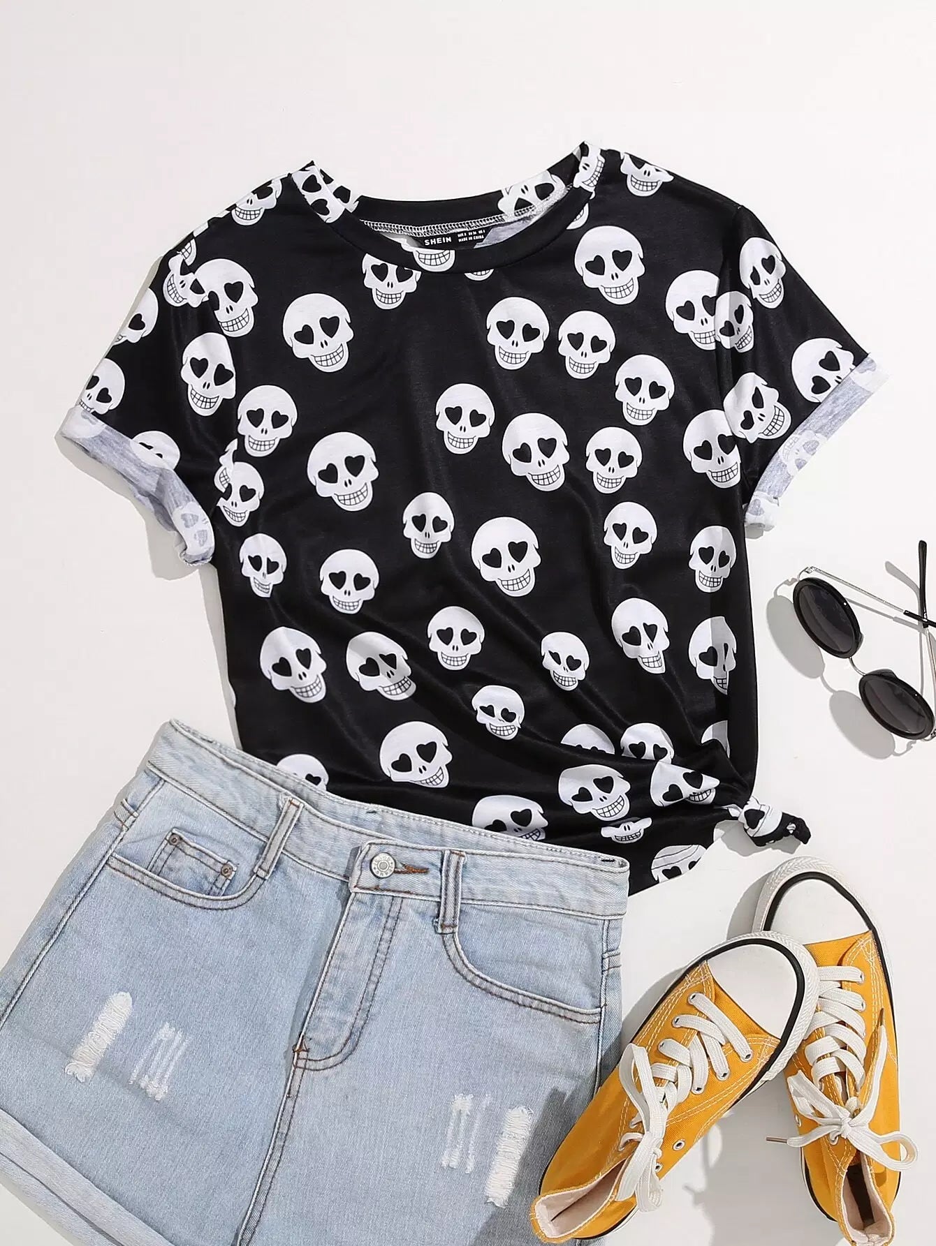 تي شيرت مطبوع عليه جمجمة بالكامل