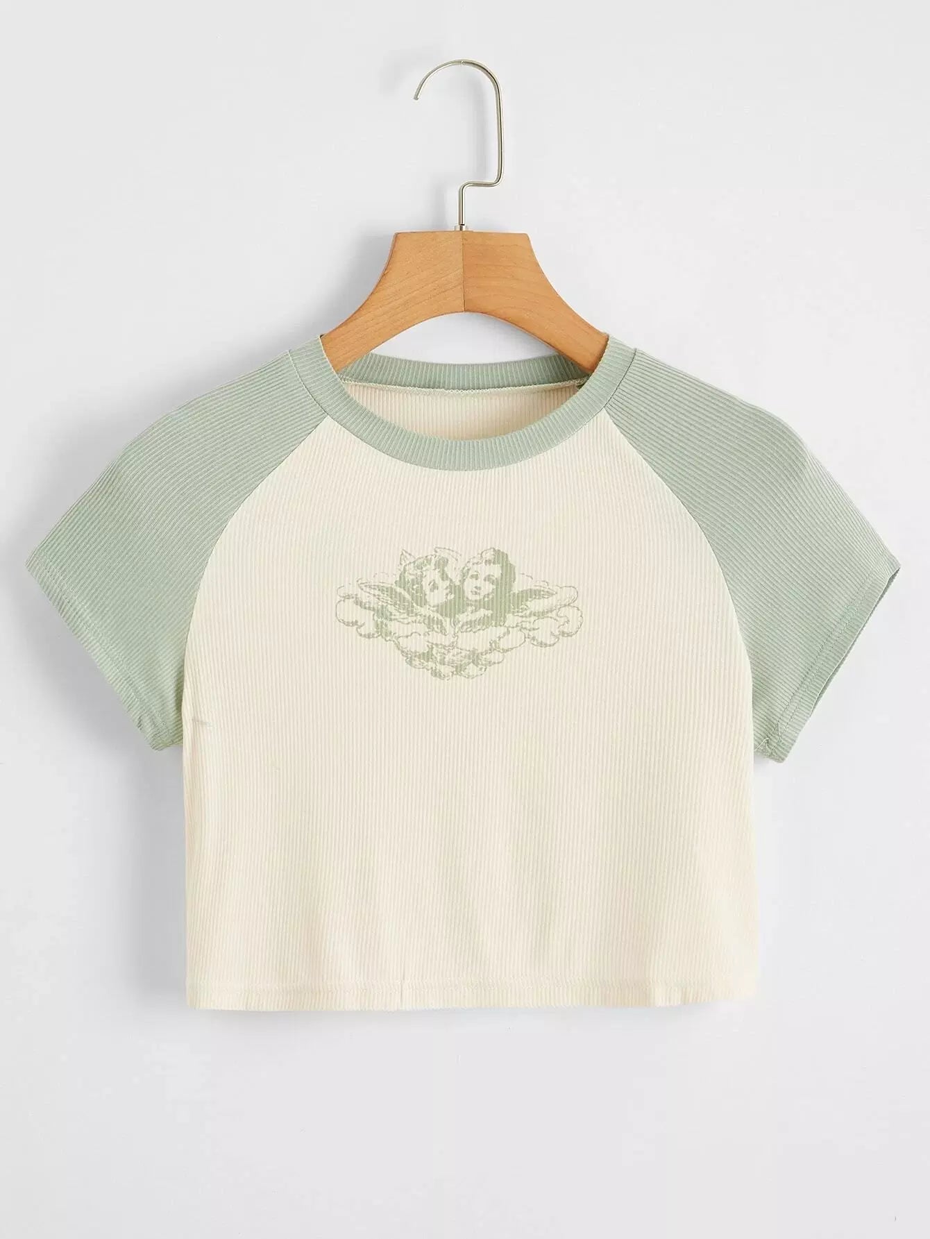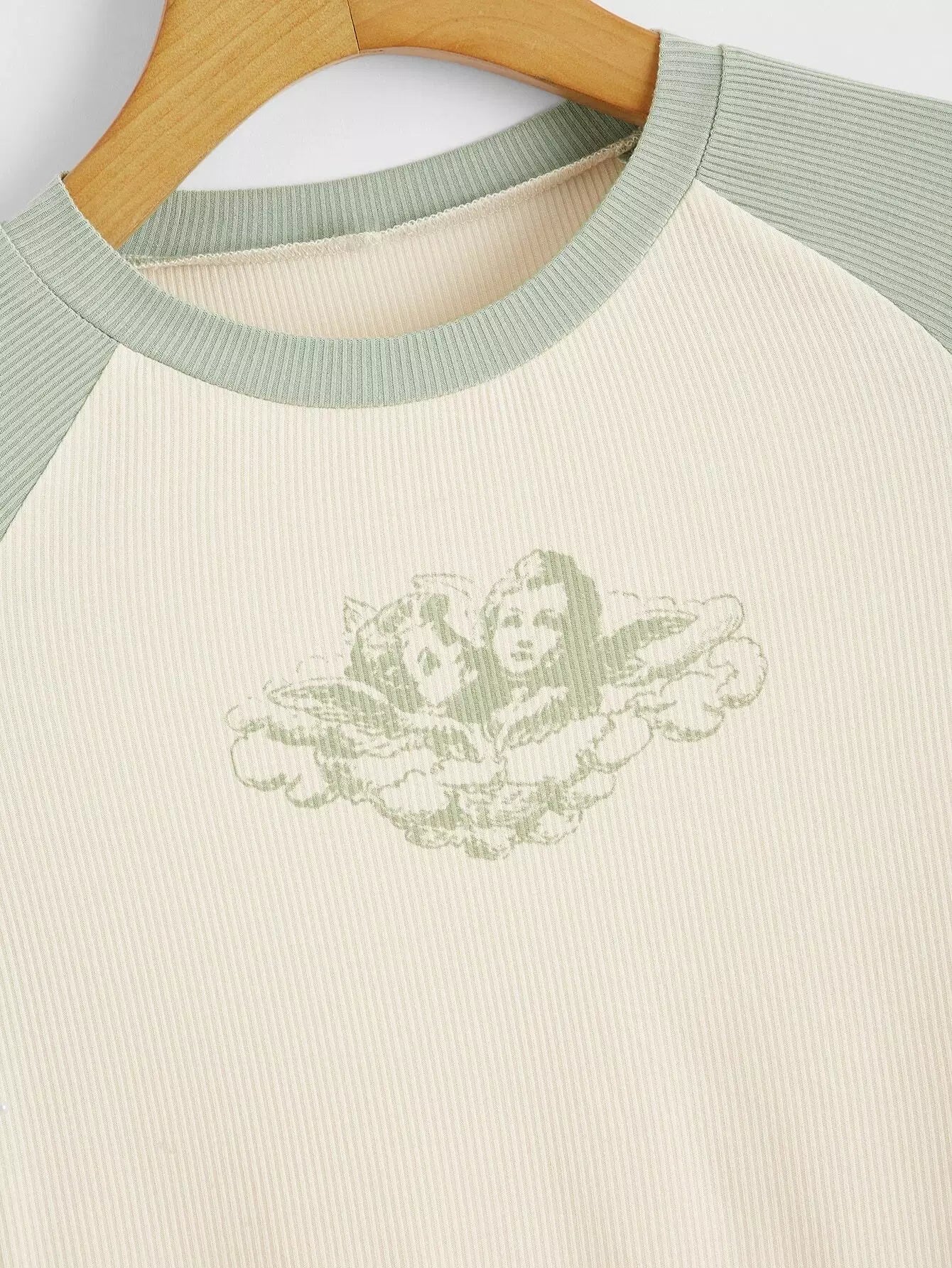 تي شيرت بأكمام راجلان مطبوع عليه طبعة ملاك بأكمام قصيرة