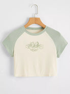 للنساء - تي شيرت قصير بأكمام راجلان بطبعة Angel
