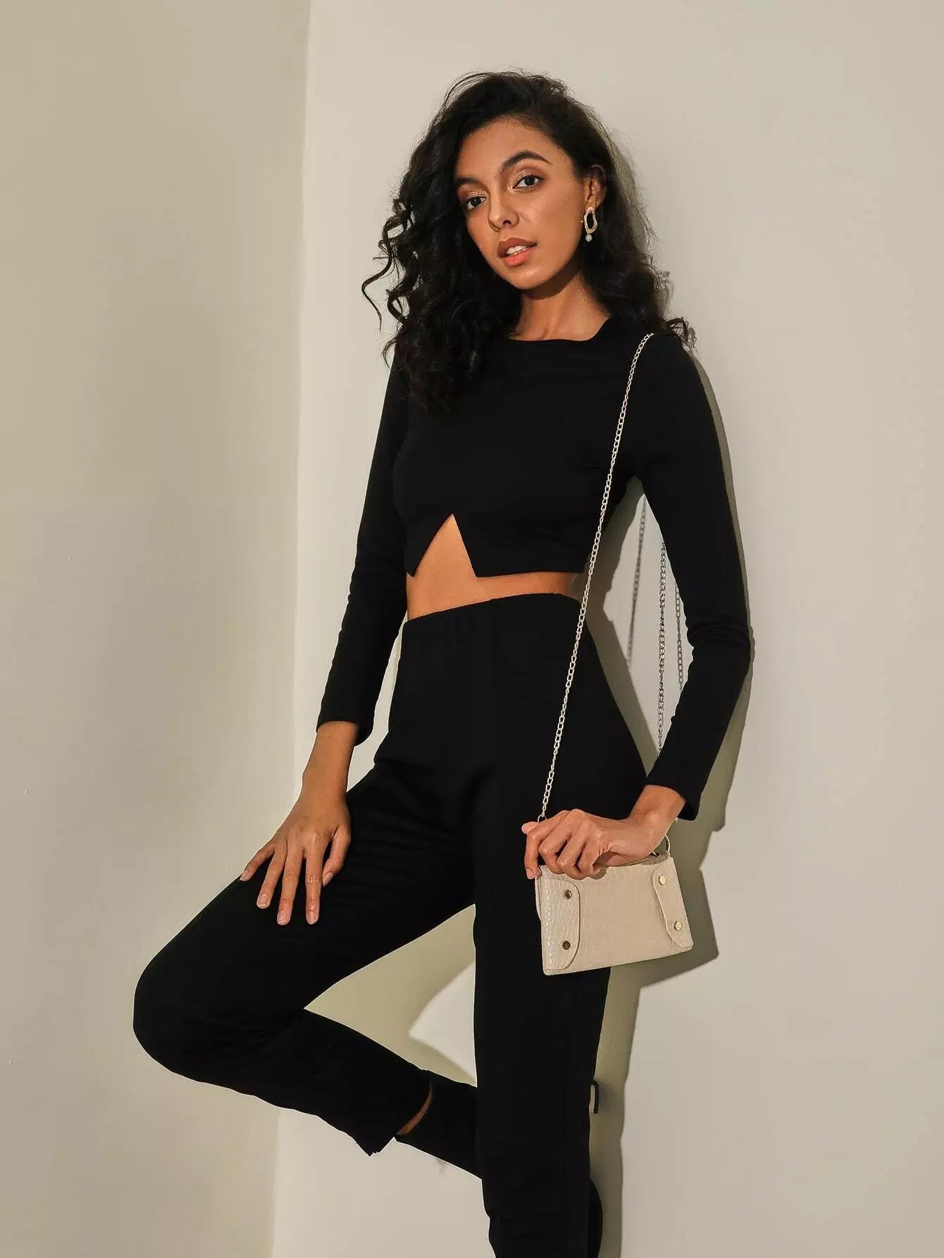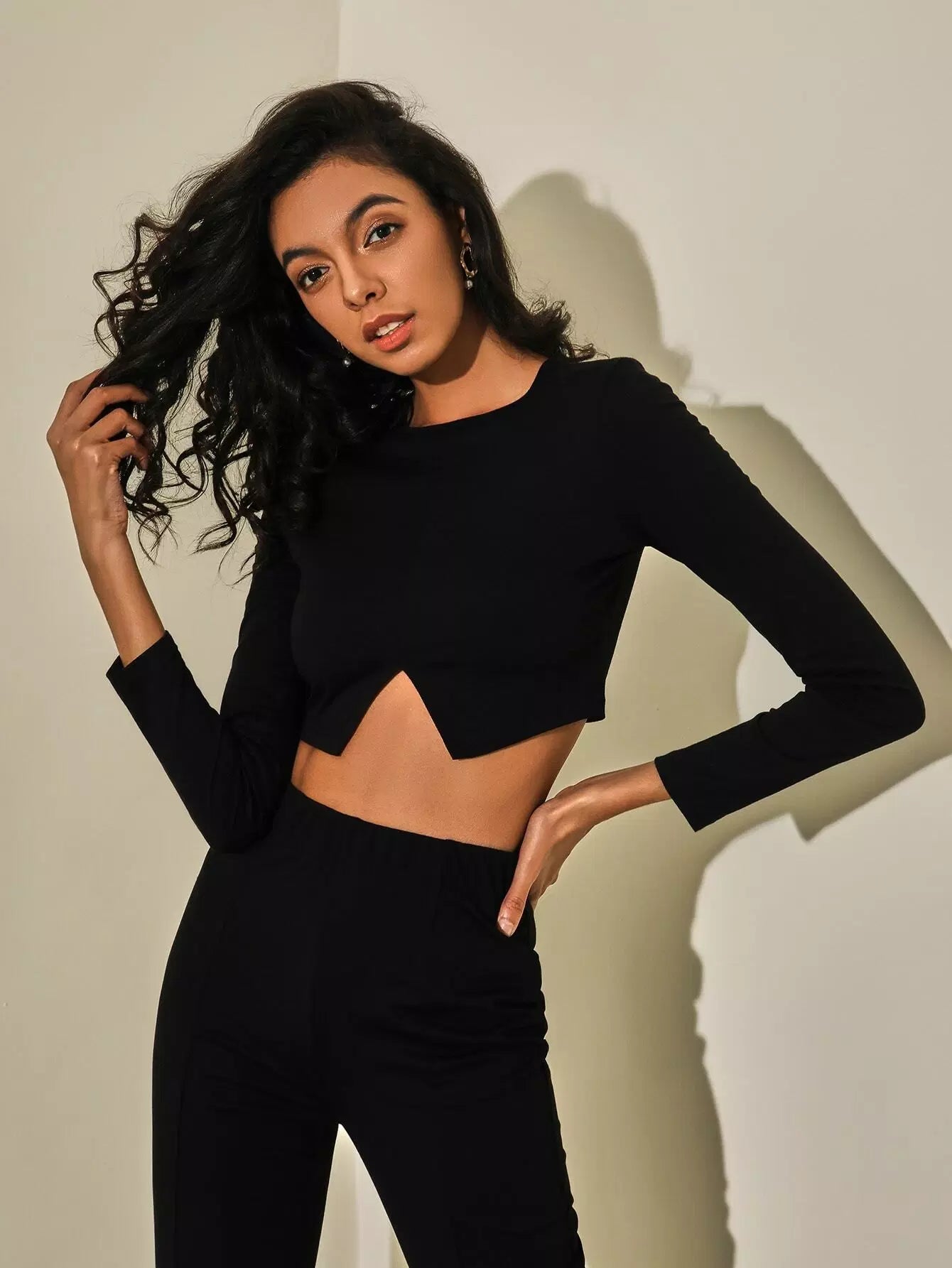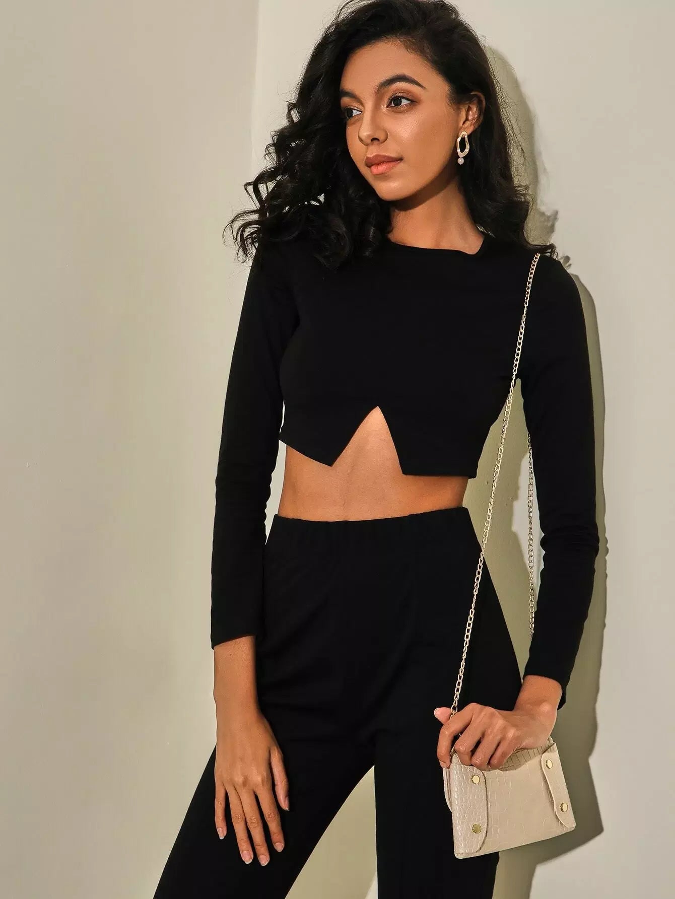 تي شيرت بحواف غير متناسقة ضيقة وضيقة