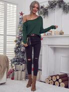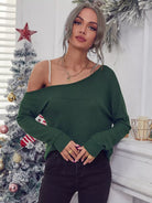 تي شيرت برقبة غير متناظرة مزين باللؤلؤ