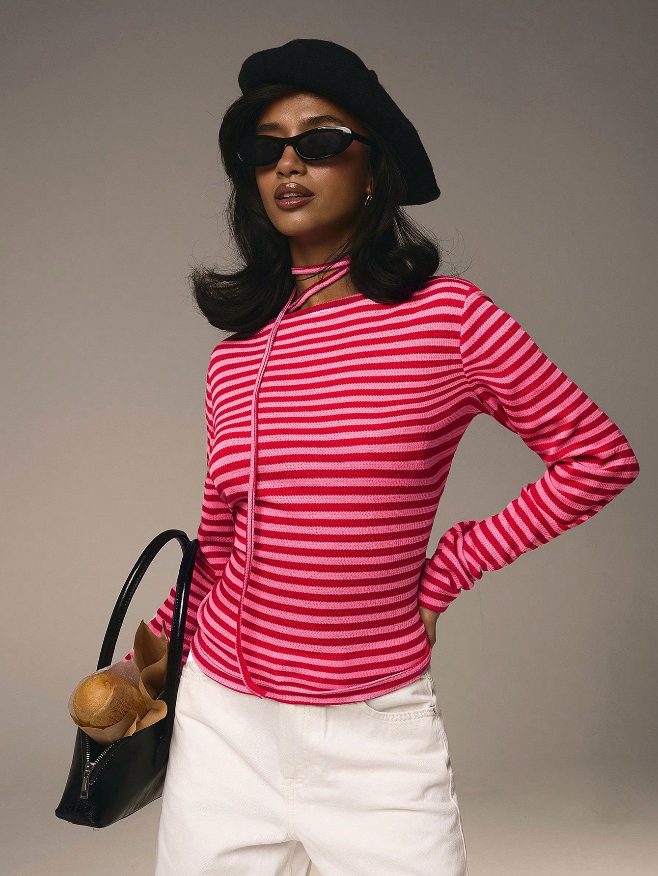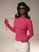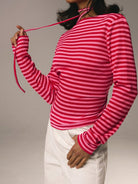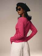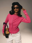 تيشيرت نسائي مخطط بأكمام طويلة ورقبة دائرية من أثيرال، مناسب لعيد الحب.