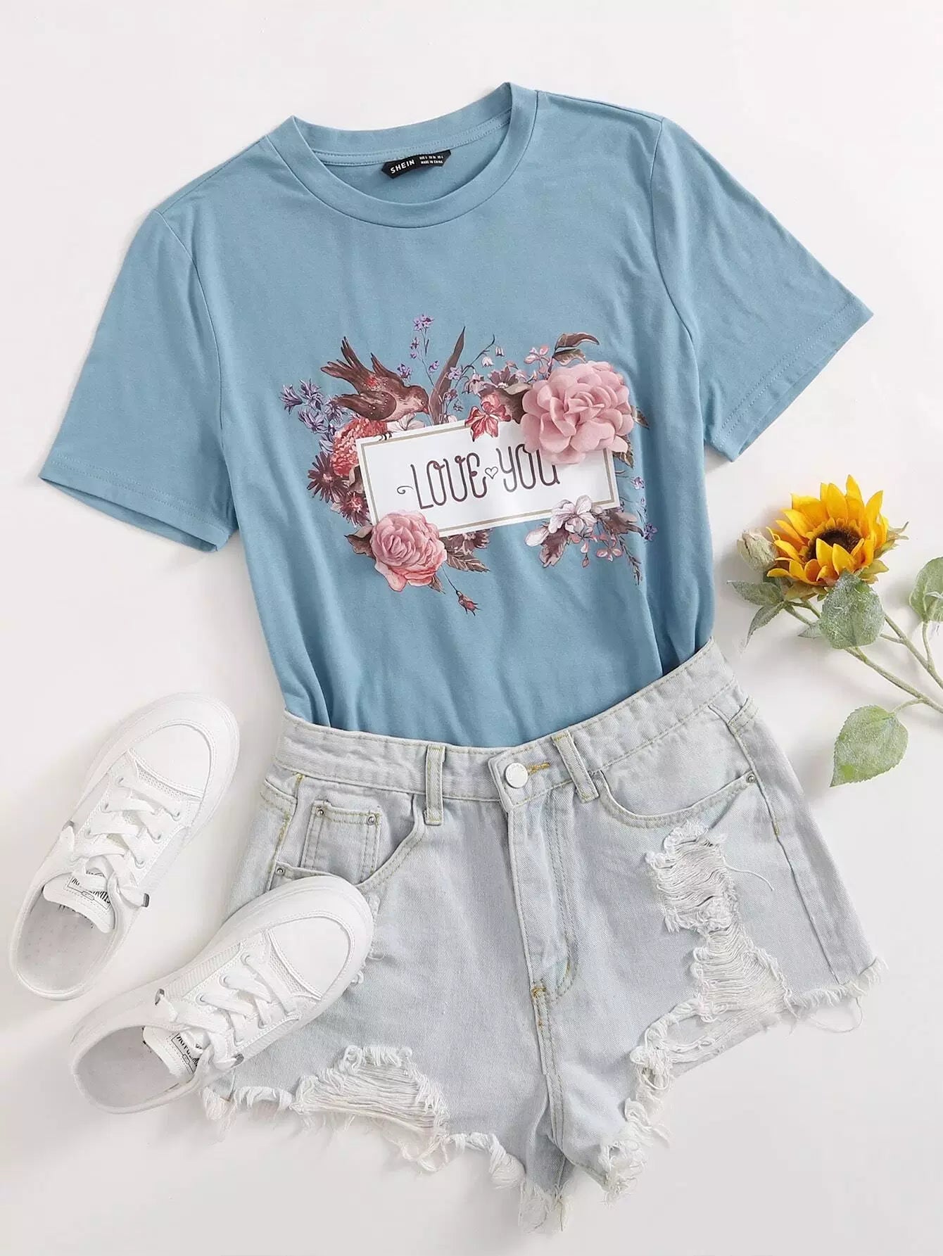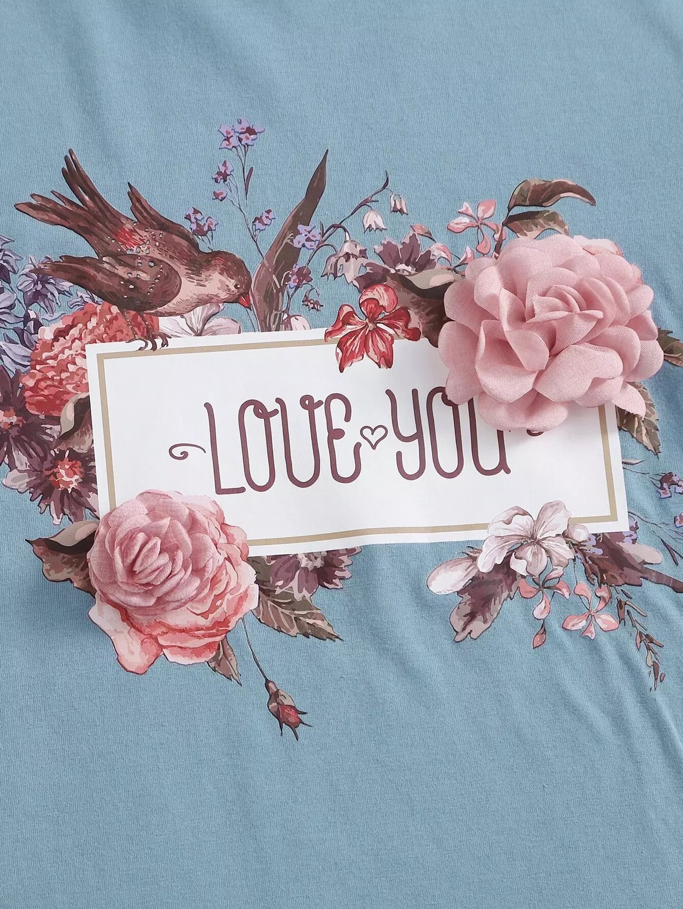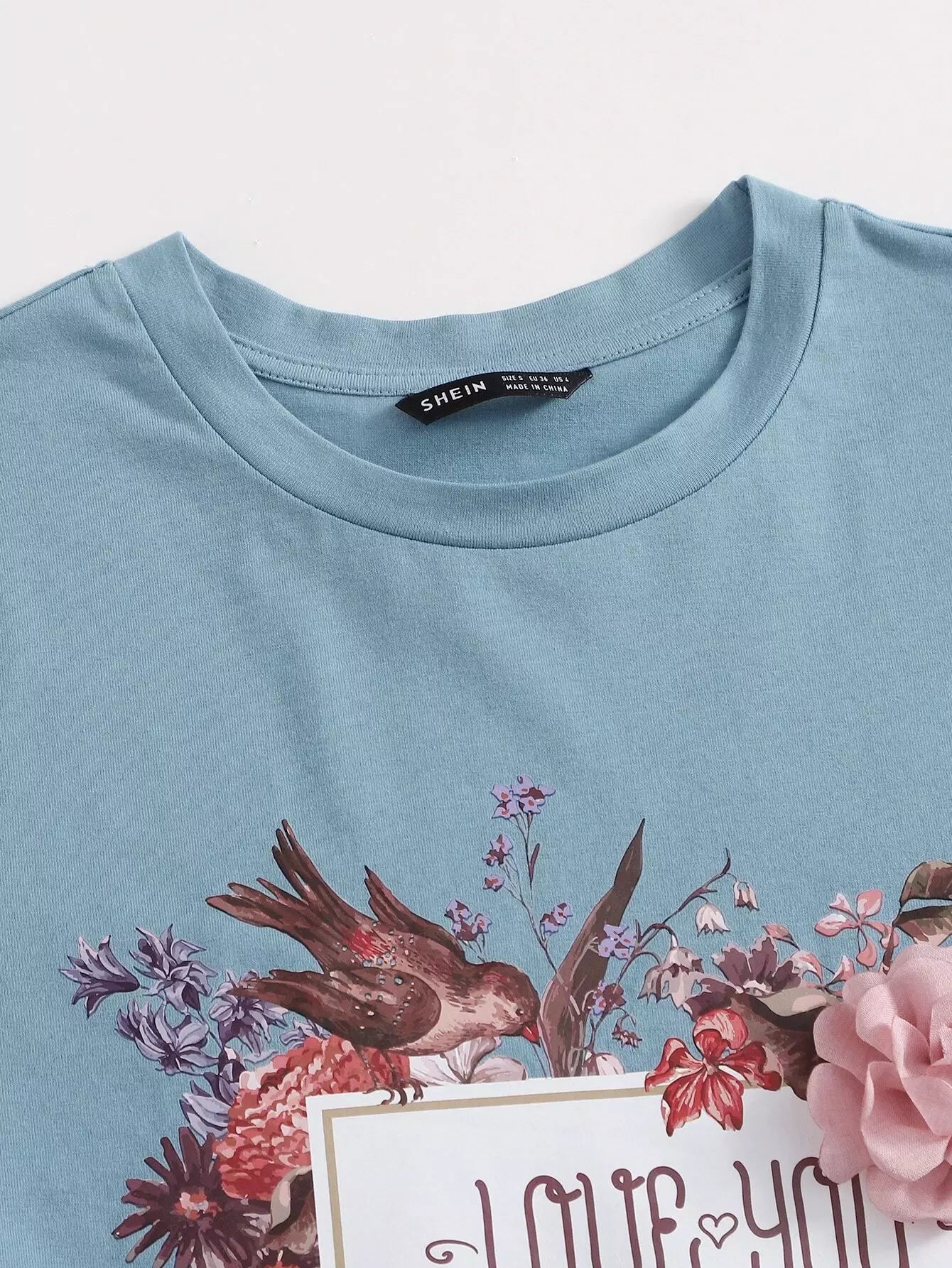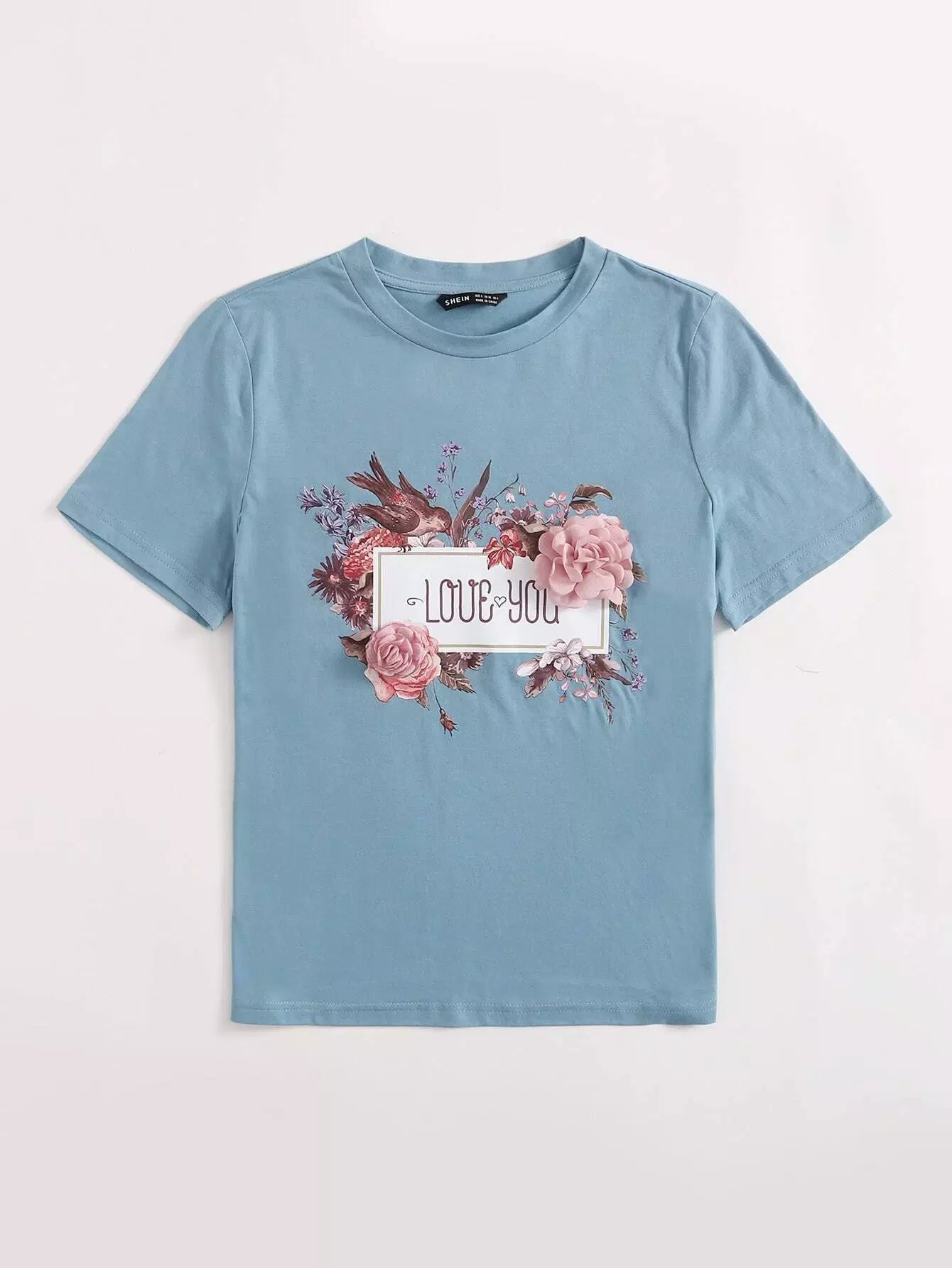 بلوزة مزينة بتطريزات زهور وطيور وشعارات