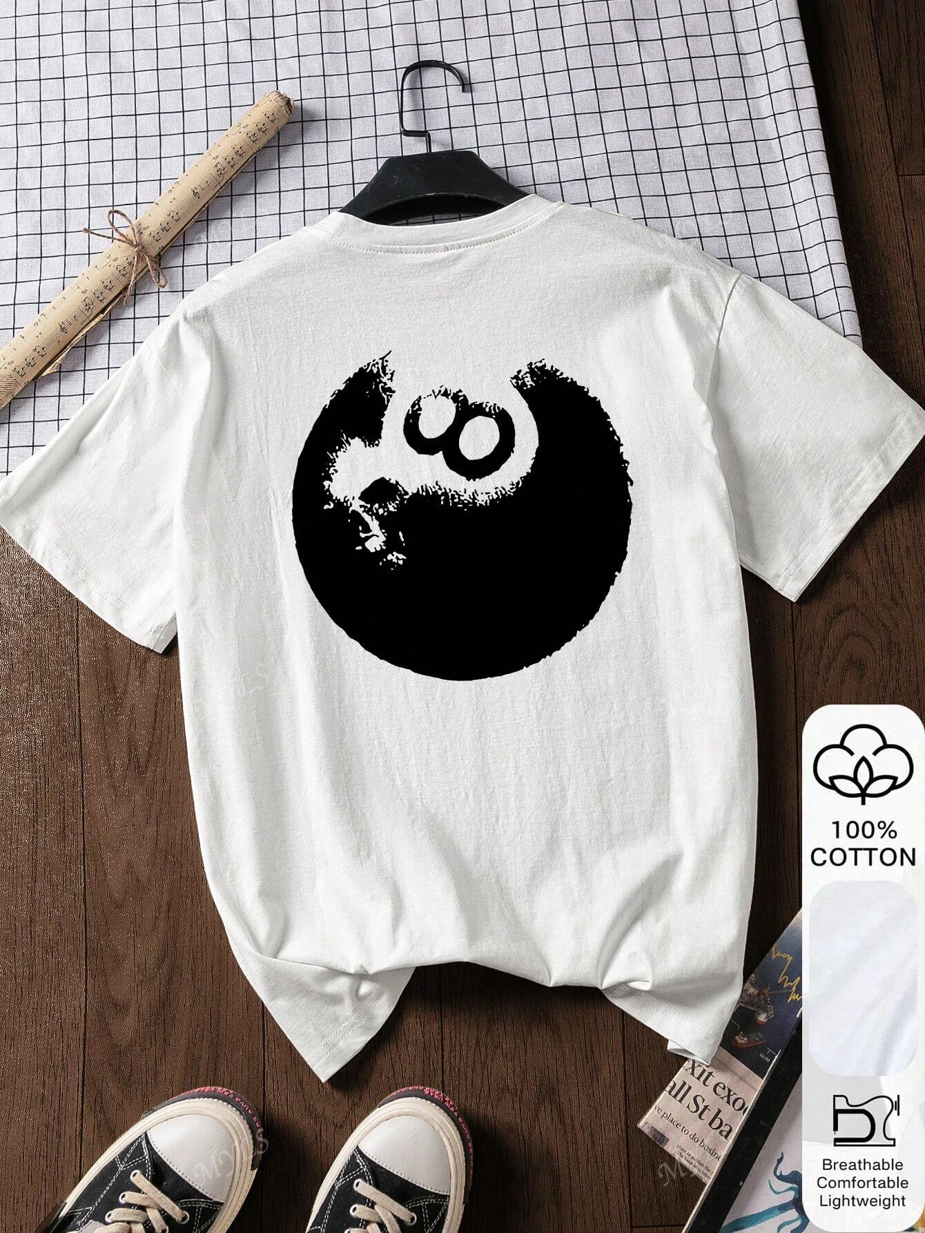 Black 8 Billiard Print, Summer Women's 100% Cotton Short Sleeve, White Short Sleeve, Graphic T-Shirt,