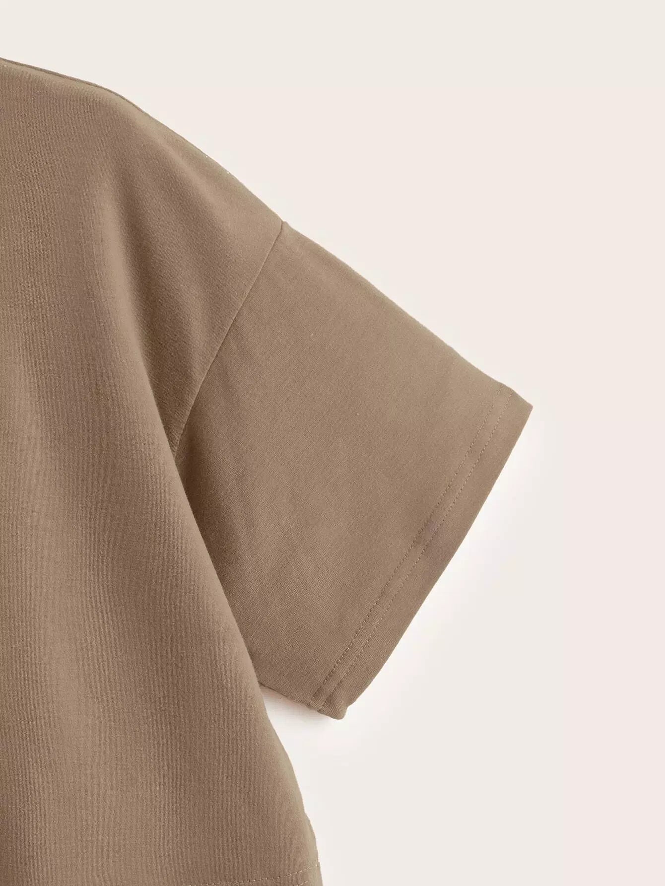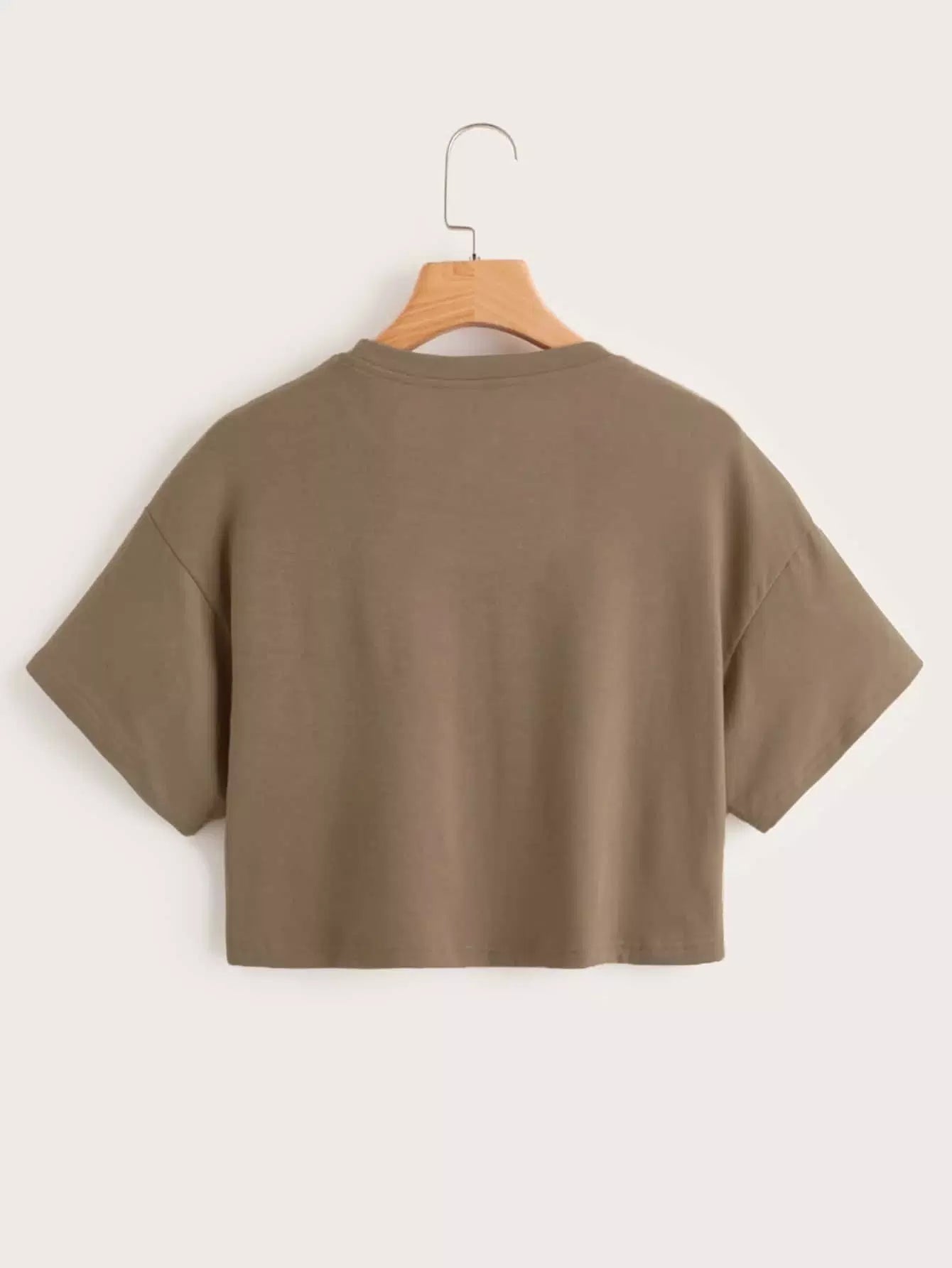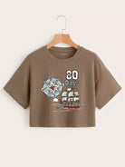 تي شيرت ذو أكتاف منسدلة برسومات قارب وحرف