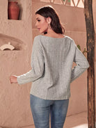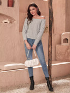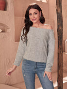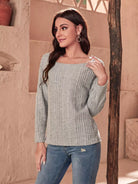 تي شيرت بياقة قارب برقبة قارب محبوكة على شكل ضلع