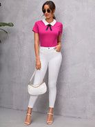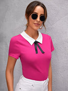 بلوزة بياقة بيتر بان أمامية بعقدة أمامية
