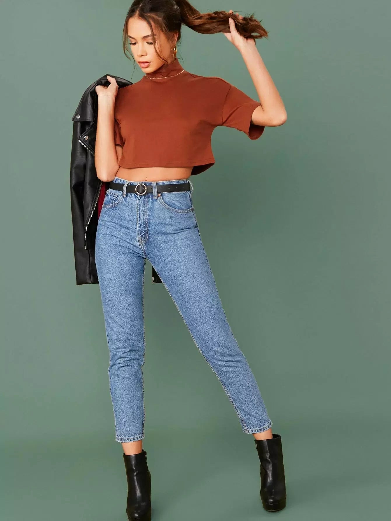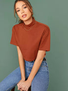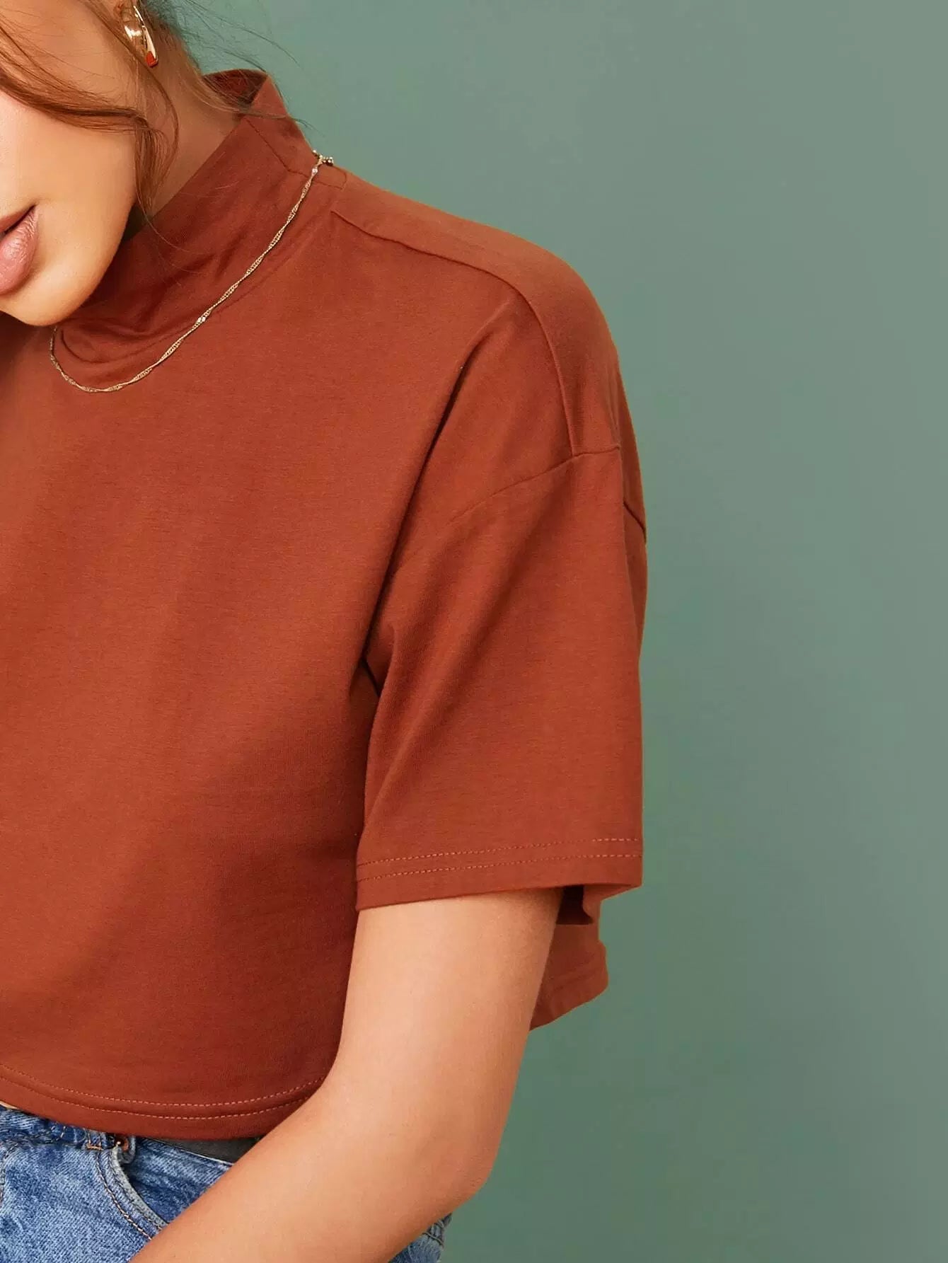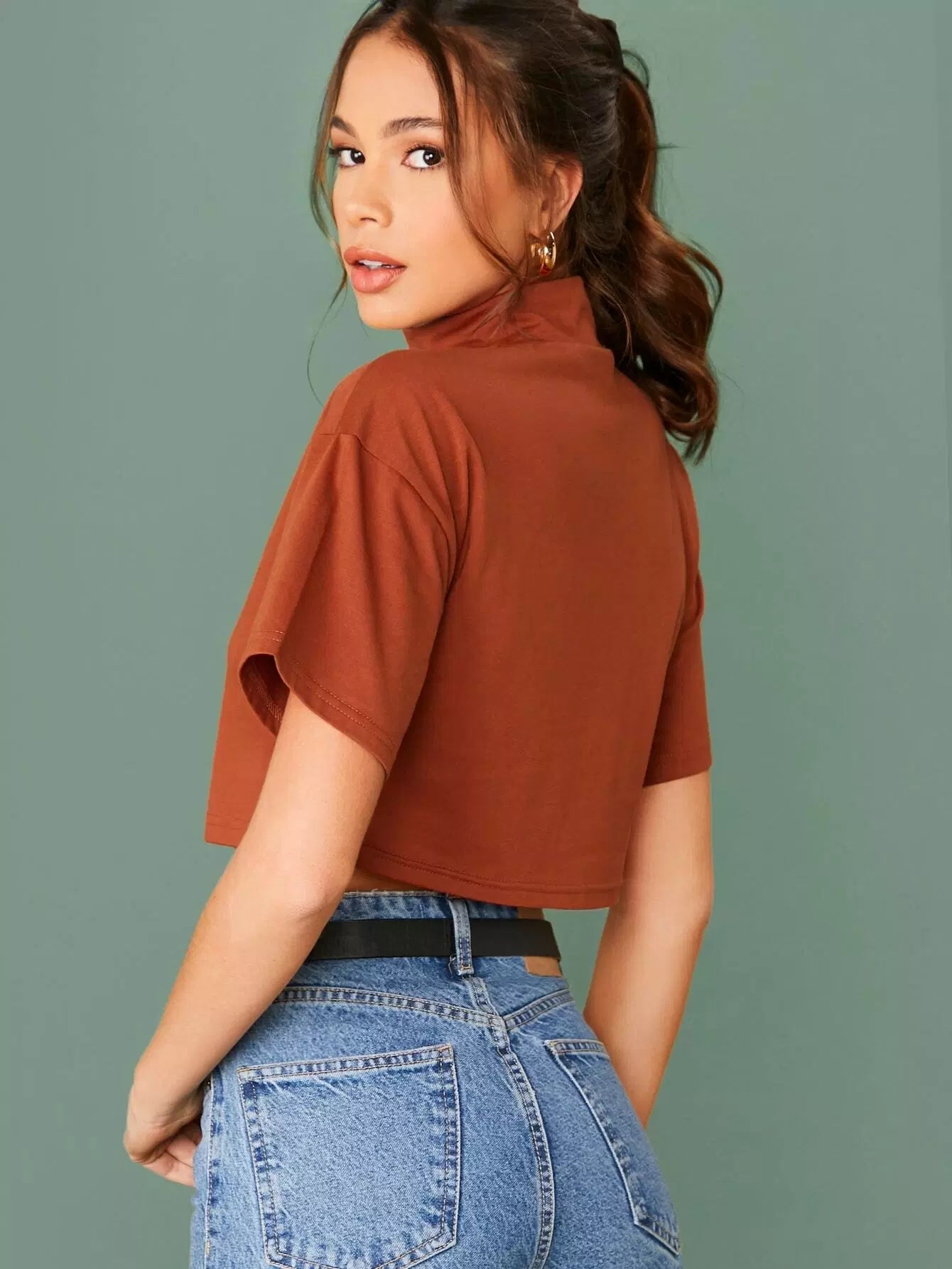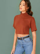 بلوزة قصيرة برقبة صندوقية برقبة قمعية مربعة