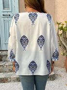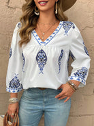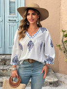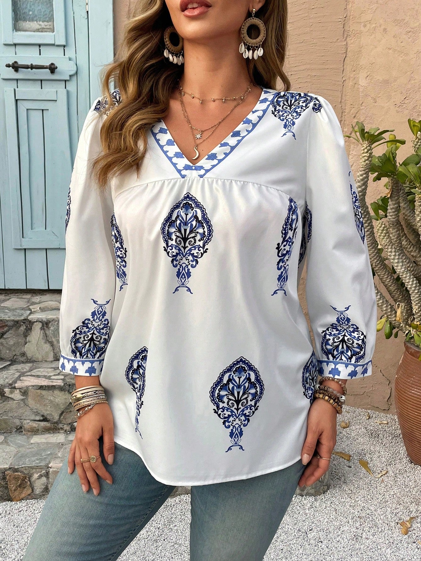 women Breezaya Plus Size Women Retro Print V-Neck Loose Blouse