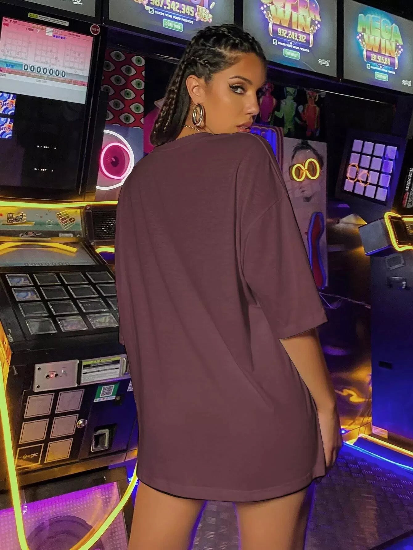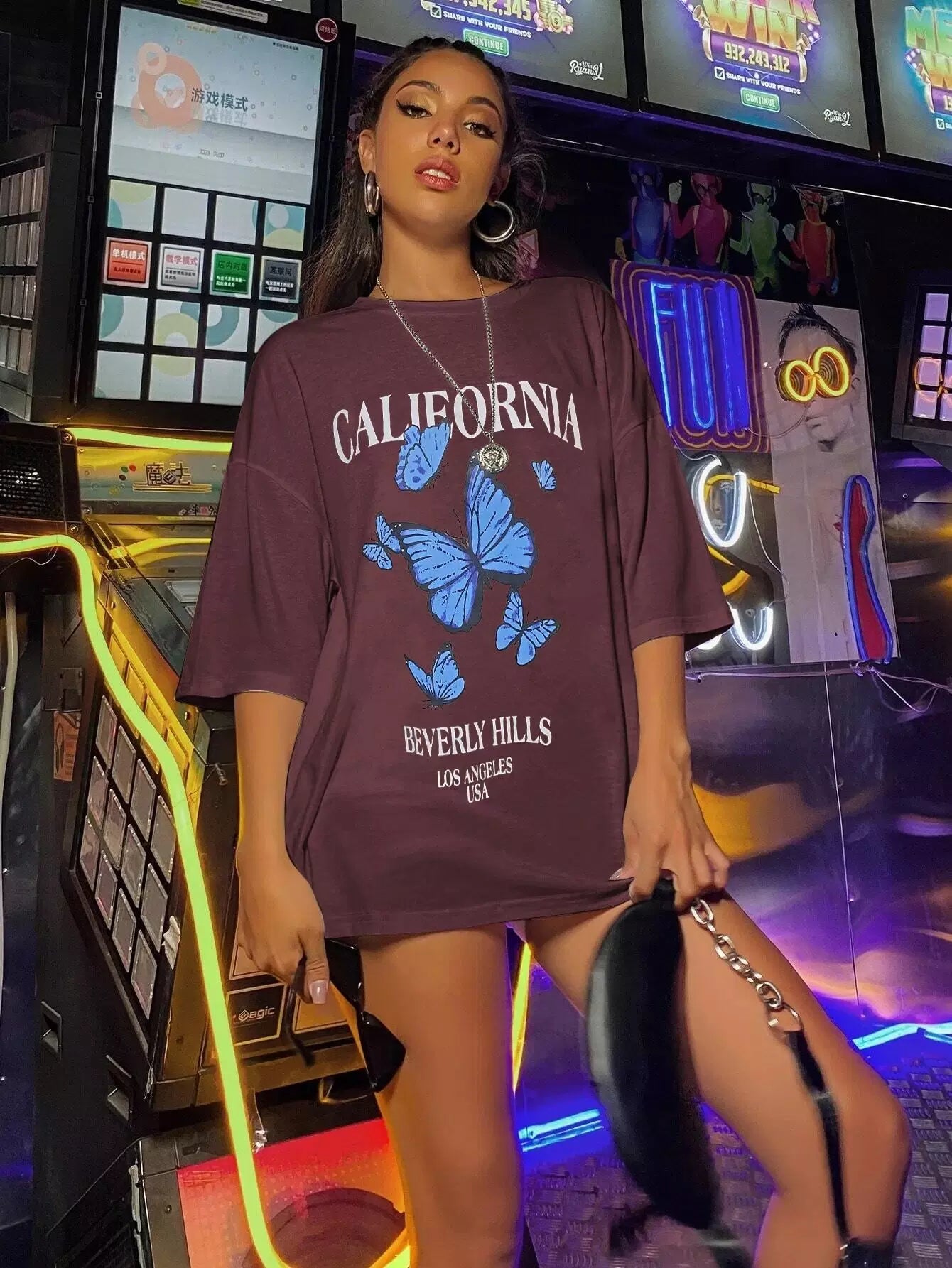 تي شيرت برسومات فراشة وحروف كبيرة الحجم