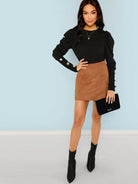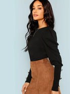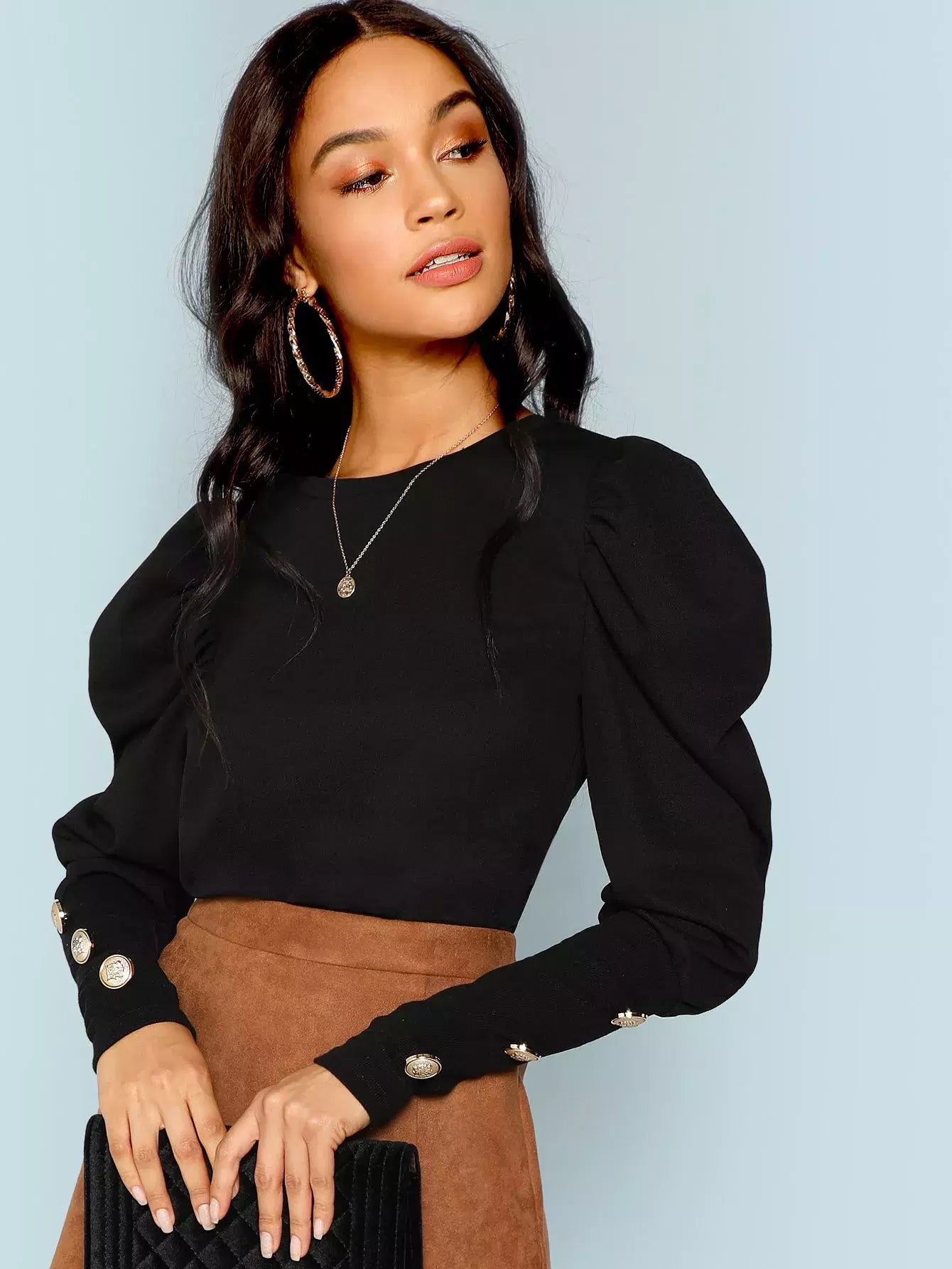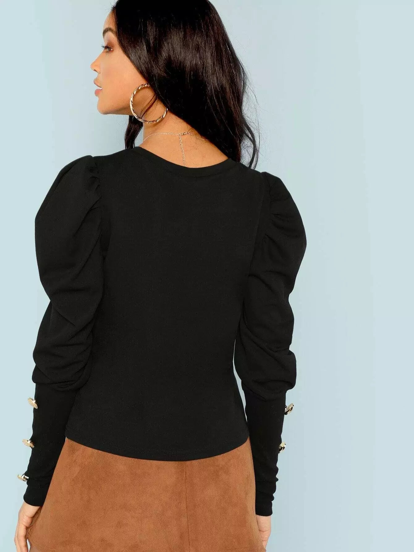 بلوزة بأكمام منفوخة وتفاصيل أزرار