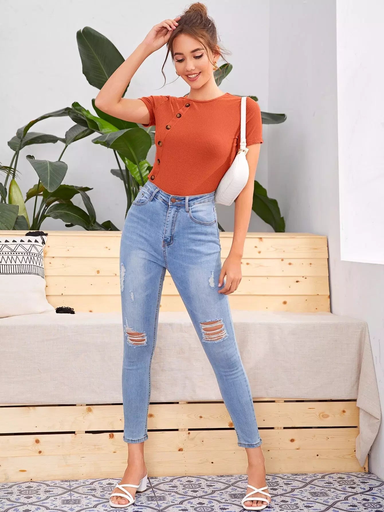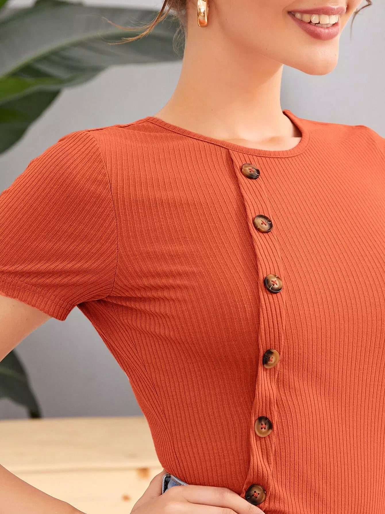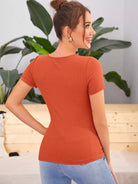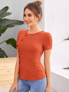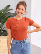 تيشيرت ضيق محبوك بأزرار مفصلة بأزرار