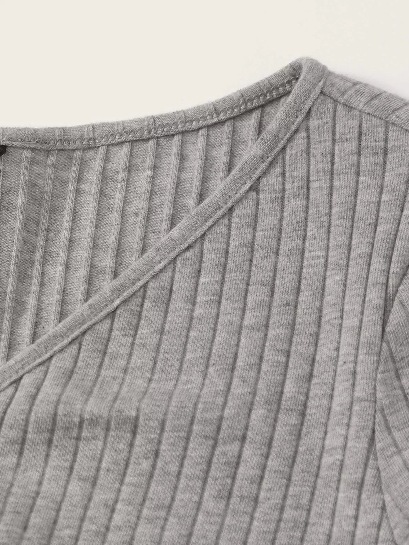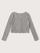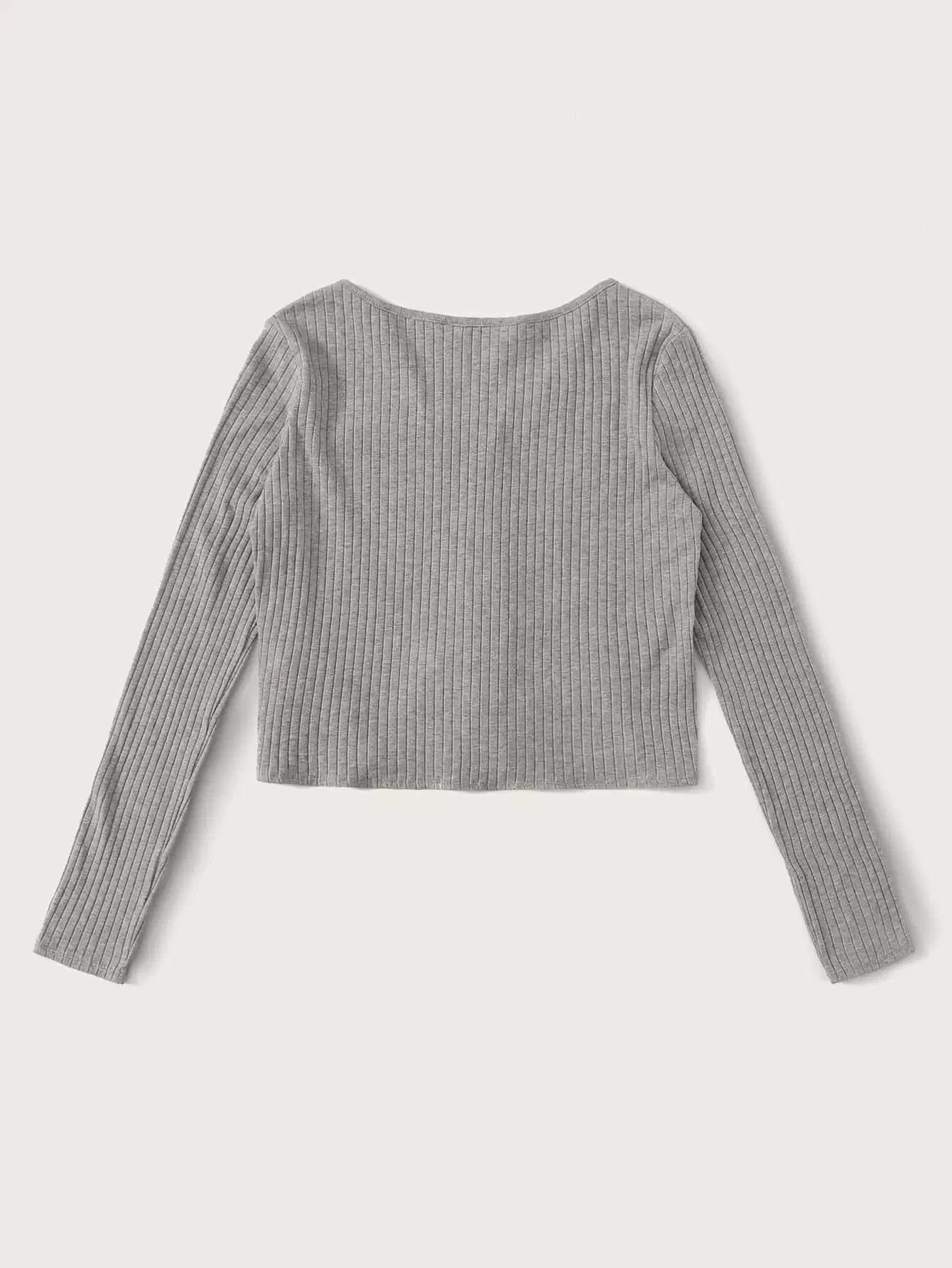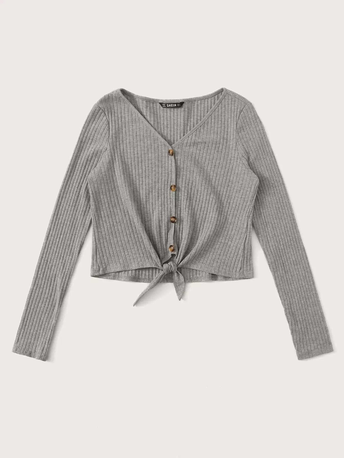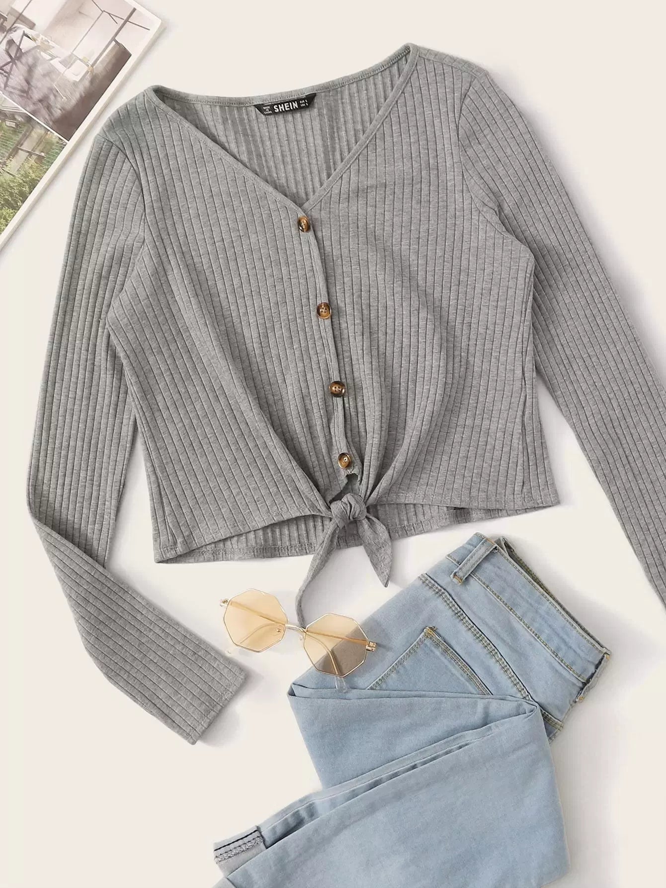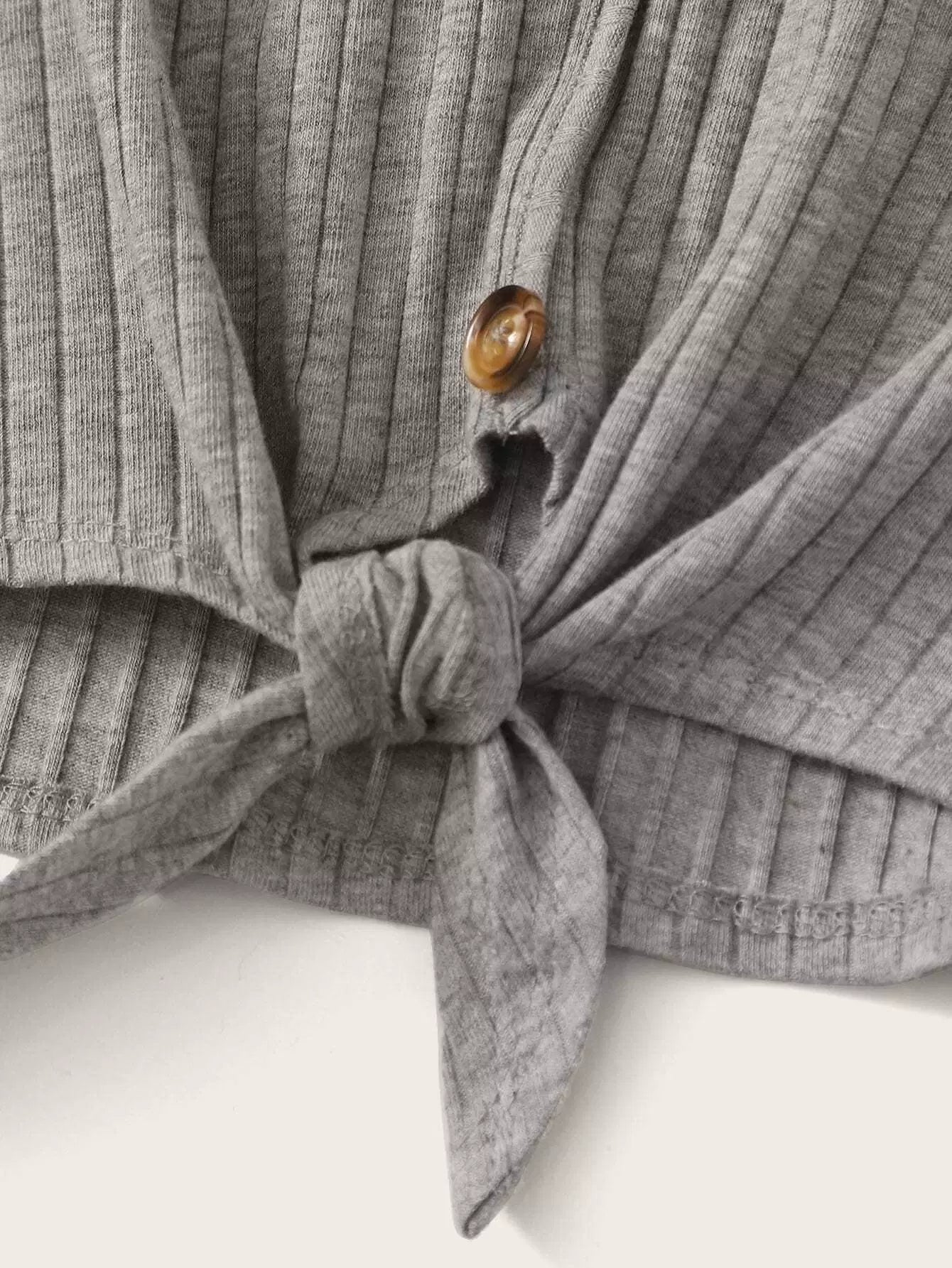 بلوزة محبوكة بأزرار أمامية بعقدة من الأمام بحاشية ضلعية